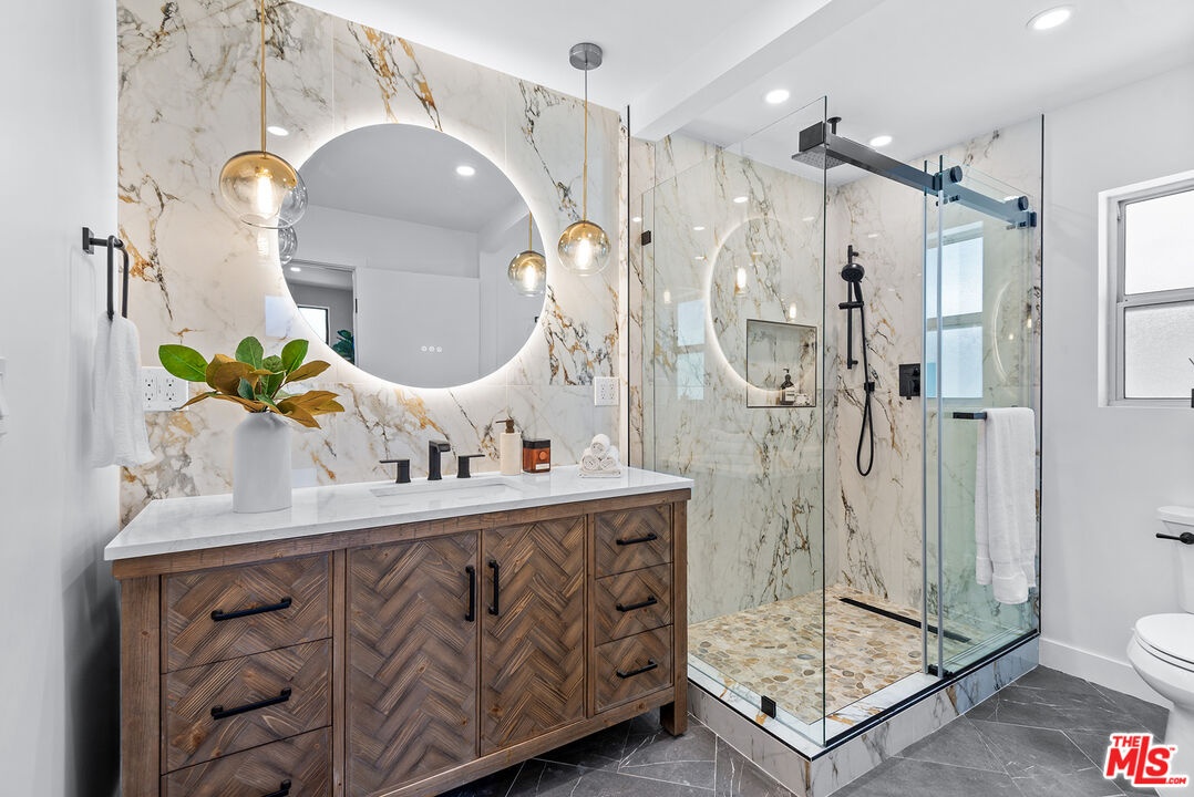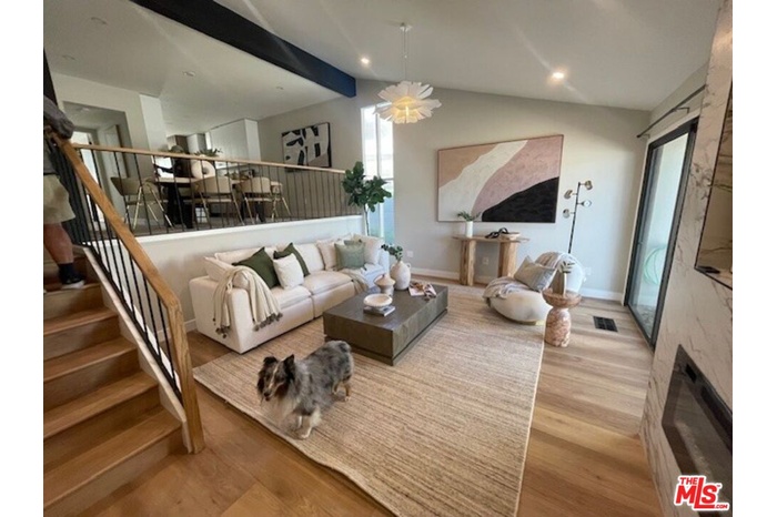 This exquisitely renovated corner townhome features two bedrooms, two bathrooms, and is located in the highly desirable Villa Velletri community of Marina Del Rey, only steps from the Marina Marketplace shopping and entertainment center. Designed with maximizing luxury, sophistication and comfort in mind, you will entertain on a grand scale in your 1,398 sqft living space. This one-of-a-kind home boasts a Modern Italian style, offering tons of natural light, wide oak vinyl floors, recessed LED lighting, and updated electrical outlets, dimmers, and switches throughout. Pass through the front door into a spacious living room with high ceilings, an elegant porcelain electric fireplace and a designer organic chandelier, and enjoy the relaxing view of your south-facing patio (Approx. 250 sf) with new gas BBQ hookups and electrical plugs. The designer kitchen shines with soft close glossy white and walnut cabinets with tons of storage, white quartz countertops, dramatic porcelain backsplash, Samsung stainless steel appliances, a built-in pantry with hidden microwave outlets, a built-in trash pull out, and a custom breakfast bar or workstation area. The dining level is perfect for entertainers and features a custom bar or storage area in walnut with white quartz countertops, dramatic porcelain backsplash. The primary suite offers an en-suite spa-like bathroom unique backlit circular vanity mirror flanked by pendant lights above a designer vanity, a walk-in shower with a ceiling mounted showerhead and a convenient hand shower, and his and hers walk-in closets with custom closet organizers already installed, and a striking smoked glass slider for the larger walk-in. Dramatic porcelain tile stretches from floor to ceiling, and includes a herringbone pattern on the bath floor and a pebble pattern on the shower floor. The guest bedroom offers plenty of natural light and closet space, and can easily flex to function as an office. The guest bath has been elegantly upgraded with new floor to ceiling tile, new pebble shower and bath tile, a designer vanity with brushed gold plumbing and lighting fixtures. Upgrades also include 220V plug for EV charger in the attached two car garage, updated electrical panel, LED recessed lights, updated laundry hookups, and freshly painted ceilings and walls. Villa Velletri is a gated community with lush landscaping, 4 pools and spas, clubhouse, and ample guest parking. Enjoy the Marina lifestyle. Close to world famous beaches, Abbot Kinney, trendy shops/restaurants, movie theaters, Marina access, LAX and more! Villa Velletri HOA includes water, trash, high speed Spectrum internet and cable, EQ insurance, and association insurance.