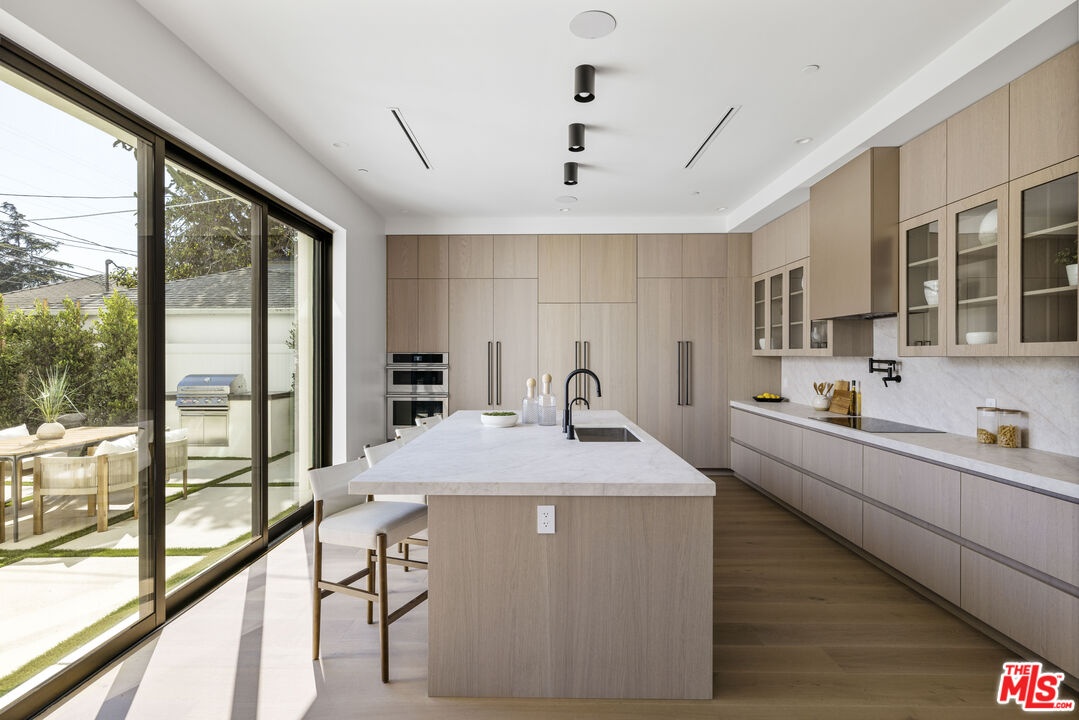 Welcome to 4220 Kenyon Avenue, a newly built modern masterpiece in the heart of Del Rey. Behind its gated facade, this home blends refined sophistication with effortless California coastal living. Inside, wide-plank European oak floors and soaring ceilings flow through an open layout centered around a sleek fireplace and floor-to-ceiling porcelain feature wall. Custom pocket doors open to a private entertainer's paradise complete with a sparkling pool and spa, built-in barbecue, outdoor speakers, and drought-tolerant landscaping. The chef's kitchen impresses with custom cabinetry, leather-finish Taj Mahal countertops, and high-end appliances. A first-floor bedroom provides ideal flexibility for guests or a home office. Upstairs, the vaulted primary suite features a fireplace, private balcony, illuminated closet cabinetry, and a spa-inspired bath with dual sinks, freestanding tub, and large shower. The 400-square-foot ADU offers a kitchenette and full bath, perfect for guests, a gym, or creative space. Thoughtful details include solar panels, a DoorBird intercom system, hard-wired security, dual-zone HVAC, and an EV-ready epoxy-floor garage. Ideally located near Marina del Rey, Playa Vista, and the Westside's best dining and beaches, this home embodies modern California luxury at its finest.