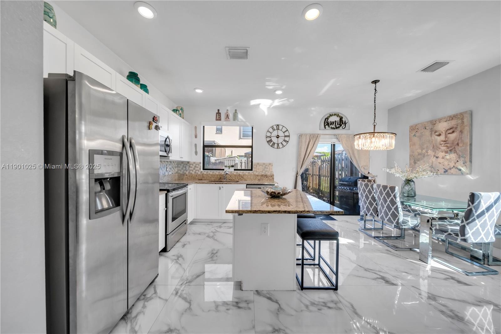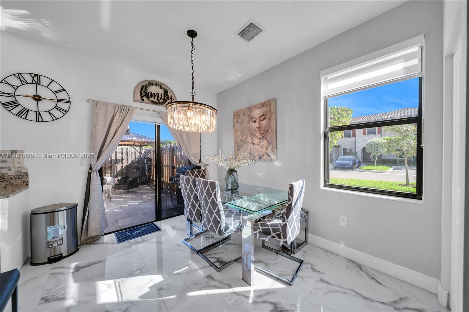 Beautiful 2019-built corner-unit townhouse with very low HOA fees! This spacious 3-bedroom, 3-bath home offers an open-concept layout with a modern kitchen, granite countertops, and a large granite island perfect for entertaining. Fully tiled with laminate in select areas, it blends style and comfort effortlessly. Two bedrooms feature elegant glass-enclosed standing showers. Enjoy outdoor living with a private fenced patio and cozy gazebo. Washer and dryer conveniently located on the second floor. Tile roof, 2 assigned parking spaces, and move-in ready condition! The low-maintenance HOA fee of $236.44 includes landscaping and rodent pest control. Community amenities include a pool, gym, clubhouse, kids play area and country club—offering resort-style living at an incredible value!