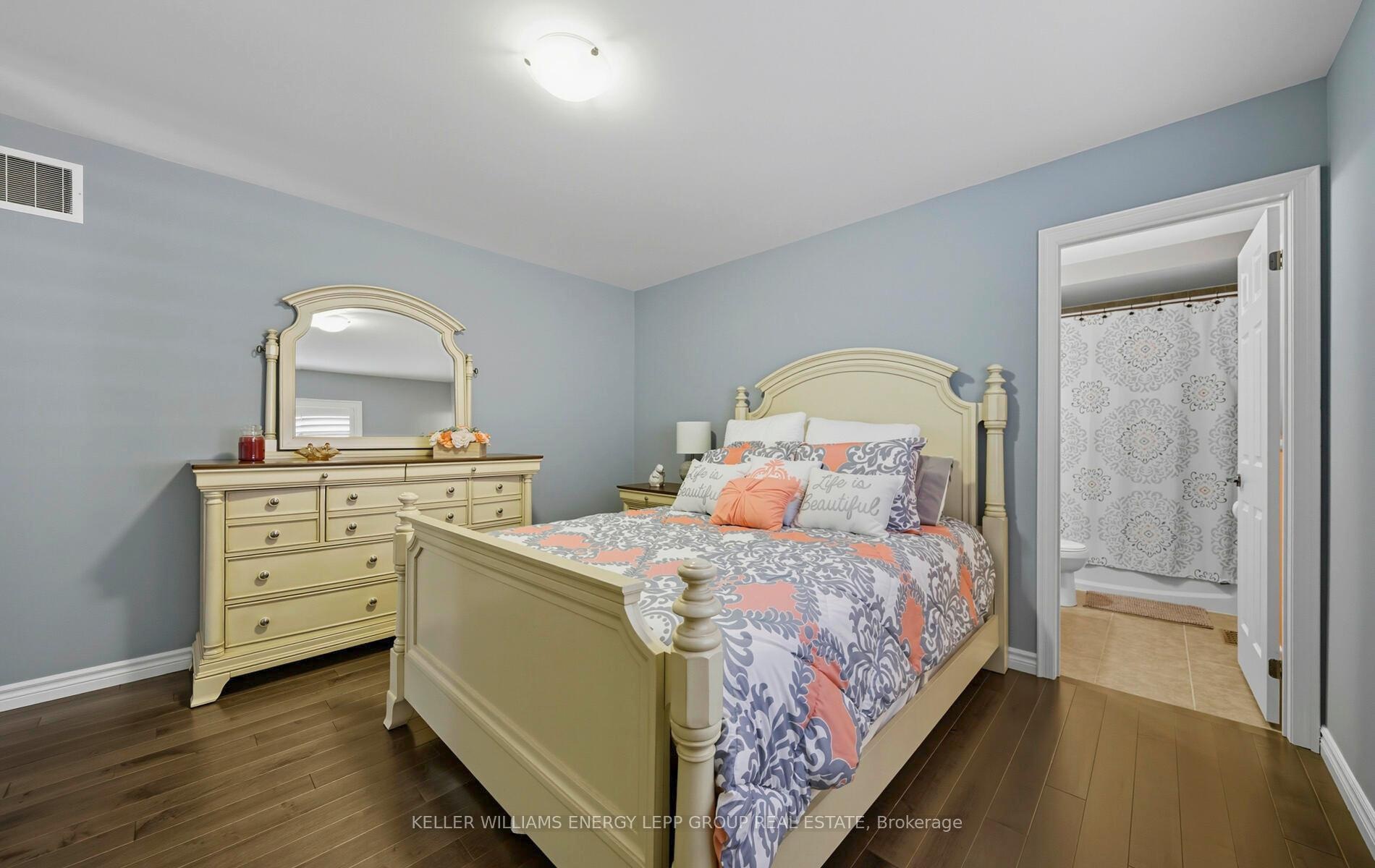 A True Showstopper in North Oshawa! Stunning 4-bedroom, 4-bathroom home offering approximately 3,200 sq. ft. of upgraded living space on a quiet cul-de-sac in North Oshawa. Exceptional curb appeal with double garage, and driveway parking for multiple vehicles. Inside features include 9-ft ceilings on the main level, flat ceilings throughout, and a curved hardwood staircase at the entrance. Spacious living room with large windows and built in shelves surrounding the cozy fireplace. Elegant formal dining room with wainscoting panels. Main floor laundry and modern, fully upgraded kitchen with Caesarstone countertops, center island, stainless steel appliances, and sun-filled breakfast area with walkout to a large backyard deck. Perfect for entertaining with gazebo, shed, and fully fenced yard for privacy. Luxurious primary suite with two walk-in closets and a 5-piece ensuite featuring double sinks, a corner soaker tub, and a glass walk-in shower. One secondary bedroom with private 4-piece ensuite, plus two additional bedrooms sharing a jack-and-jill 4-piece bath , all with generous closet space, large windows and California Shutters. Semi-finished basement offers excellent potential for future living space. Located close to great schools, parks, and amenities in a family-friendly neighborhood. A rare combination of space, style, and location on one of Oshawa's most sought-after neighborhood.