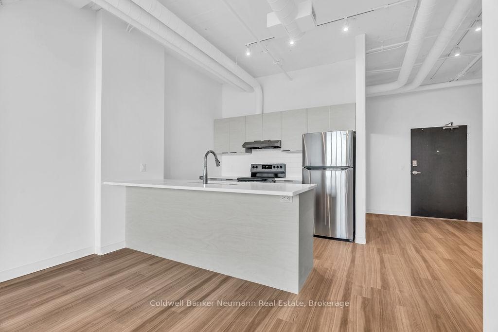 Move-in ready and available at any time, this spacious 1-bedroom + den condo offers a stylish and functional layout. The galley kitchen features quartz countertops, stainless steel appliances, and a breakfast bar overhang-perfect for casual meals or entertaining. Theres plenty of room for both living and dining areas, plus a versatile den that works beautifully as a home office or flex space. The primary bedroom includes a generous walk-in closet, while the 4-piece bathroom comes complete with a deep soaker tub. Added conveniences include in-suite laundry, one private parking space, and a storage locker. Residents will also enjoy access to incredible amenities, including a fitness centre, rooftop terrace, music/games room, and bike storage. With its unique blend of urban style and industrial character, this building truly stands out. Book a viewing today!