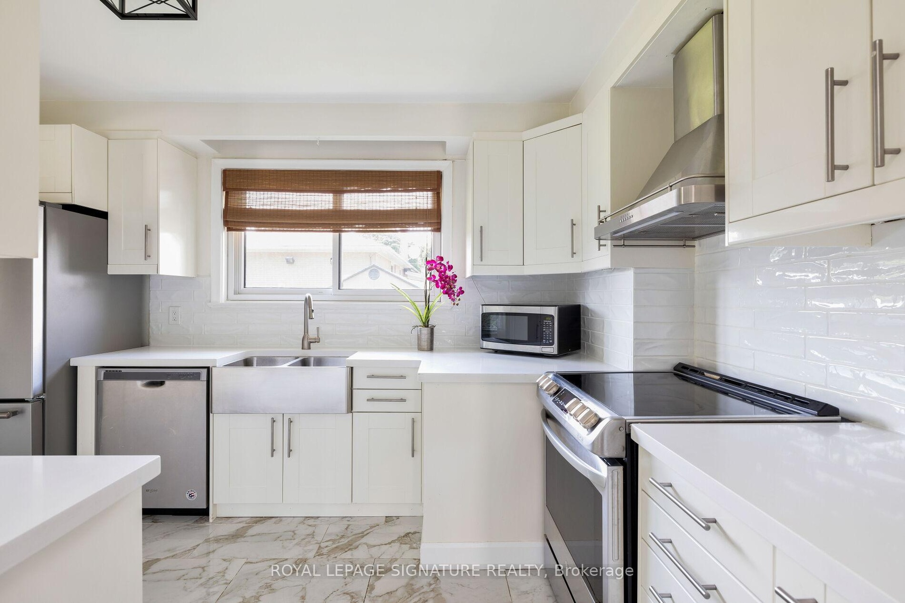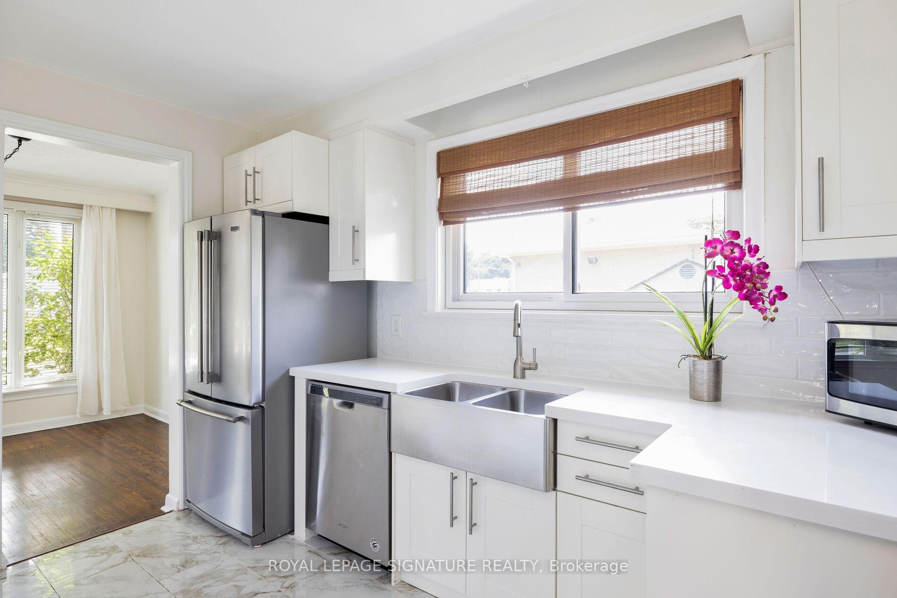 26 Paragon Road is situated in the highly desirable Kingsview Village, minutes to the 427 &401, as well as the Etobicoke North Go station, but tucked away on a quiet, family friendly street surrounded by beautiful, mature trees. The Main Floor begins at the spacious foyer (with ample closet storage) that welcomes you into the open concept living/dining room with hardwood floors and large south facing windows. The main floor also features a newly renovated modern kitchen with quartz counters, custom backsplash, stove/oven, dishwasher and microwave. 3Generously sized bedrooms, all with large windows, hardwood floors, and ample closet space. The main floor features its own en-suite stacked laundry, as well as front porch sitting area and exclusive use of the massive backyard. Modern vanity and shower/tub in the washroom. Exclusive use of the garage and 2 parking spots- garage and carport. Utilities extra - Main floor pays60% of all utilities (Hydro, water, Gas).