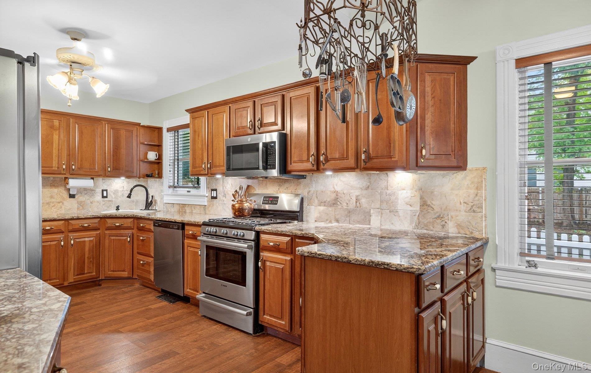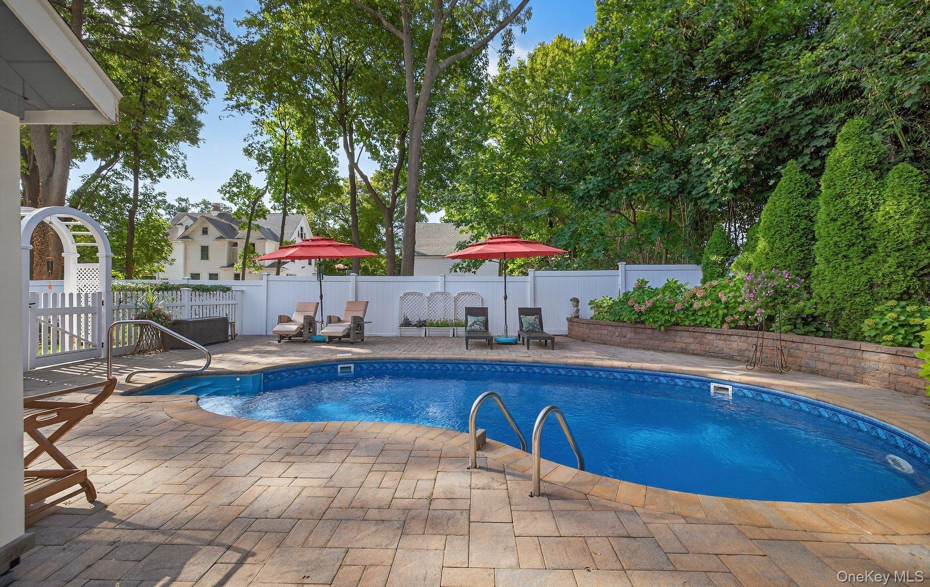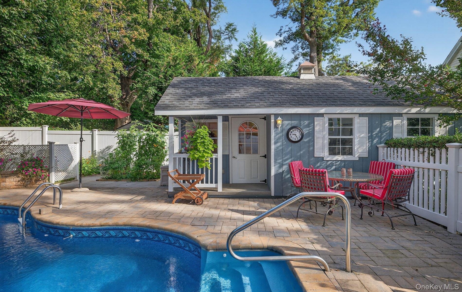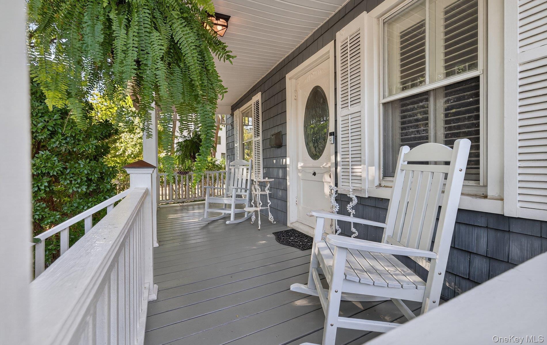 Nestled in the heart of Historic Northport Village, this charming 1907 Colonial offers the perfect blend of classic character and modern convenience. With 3 bedrooms and the potential for a fourth, this home features 2 full baths and has been thoughtfully updated to include central air conditioning and efficient gas heating. The exterior boasts vinyl cedar impression siding and covered gutters, ensuring low-maintenance living. Step outside to a beautifully landscaped, fully fenced yard featuring a stunning in-ground, kidney-shaped heated saltwater pool with a brand-new liner and equipment installed within the last three years. The outbuilding, equipped with electric, is part pool house and part storage, complete with a quaint porch that complements the professionally designed specimen landscaping and hardscape completed in 2018. Inside, the home welcomes you with a front porch and original Victorian door, sitting room open to dining room with charming hallway which leads to a vaulted great room with a cozy gas fireplace. Hardwood floors run throughout, with the main level newly refinished. The spacious, custom eat-in kitchen has been remodeled with quartz countertops, under-cabinet lighting, and newer stainless steel appliances, all overlooking the serene and private backyard. This is a rare opportunity to own a piece of Northport's history with all the comforts of modern living. Enjoy rare low taxes of $7,500.56 with basic STAR that includes The Village taxes!!!