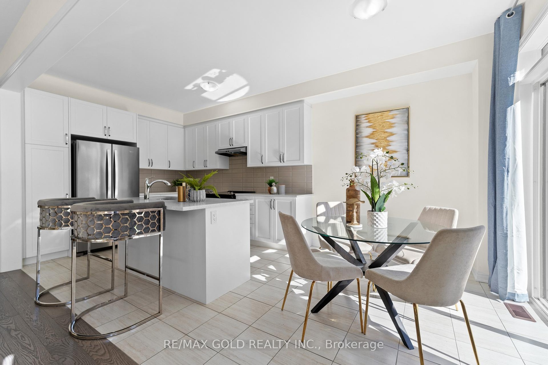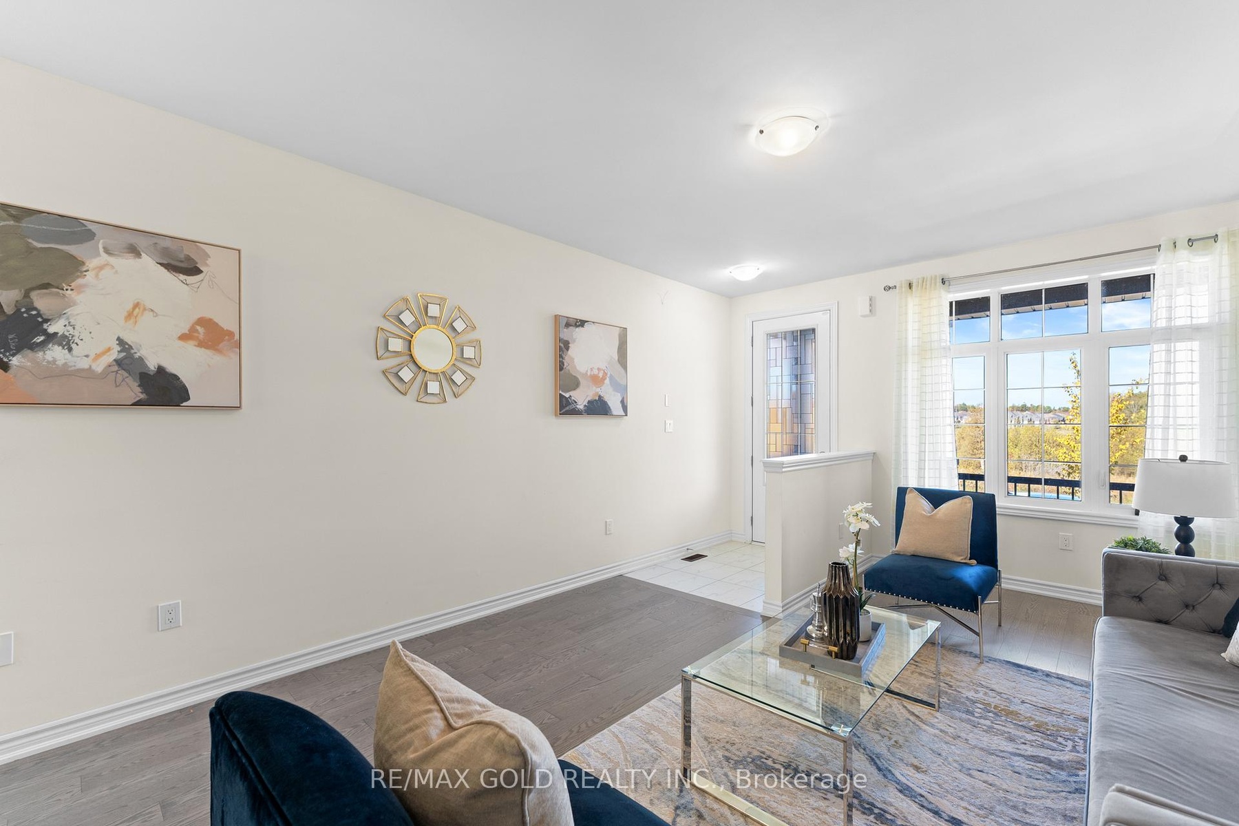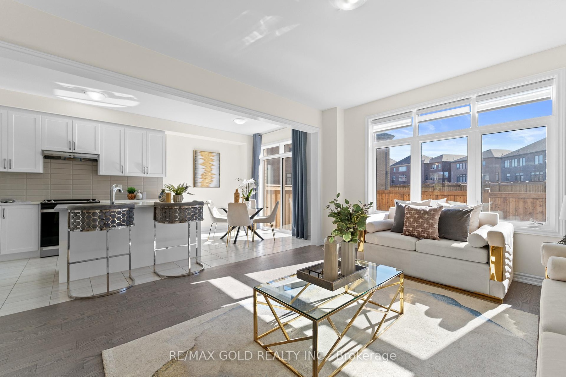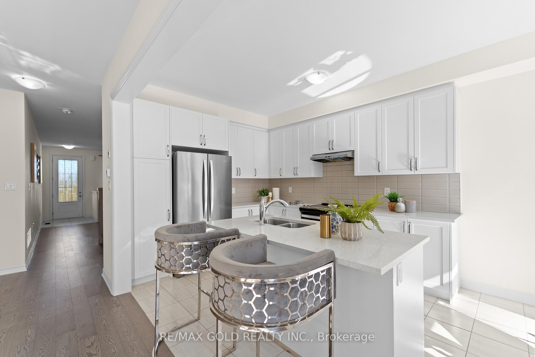 Welcome to this beautiful 4-bedroom townhouse, thoughtfully designed to combine style, comfort, and convenience, all while being filled with natural light throughout. The inviting foyer with elegant ceramic flooring leads into a modern open-concept layout where the sleek kitchen, complete with a large center island, flows seamlessly into the spacious living and dining area, highlighted by gleaming hardwood floors and expansive windows that create a warm and bright atmosphere. Upstairs, you'll find four generously sized bedrooms, each with large windows and ample closet space, including the impressive primary retreat featuring a walk-in closet and a spa-like 5-piece en-suite with a glass shower and a relaxing soaker tub. Everyday living is made effortless with the bonus of a second-floor laundry, while direct access from the garage to the home adds extra convenience. Perfectly located just minutes from schools, parks, shops, restaurants, and Hwy 404, this home is the ideal blend of modern living and family-friendly charm.