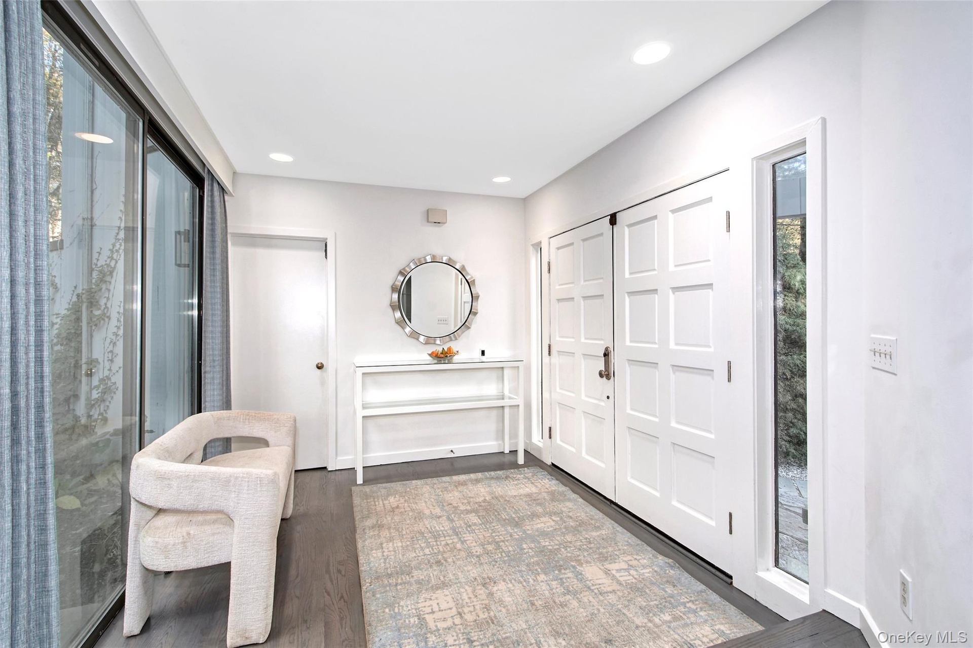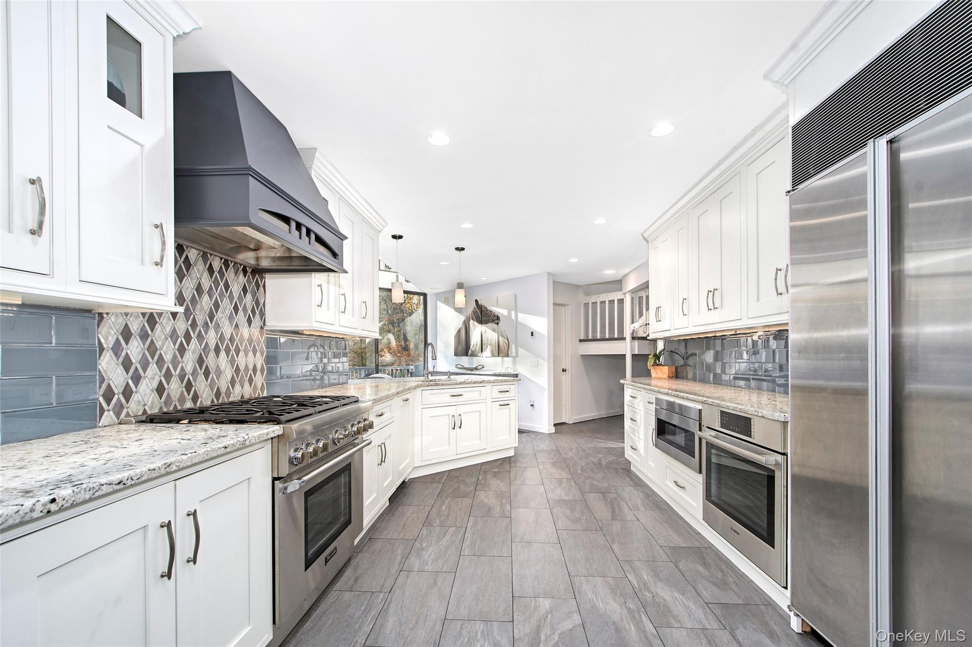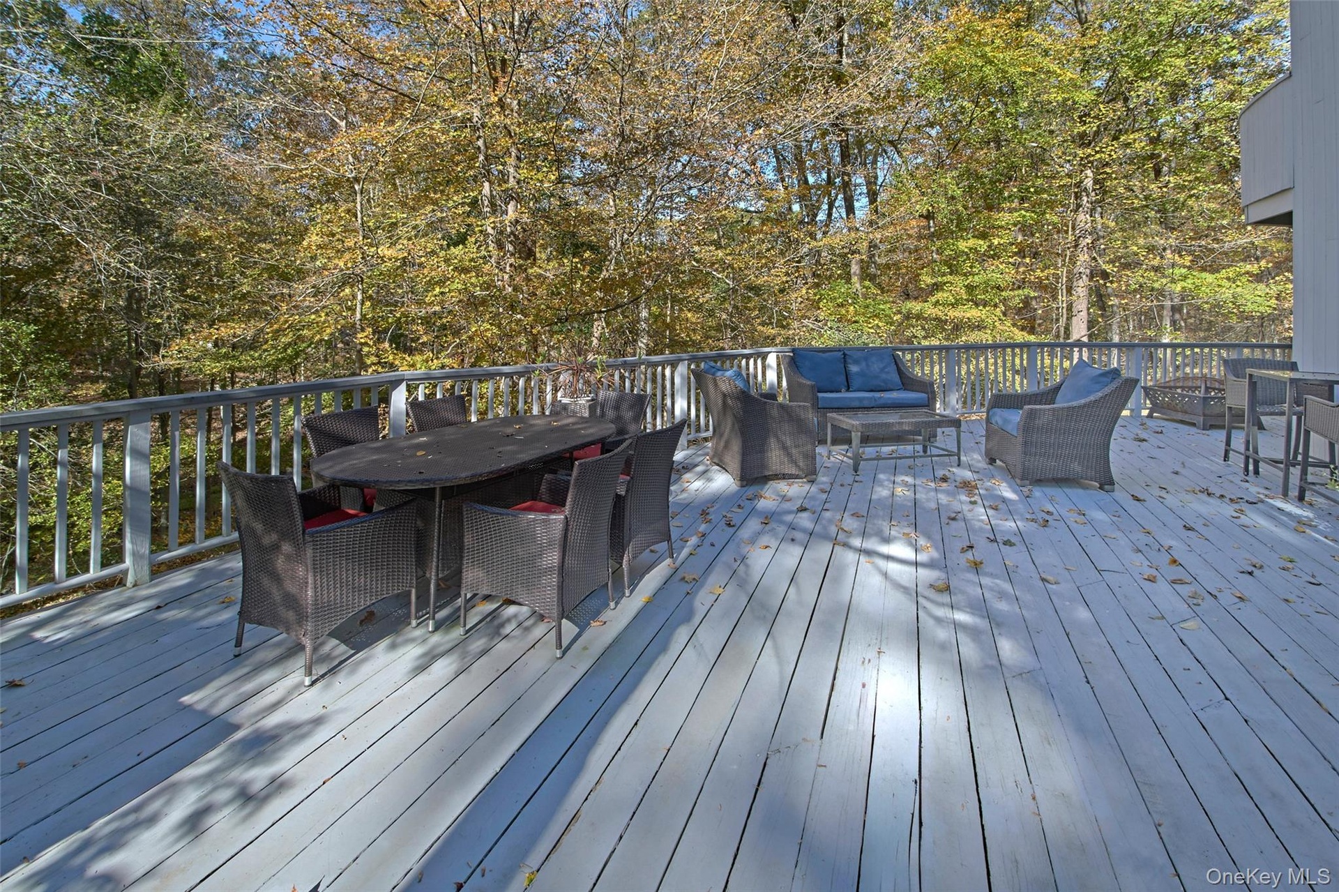Experience modern luxury and timeless sophistication in this stunning contemporary, beautifully sited on over an acre of park-like property in Chappaqua’s sought-after Whippoorwill neighborhood. Set on a quiet cul-de-sac with a majestic approach and newly resurfaced Belgian block–lined driveway, this home is surrounded by mature trees and lush landscaping, creating a private oasis with level play areas and serene natural views backing to a protected nature preserve. This dramatic residence features soaring ceilings, expansive windows, gorgeous hardwood floors and sophisticated modern design throughout. A bold double-door entry opens to a sun-drenched foyer and gallery-like living spaces. The vaulted dining room with floor-to-ceiling windows flows seamlessly into an oversized living room with a fireplace and sliders to expansive wraparound decks—perfect for indoor/outdoor entertaining. The beautifully renovated chef’s kitchen showcases high-end stainless steel appliances (SubZero, Bosch, Thermador), custom cabinetry, and a breakfast area with sliders for effortless alfresco dining. The main level also includes a spacious home office (or playroom) with a second fireplace, a guest bedroom suite, updated full bath, laundry area, and an attached two-car garage. Upstairs, the luxurious primary suite offers a fireplace, private balcony, dual walk-in closets, and an ensuite bath. Three additional bedrooms include one with an en-suite bath and two sharing a stylishly updated hall bath. The walk-out lower level provides a large recreation room, home gym, storage, and access to the expansive yard and surrounding landscape. Recent updates include: new roofs (2019 & 2024), new hot water heater, alarm and sprinkler systems, above-ground oil tanks, electric car charger, and more. Offering a rare combination of architectural drama, flexible living space, and resort-like grounds, this exceptional home delivers the best of modern living in a peaceful Whippoorwill setting within the award-winning Chappaqua School District.