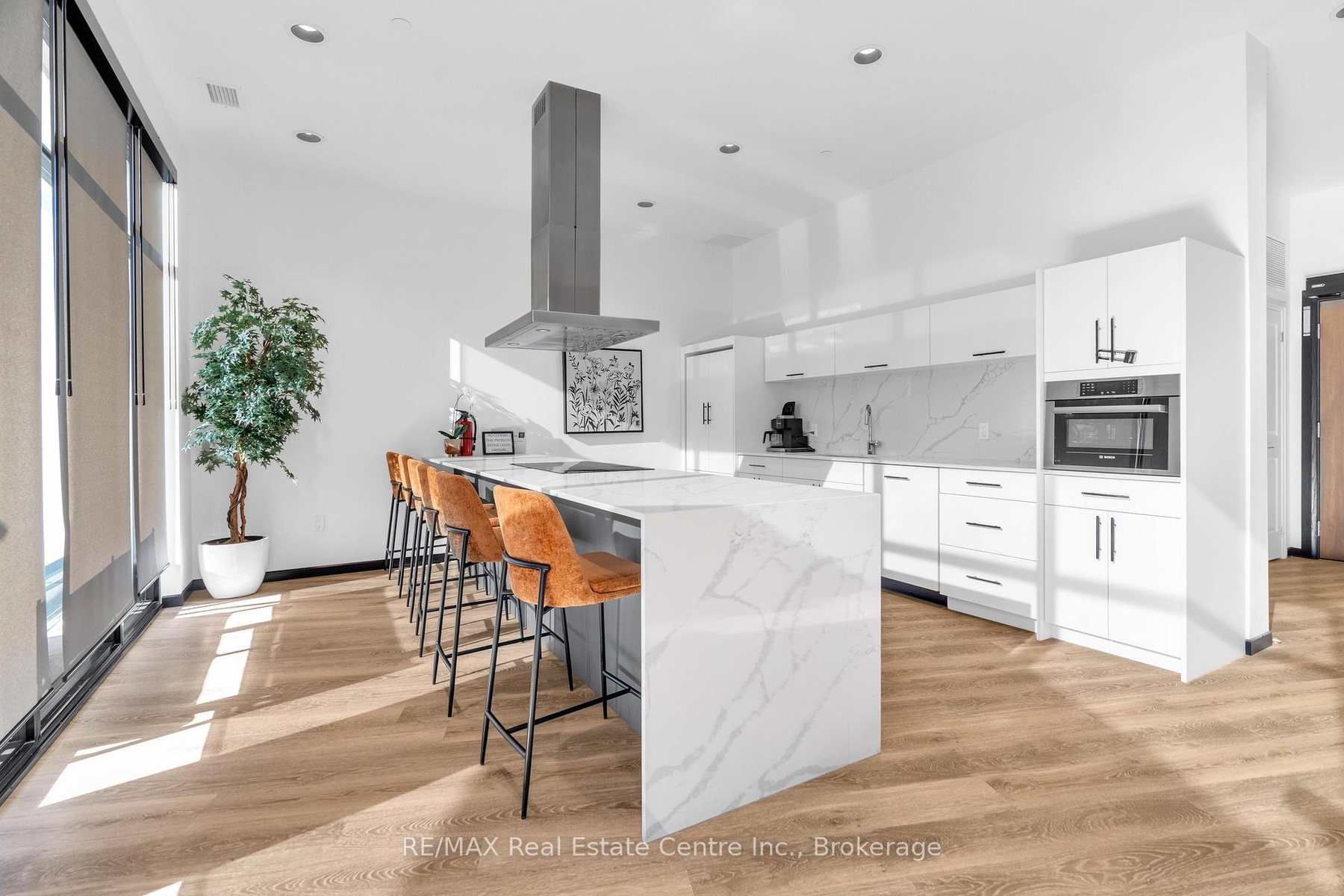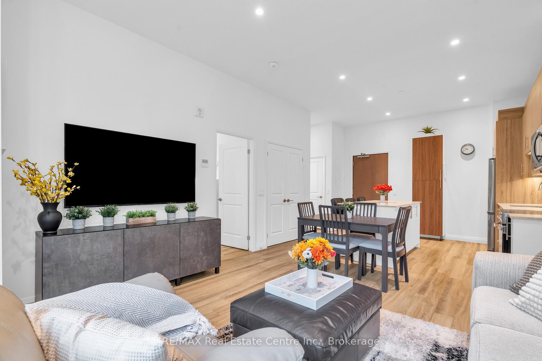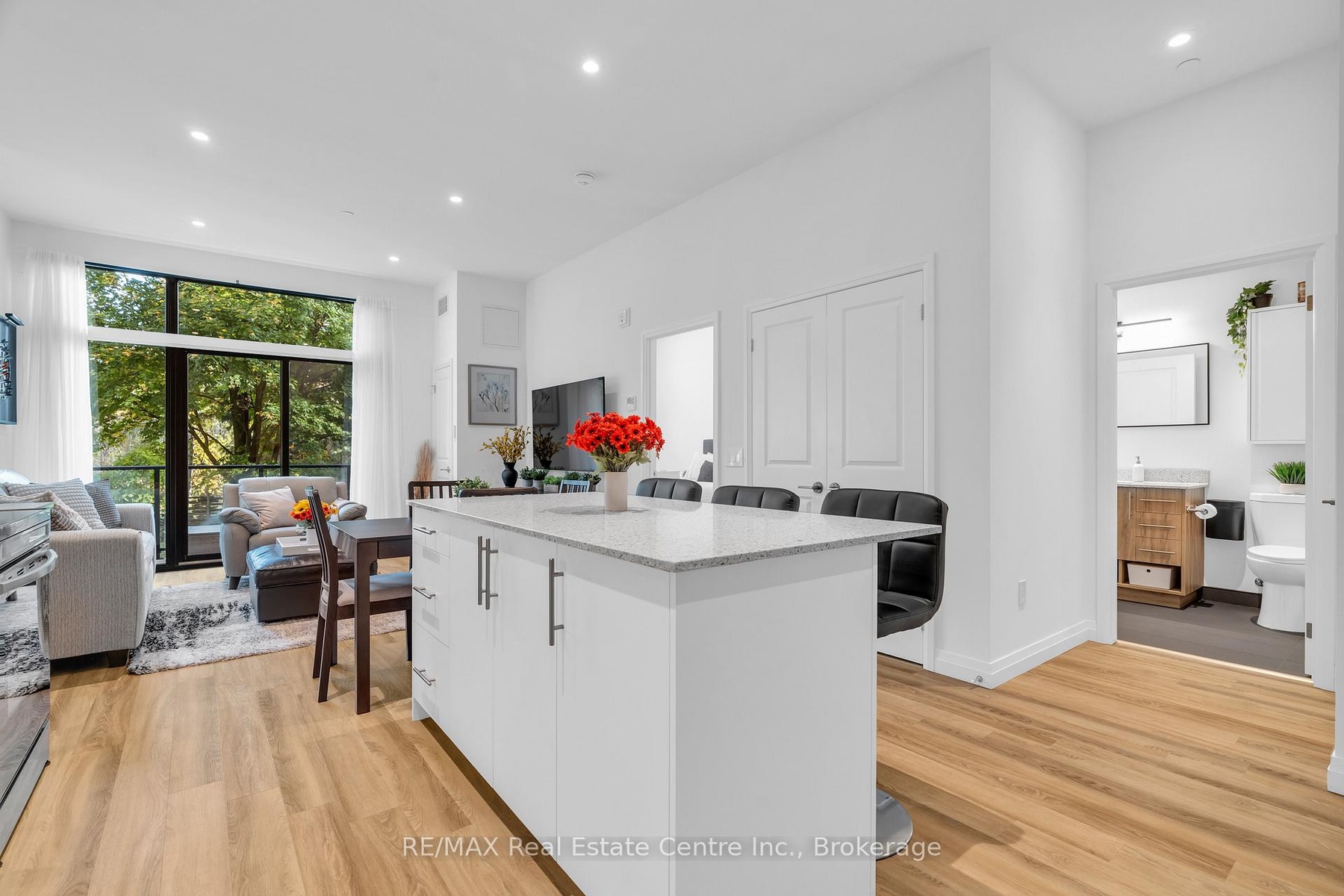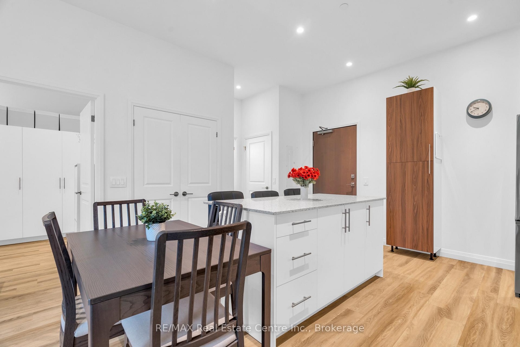 OPEN HOUSE THIS SATURDAY, OCTOBER 25TH AND SUNDAY, OCTOBER 26TH FROM 2-4PM. AN AGENT WILL KINDLY GREET YOU IN THE LOBBY. Welcome to 525 New Dundee Road, Unit 101 - a modern and bright one-bedroom condo located on the main floor of a one-year-old building. This spacious unit features 10-foot ceilings, an open-concept layout, and a private balcony with serene views of the forest and walking trail behind. The kitchen offers stainless steel appliances, sleek cabinetry, and a reverse osmosis water system, while the living area is enhanced with convenient power remote-control blinds for added comfort and ease. Enjoy the convenience of in-suite laundry, ample storage, and modern finishes throughout. The building offers exceptional amenities including a fitness centre, sauna, party room, library, a Pet Wash Station and a beautiful outdoor patio with BBQs - perfect for entertaining or relaxing. Ideally located just minutes from Highway 401, Conestoga College, shopping, restaurants, and walking trails, this home offers a perfect balance of comfort, nature, and accessibility. A great opportunity for first-time buyers, downsizers, or investors seeking low-maintenance living in a growing community.