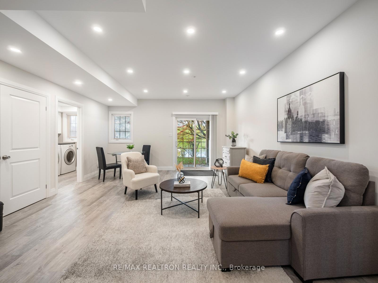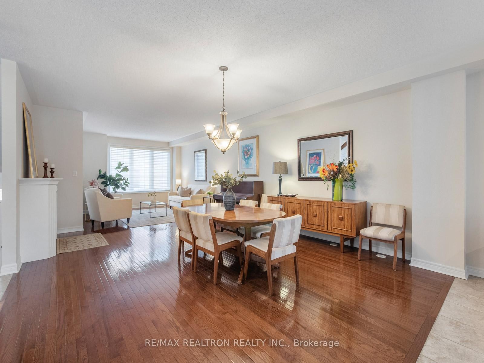Discover this beautifully updated freehold townhome, tucked away on a quiet, family-friendly court in highly sought-after Thornhill Woods. Backing directly onto a tranquil pond and lush greenery, this rare 3-bedroom, 4-bathroom residence offers over 2,200 sq. ft. of elegant living space. From the moment you step inside, you're welcomed by an airy foyer with soaring cathedral ceilings that set the tone for the rest of the home. The main level features 9-ft smooth ceilings, pot lights, rich hardwood floors, and an open-concept layout designed for versatility, function, and everyday comfort. The spacious dining area flows seamlessly into a chef-inspired kitchen, complete with an oversized granite island, tall upper cabinets, stainless steel appliances, and a family-sized breakfast area with a walk-out to the extended composite deck - the perfect spot to unwind and take in the peaceful pond and treed views. Upstairs, all three bedrooms are generously sized and filled with natural light. The primary suite offers stunning pond views, a walk-in closet, and a spa-like 5-piece ensuite. The recently finished walk-out basement provides a versatile additional living space, a 3-piece bathroom, and direct access to the beautifully landscaped backyard. Additional highlights include direct garage access, ample storage and coat closets, 2 year old roof, and a convenient crawl space for seasonal items. Located in a family-oriented neighbourhood renowned for its excellent schools, vibrant community center, and abundant parks, this home also offers easy access to shops, restaurants, and major highways. Set within an intimate enclave of just 47 executive townhomes - opportunities like this don't come up often!