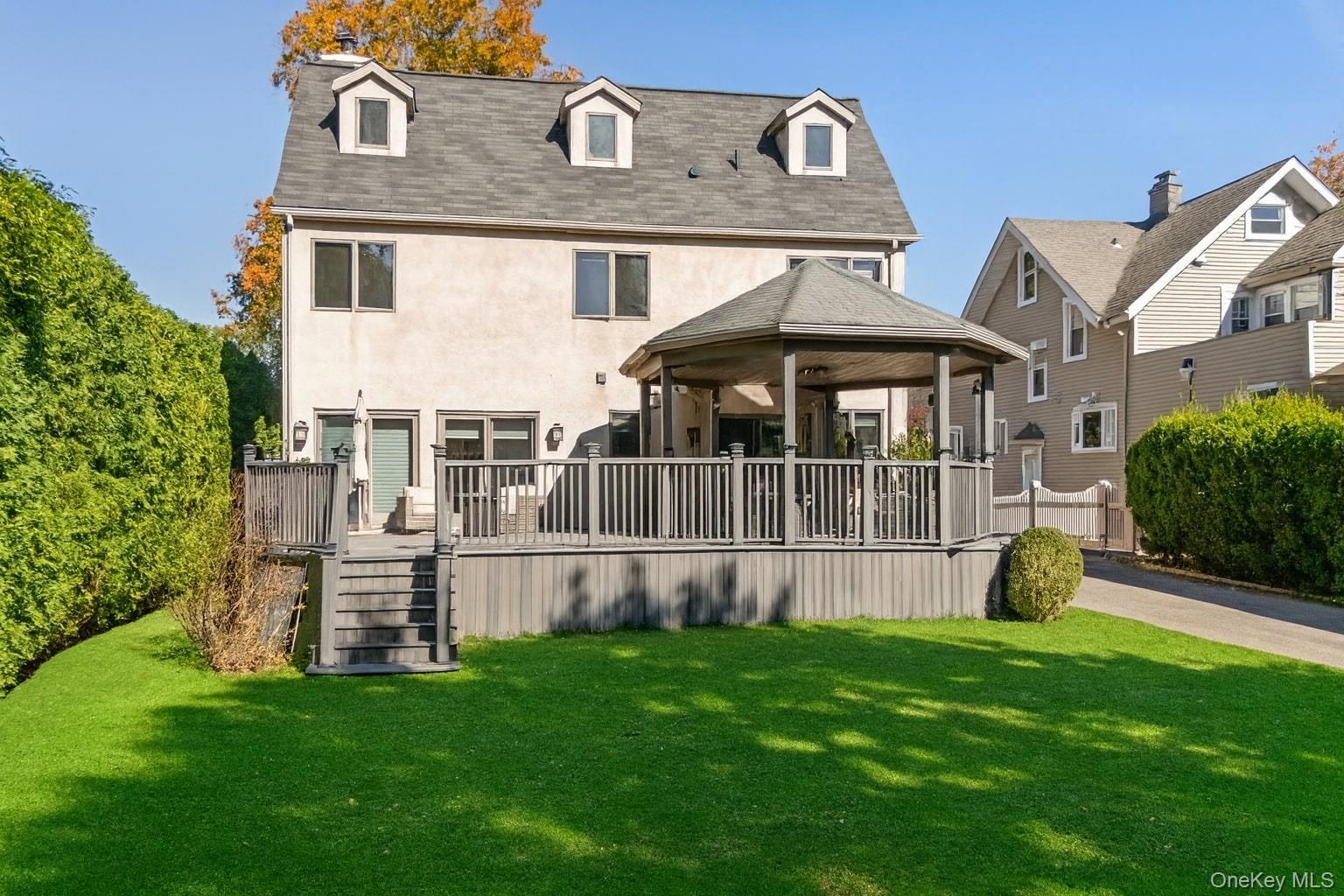 Impeccably maintained and beautifully updated Colonial featuring an ideal open floor plan perfect for modern living and entertaining. Enjoy large-scale rooms, a spacious kitchen with subzero refrigerator, large island and eat-in area that seamlessly opens to the family room, and easy access to an expansive deck with an attached gazebo overlooking the flat, private backyard. The second level offers four generously sized bedrooms, including an impressive primary suite with a fireplace, custom walk-in closets, and a luxurious spa-like bathroom complete with a steam shower and radiant heated floors. The fully finished lower level provides a large recreation area, full bath, and abundant storage, while the walk-up third level offers even more versatility as finished storage which can be used as a home office or playroom. Additional highlights include a new high efficiency furnace (2024), ample closets throughout, a whole-house generator, and quick access to Scarsdale’s Metro-North station, shops, and restaurants. Located within the Eastchester School District (Greenvale Elementary) with free school bus transportation, and eligible for membership at Lake Isle Country Club, featuring pools, golf, and tennis. Also conveniently located near several popular parks and playgrounds including Hyatt Park, Davis Park and more. Total square footage is 5,395 sq ft (Basement = 1,474 sq ft, 1st floor = 1,627 sq ft, 2nd floor = 1,555 sq ft, 3rd floor = 739 sq ft.)