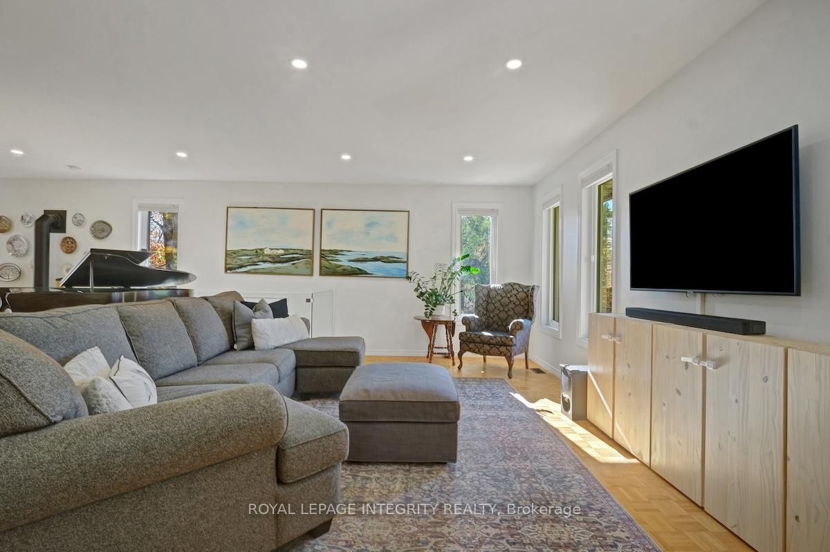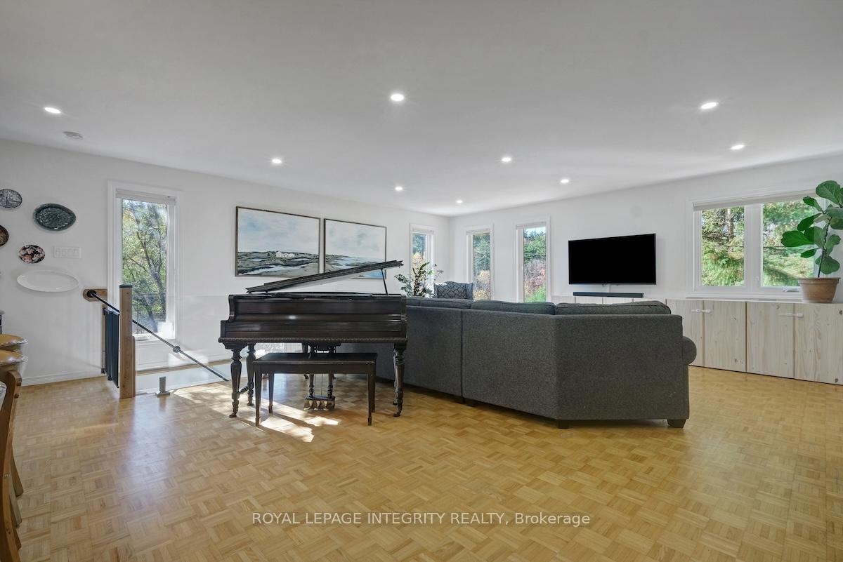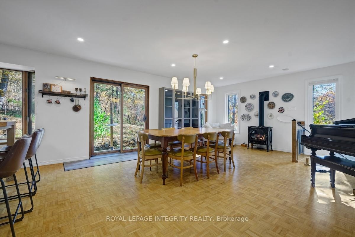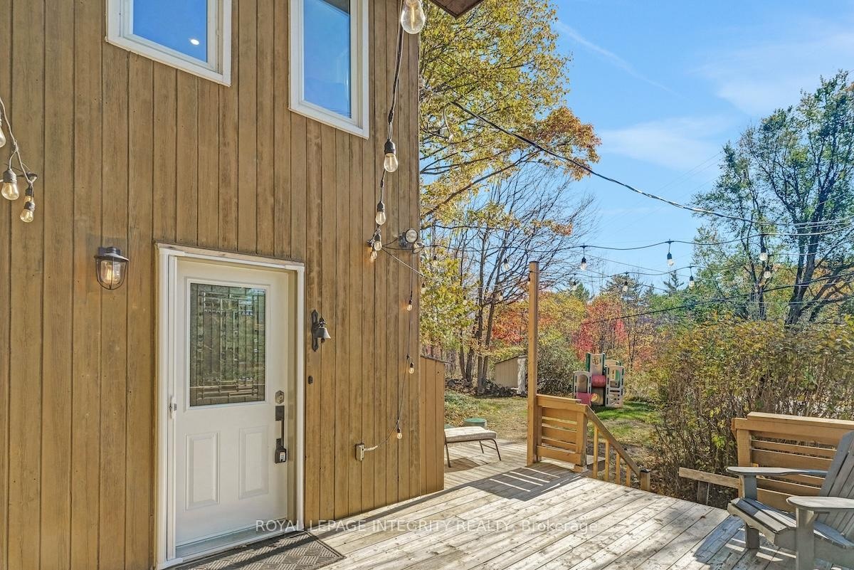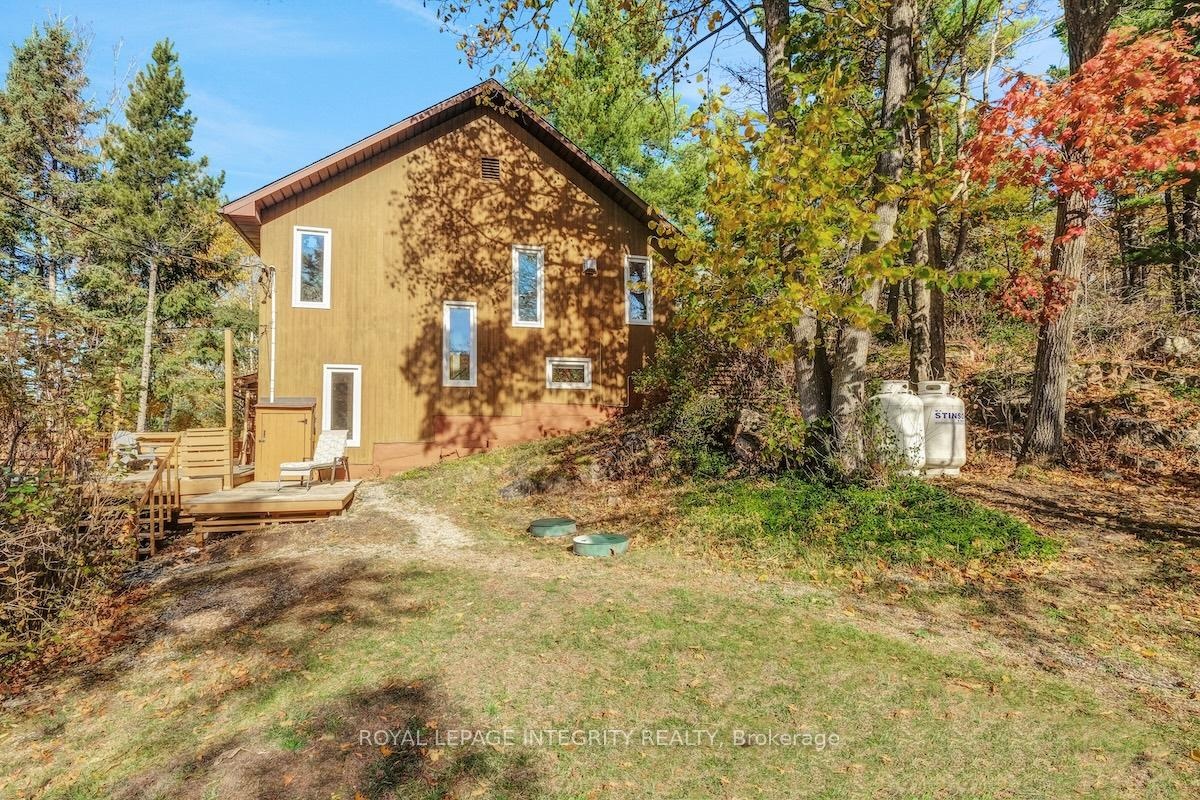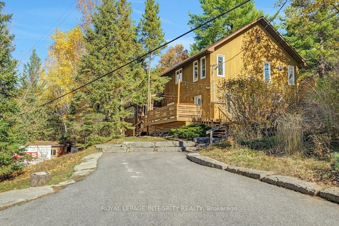 Tucked into the natural landscape of the Canadian Shield, this one-of-a-kind home offers the perfect balance of peace, privacy, and proximity to recreation. Nestled on a 1.24-acre double lot beside Mount Pakenham, this 3-bedroom, 1.5-bath home feels like a modern ski-lodge retreat. Surrounded by mature pines, boulders, and trails leading to a cozy fire pit, it offers serenity in every season - just 30 minutes from Ottawa. The open-concept main living area on the second level showcases the surrounding landscape, with large windows framing treetop views. The bright kitchen features newer stainless steel appliances (2023), and the adjoining dining area with a fireplace (propane) sets the tone for family meals and gatherings. This level also includes a full bathroom. The main level offers a welcoming foyer, three bedrooms, a powder room, laundry room, and a versatile layout-with the newest bedroom addition (2025) enhancing the home's functionality and charm. The newly completed office (2024) is fully insulated and soundproofed-ideal for remote work-with a large window bringing in natural light. Updates include pot lights throughout (2021-2025), a custom tile shower (2023), pine ceiling and bulkheads in the second bedroom (2023), and more. The primary bedroom, part of a thoughtful addition, offers a quiet retreat with expansive windows and peaceful forest views-an inviting space that reflects the home's tranquil character. Enjoy decks on both sides to follow the sun, a 20' x 12' workshop/shed, ample parking, and fibre optic internet to keep you connected. Minutes to Pakenham village, shops, golf, schools, and the Ottawa Valley Rail Trail - this is country living at its most connected and serene.