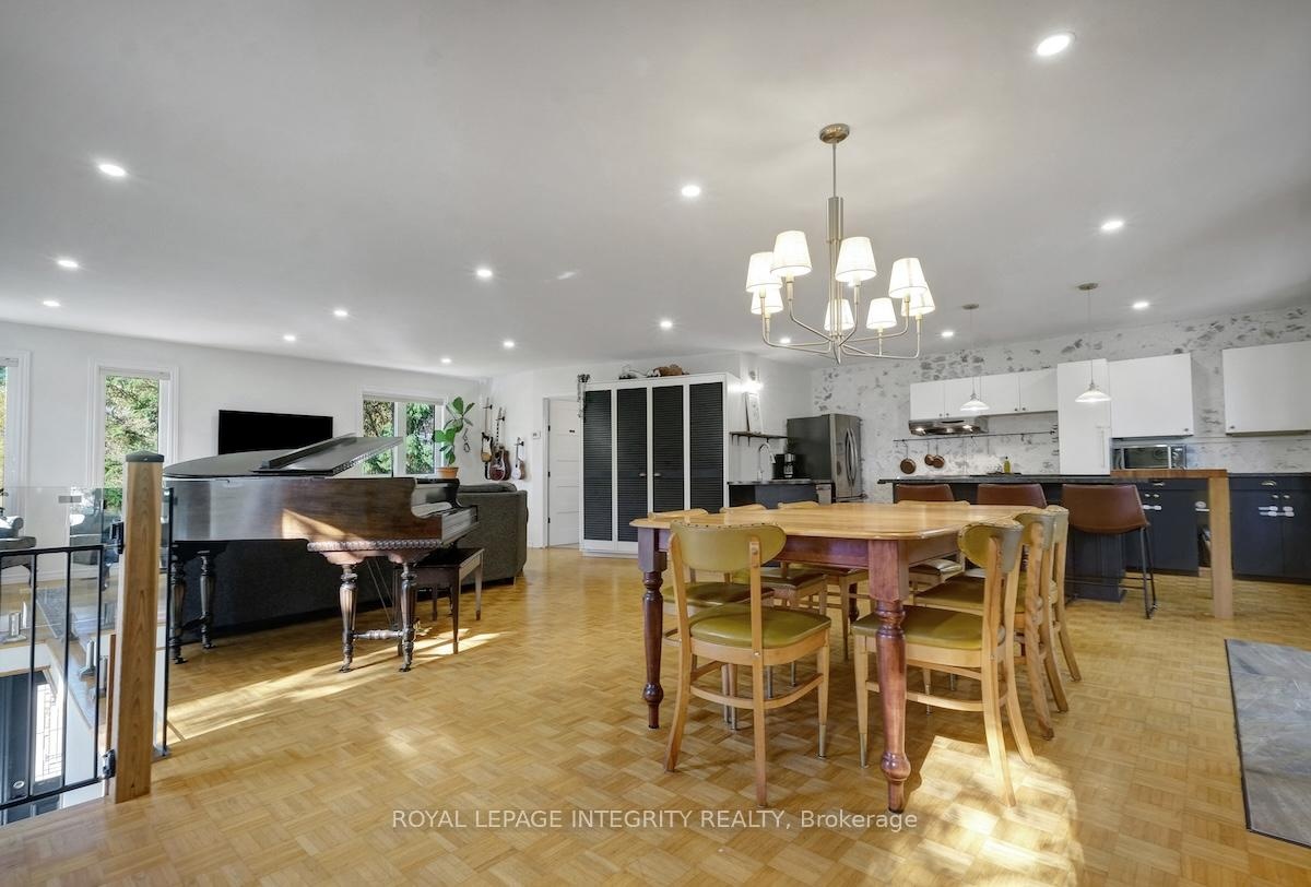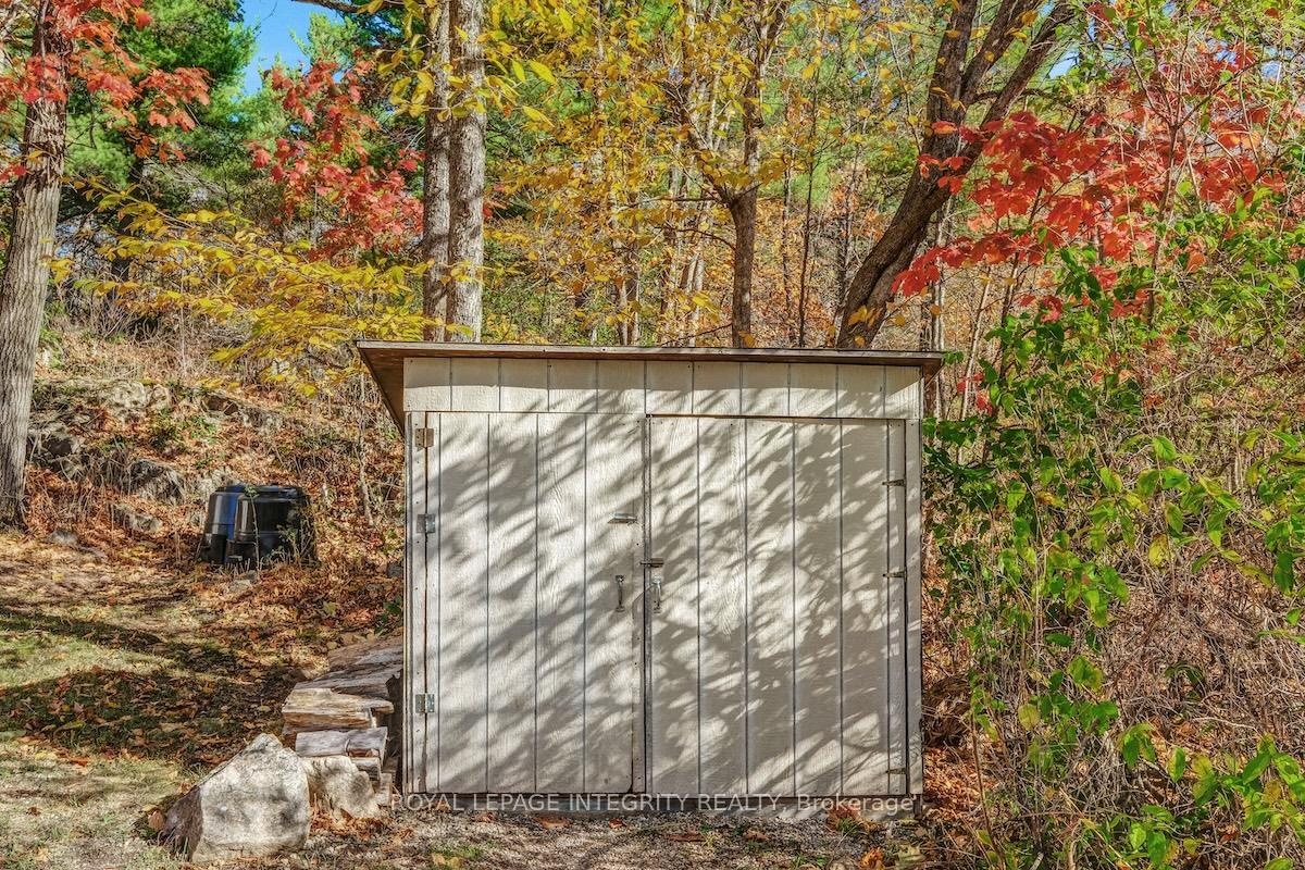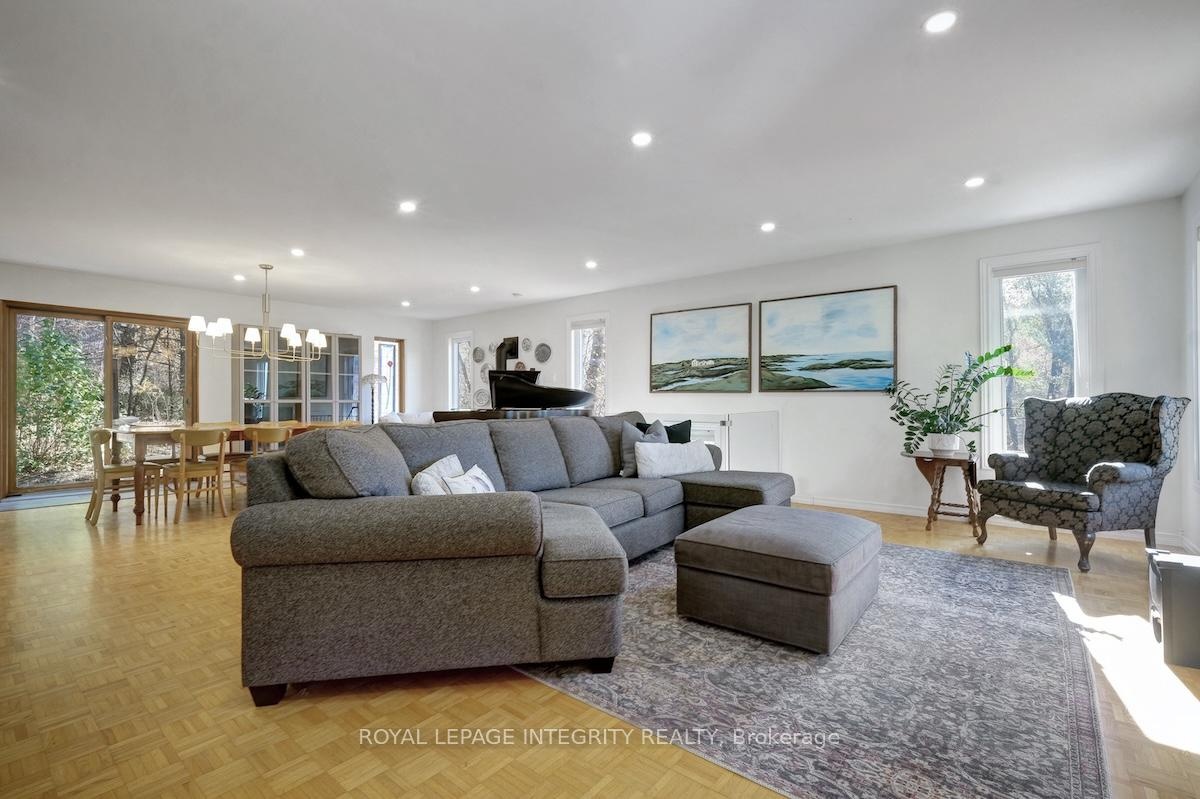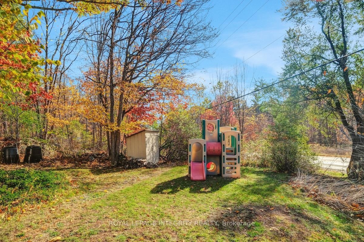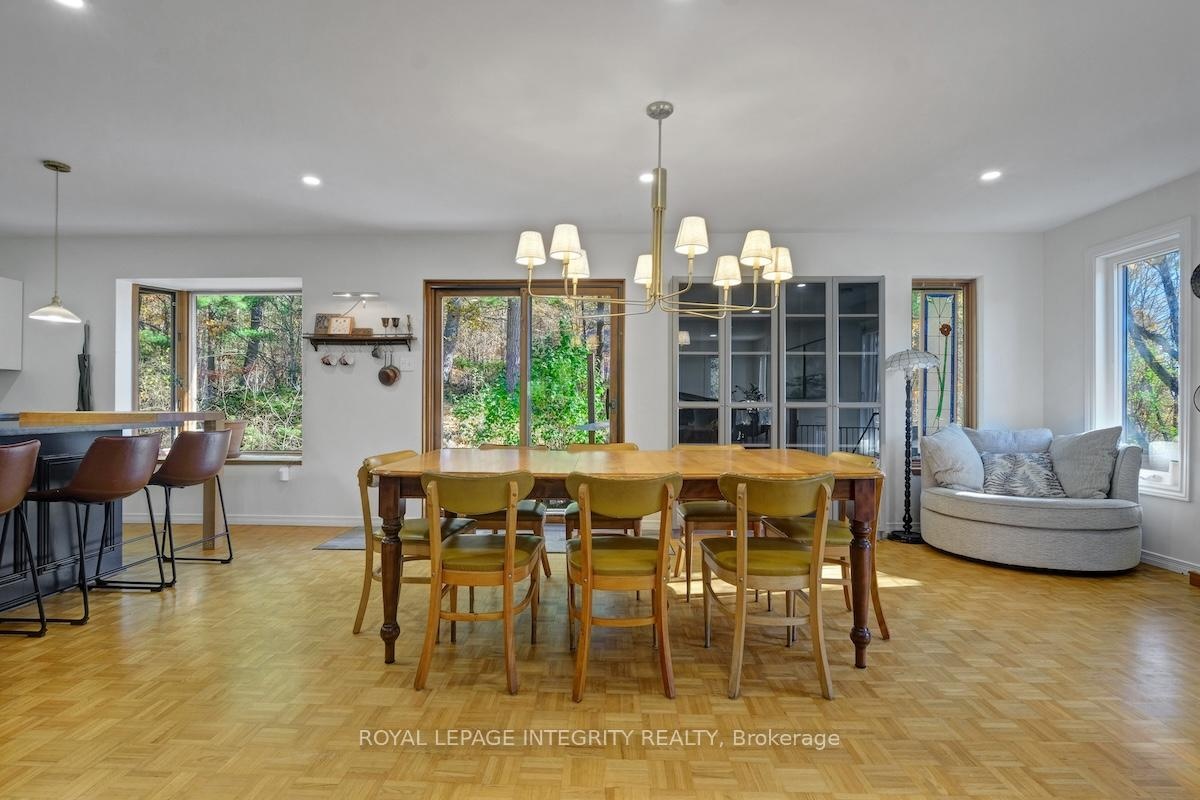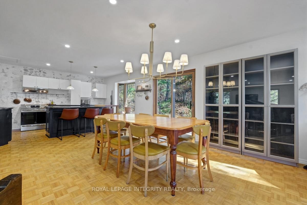 Tucked into the natural landscape of the Canadian Shield, this one-of-a-kind home offers the perfect balance of peace, privacy, and proximity to recreation. Nestled on a 1.24-acre double lot beside Mount Pakenham, this 3-bedroom, 1.5-bath home feels like a modern ski-lodge retreat. Surrounded by mature pines, boulders, and trails leading to a cozy fire pit, it offers serenity in every season - just 30 minutes from Ottawa. The open-concept main living area on the second level showcases the surrounding landscape, with large windows framing treetop views. The bright kitchen features newer stainless steel appliances (2023), and the adjoining dining area with a fireplace (propane) sets the tone for family meals and gatherings. This level also includes a full bathroom. The main level offers a welcoming foyer, three bedrooms, a powder room, laundry room, and a versatile layout-with the newest bedroom addition (2025) enhancing the home's functionality and charm. The newly completed office (2024) is fully insulated and soundproofed-ideal for remote work-with a large window bringing in natural light. Updates include pot lights throughout (2021-2025), a custom tile shower (2023), pine ceiling and bulkheads in the second bedroom (2023), and more. The primary bedroom, part of a thoughtful addition, offers a quiet retreat with expansive windows and peaceful forest views-an inviting space that reflects the home's tranquil character. Enjoy decks on both sides to follow the sun, a 20' x 12' workshop/shed, ample parking, and fibre optic internet to keep you connected. Minutes to Pakenham village, shops, golf, schools, and the Ottawa Valley Rail Trail - this is country living at its most connected and serene.