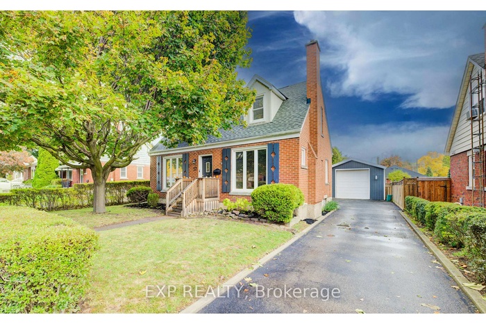 Welcome to 27 Dudhope Avenue, a beautifully maintained 1.5-storey home in the heart of Cambridge. Set on a 50x100 ft lot, this move-in ready gem offers 3 bedrooms, 2 bathrooms, and 1,513 sq ft of stylishly updated living space. The bright kitchen features quartz countertops, stainless steel appliances, white cabinetry, and subway tile backsplash. A sunroom with skylights and a gas fireplace adds cozy charm, while the spacious living room with stone fireplace provides the perfect gathering spot. The main bathroom is elegantly updated with a tiled walk-in shower. Downstairs, the partially finished basement offers additional living space or storage. Outside, enjoy a deep, private backyard framed by mature trees, plus a detached 18x26 ft insulated garage, ideal as a workshop. Don't miss this rare blend of comfort, character, and functionality.