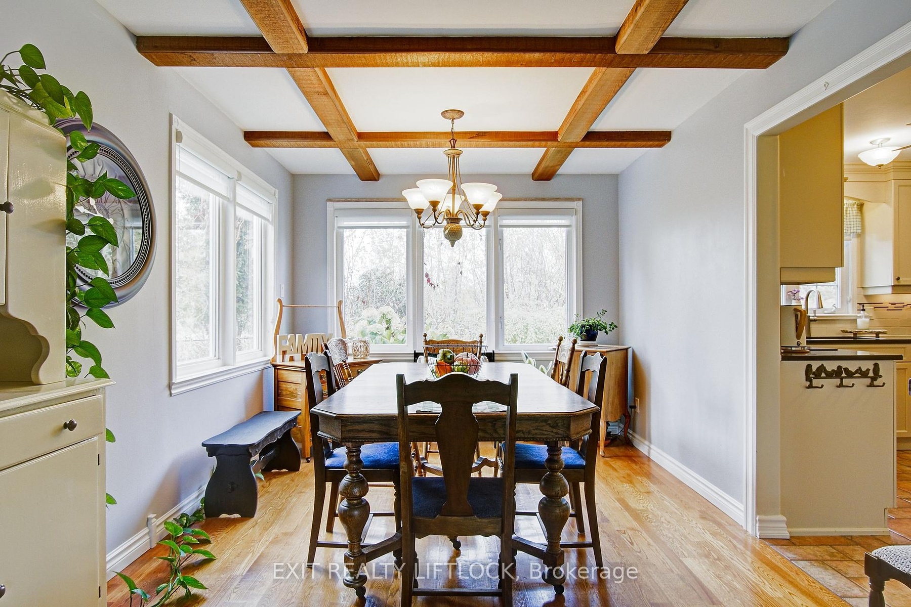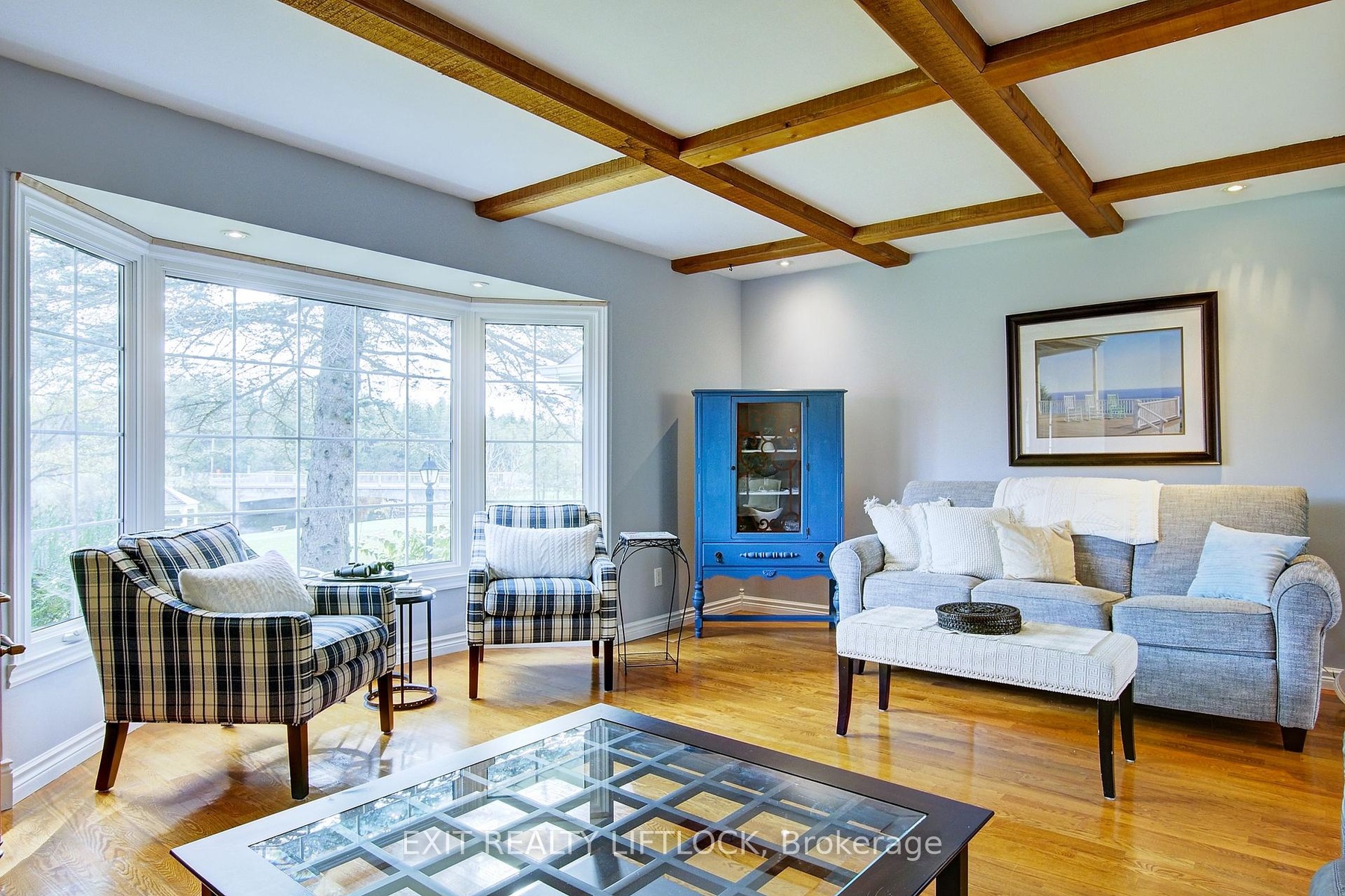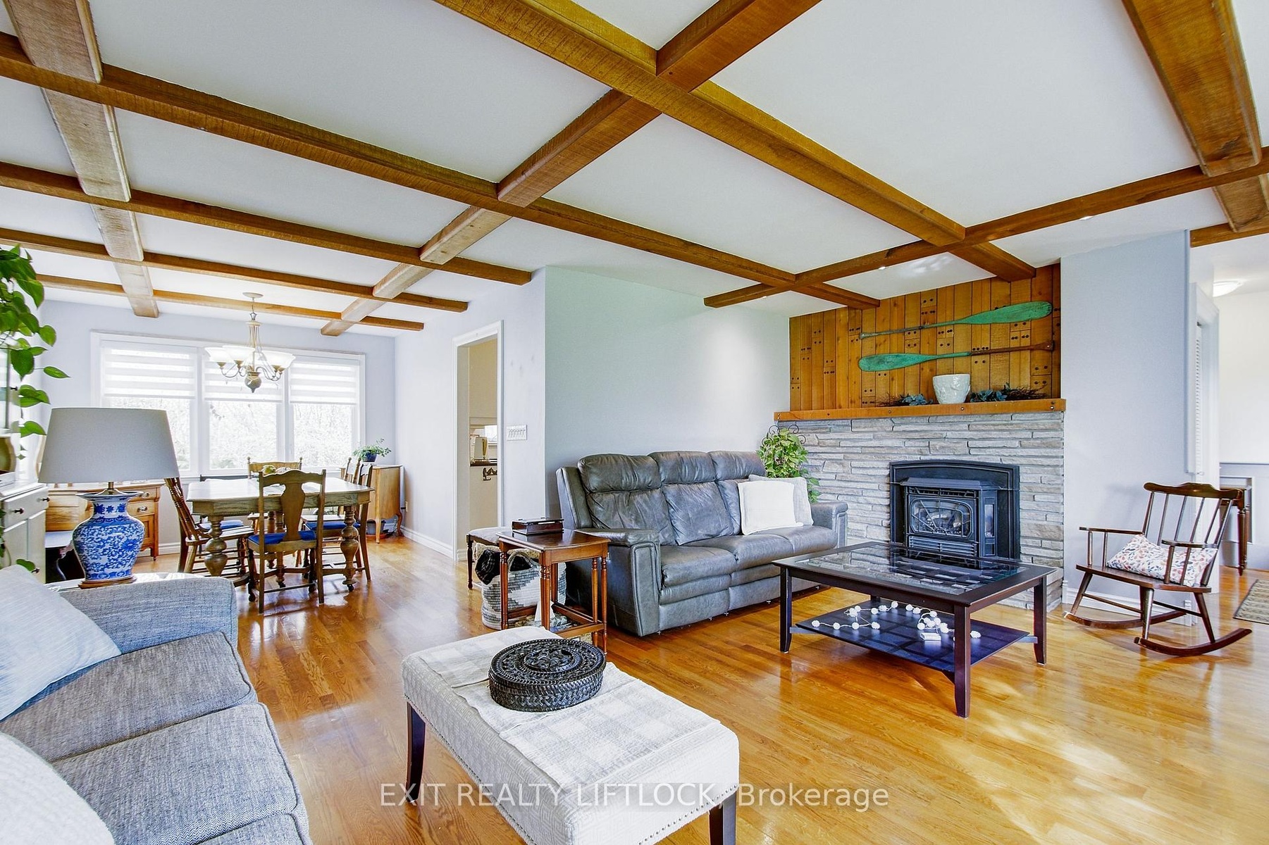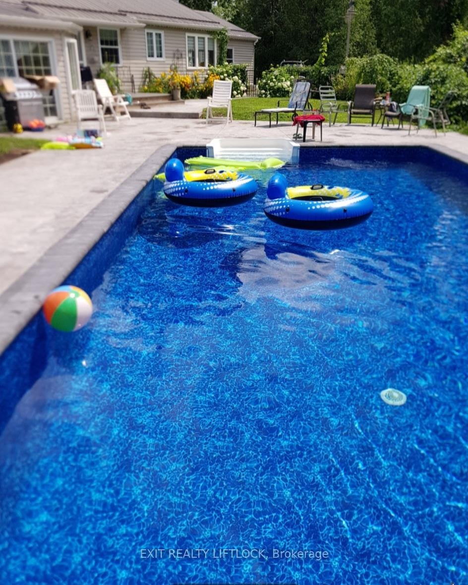 This stunning property offers the best of all worlds - riverfront living, an inground pool, and a home that radiates pride of ownership throughout. Upstairs you'll find three spacious bedrooms and a full bath, while the lower level features a fourth bedroom and an additional bathroom, perfect for guests or extended family. The interior showcases beautiful updates, including black quartz countertops, custom blinds, under-cabinet lighting, freshly painted rooms, beamed ceilings, two fireplaces, and a durable metal roof. The sunroom once housed a hot tub, and the opening remains, making it easy to reinstall should the new owners wish to bring it back. Outside, this property truly shines. On one side, you'll find frontage on the Indian River, ideal for kayaking, tubing, or simply relaxing by the water. There's also a large firepit area with a gazebo, perfect for cozy evenings under the stars. On the other side, an inground pool surrounded by stamped concrete and a beautiful patio creates the ultimate space for summer relaxation and entertaining. Additional features include a double-car garage, an insulated bunkie, and a large lot adorned with mature trees, including a picturesque willow. Whether you're looking for a year-round home or a peaceful weekend getaway, this property offers comfort, style, and serenity in one incredible package. Fibre Optics Internet. Please see the attached feature sheet for a full list of upgrades.