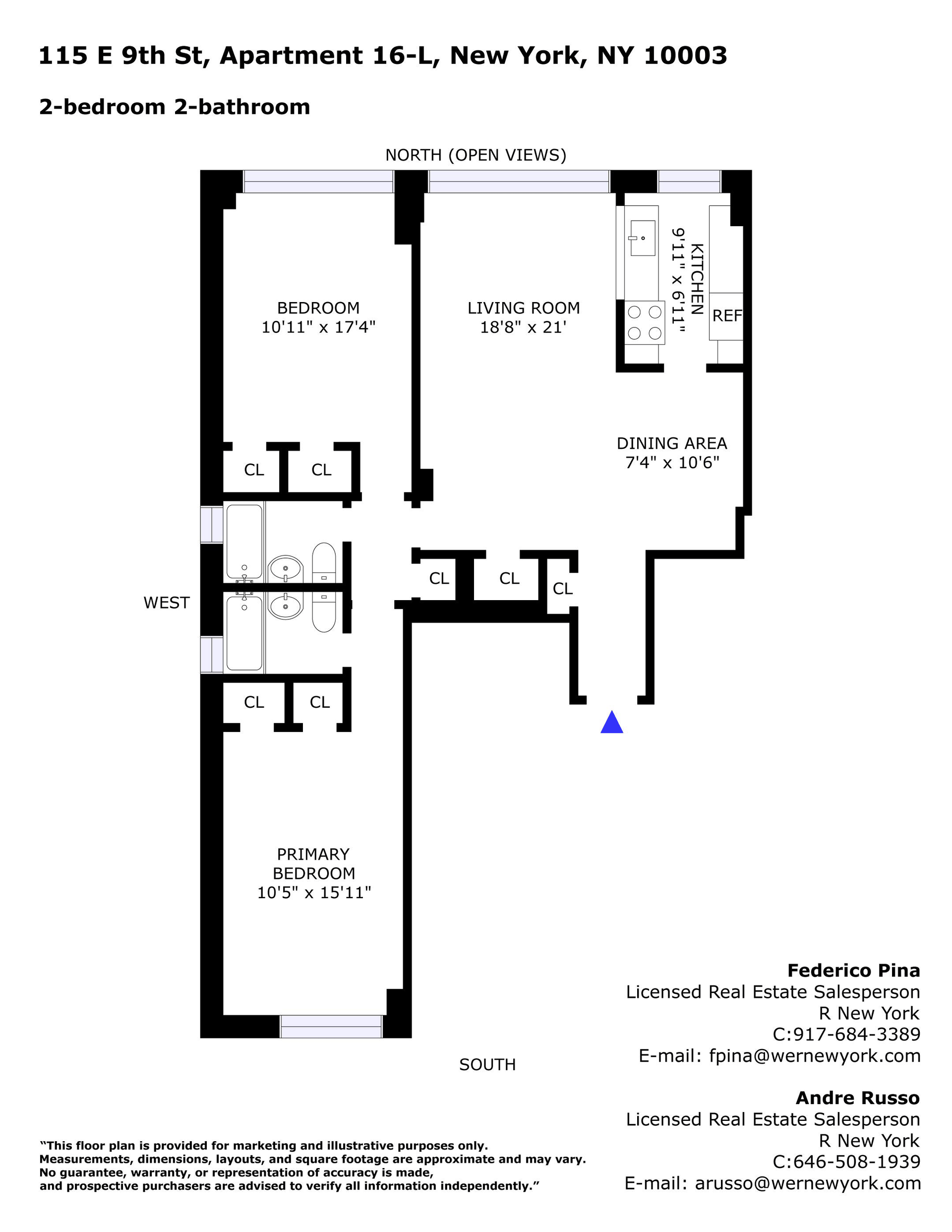 Rarely available high-floor corner two-bedroom, two-bath residence with North, South, and West views from 11 oversized windows providing beautiful natural light throughout the day. Perched high on the 16th floor, enjoy open city views of the New York City skyline.