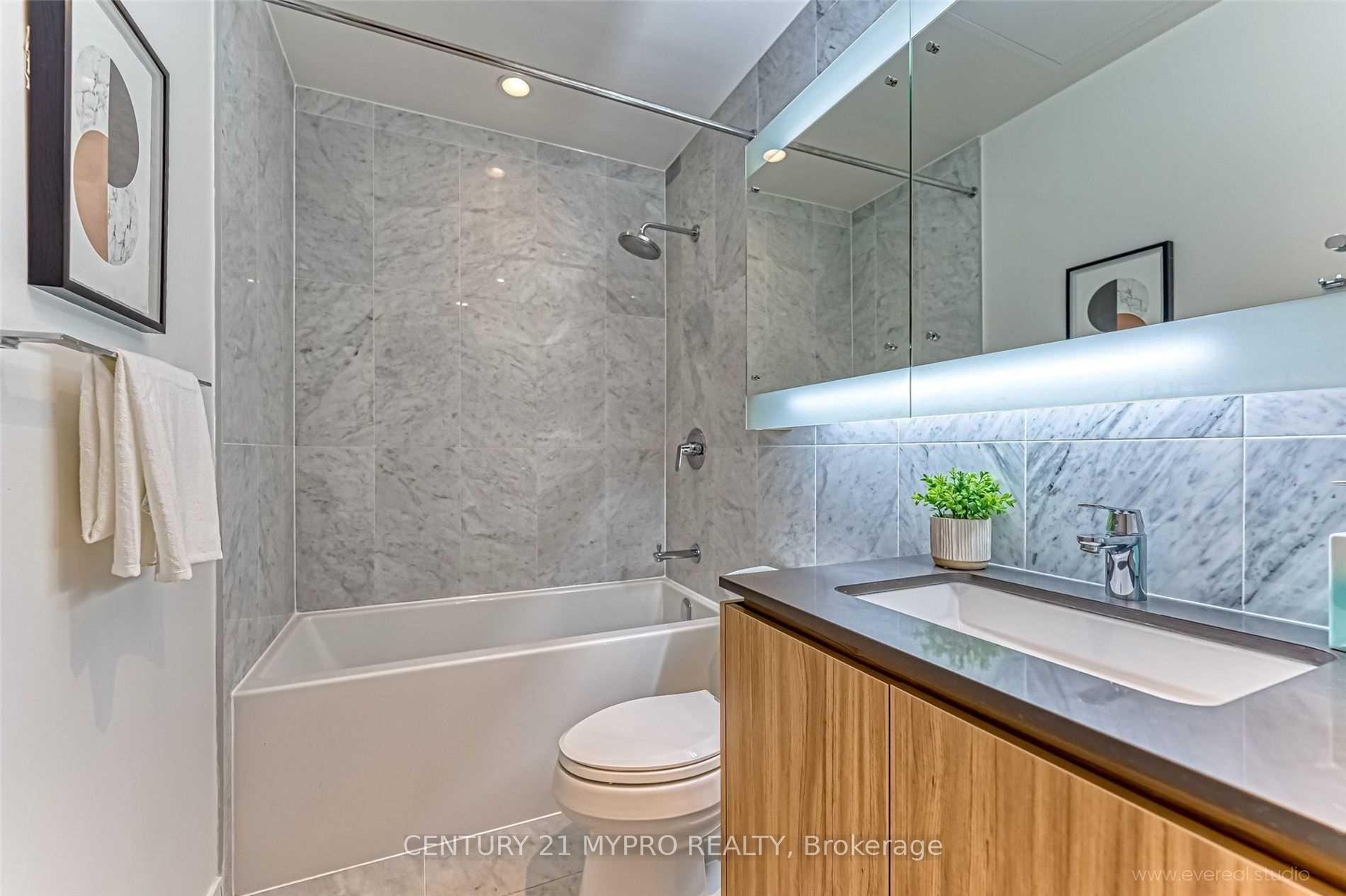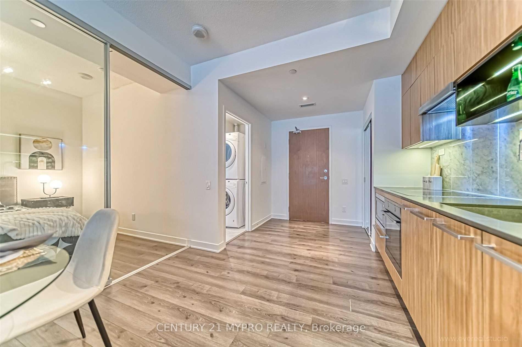 Beautiful & Modern 1+Den Unit In A Low-Rise Boutique Building, The Most Desired community In Dt Waterfront! This South-Facing Unit Features 9Ft Ceiling W/Floor To Ceiling Windows. The Large Enclosed Den Has Glass Sliding Doors And Can Be Used As 2nd Bedroom. Modern Kitchen With Premium Integrated Appliances: B/I Appliances & Quartz Countertop; Spa-Like Bath W/Marble Floors. Easy Access To All Amenities. Walking Distance To Ttc, Cn Tower, Union Station, Parks, Library, Grocery, Restaurants, Shops, Waterfront, Financial & Entertainment District.**EXTRAS** All Existing:(Fridge, Cook Top, Oven, Microwave, Dishwasher), Cabinet Organizers,Full-Sized Washer And Dryer; Window Roller Shades; Valance Lights. All Elfs.