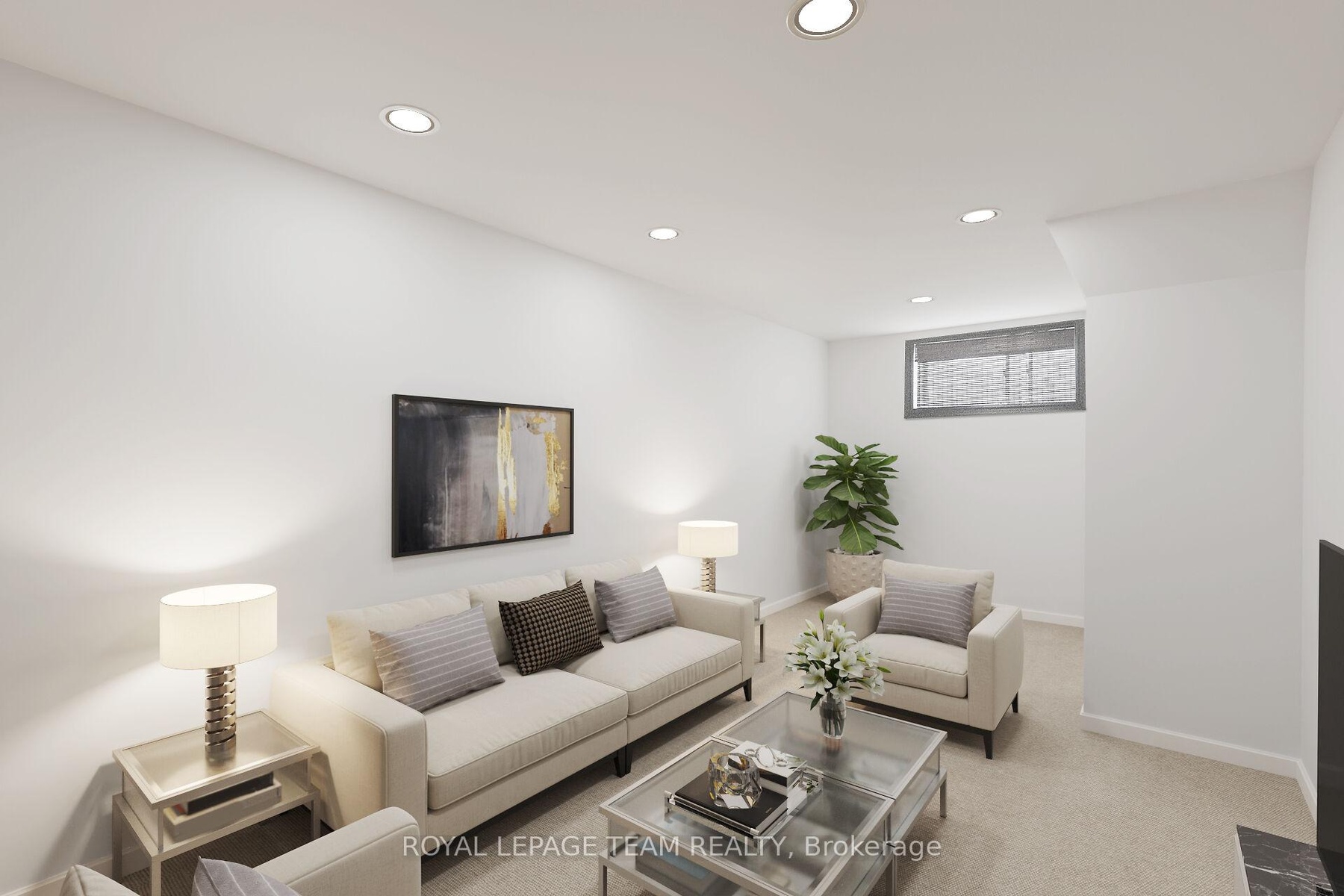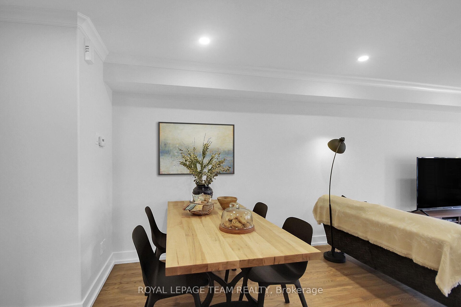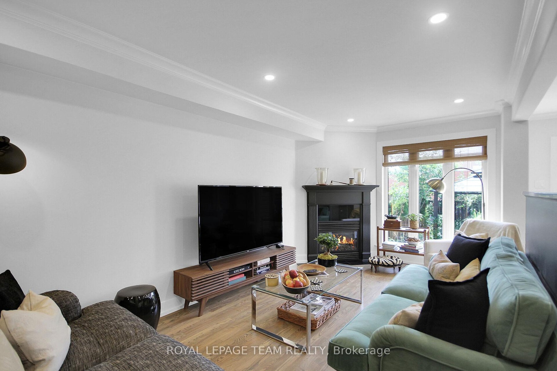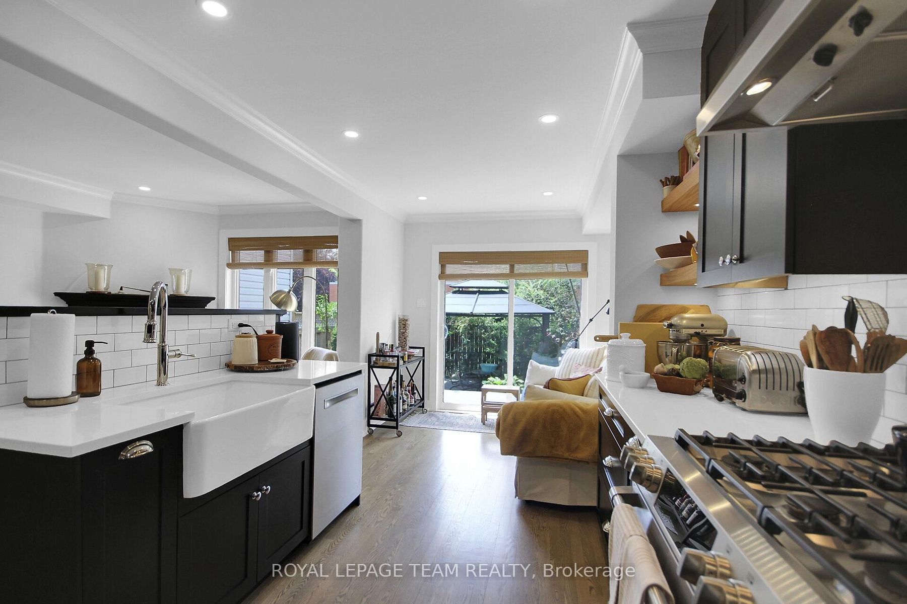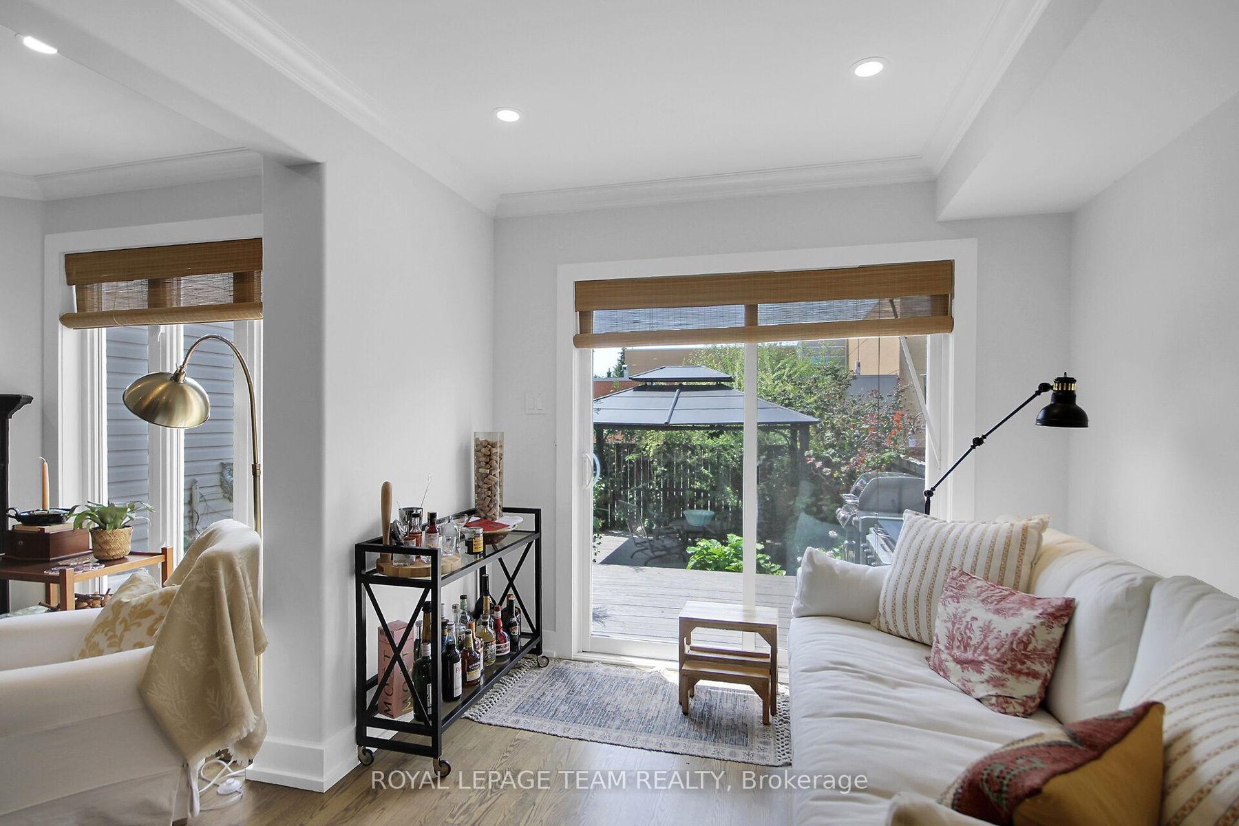 Gorgeous townhome in Stittsville. This beautifully updated family home is located on a private crescent, near schools, parks, transit and shopping. The backyard is a tranquil oasis with a large deck, an oversize gazebo and amazing plants. There are no overlooking neighbours to the rear as this unit backs on to the quiet side of an elementary school. The ground floor is an expansive open plan and has hardwood and pot lights throughout. Entering the contemporary tiled foyer from the garage or front porch, one passes a convenient powder room into a sweeping living/dining room with gas fireplace and tall windows. This is paralleled by the show-stopping modern kitchen with dramatic custom cabinets, white quartz counters, a coveted farmhouse sink and high-end appliances. The bright adjoining breakfast/sitting area leads to the deck through tall patio doors. Upstairs features three generous bedrooms. The principal bedroom overlooks the private back yard. It boasts a walk-in closet and updated ensuite with separate shower and inviting soaking tub. The other two bright bedrooms at the front of the house share a family bath. The washer and dryer are conveniently placed on this level. The basement has been furnished with another complete modern bathroom. There is a large family room and two generous storage areas. This home has all that a family needs.