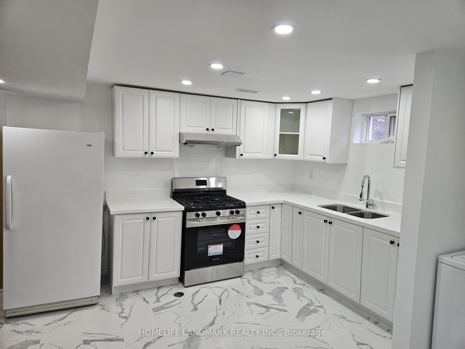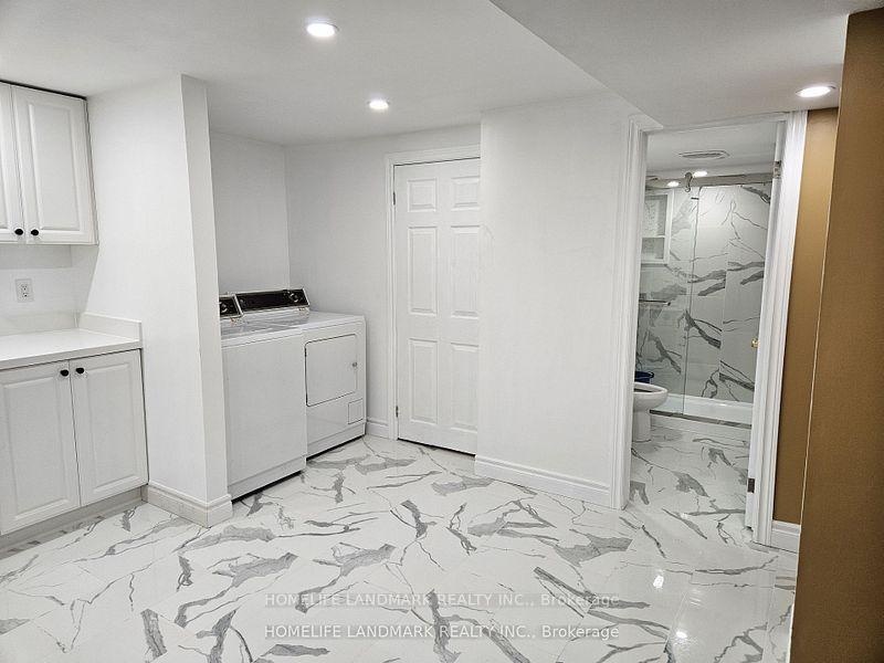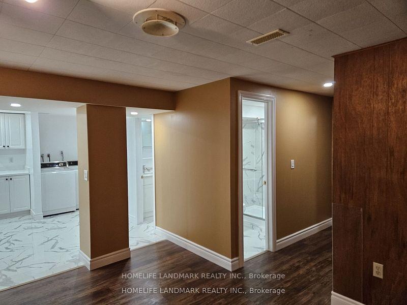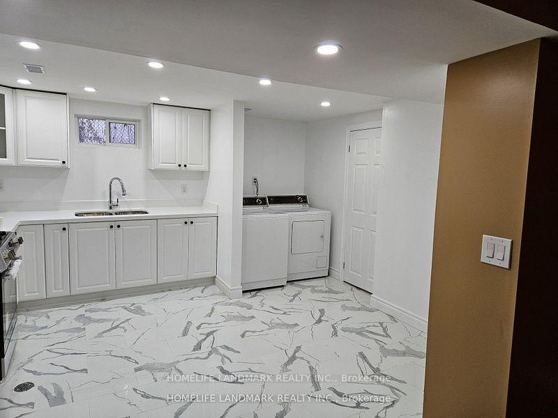 Welcome to this spacious 4-bedroom basement unit with a separate entrance in a detached bungalow. This bright, open-concept space features a large living and kitchen area with two full washrooms. Enjoy modern upgrades throughout, including vinyl and porcelain flooring, a newly renovated kitchen with quartz countertops, pot lights, and elegant bathrooms. Step outside to a private backyard-perfect for summer gatherings and BBQs! One parking space is included. Conveniently located within walking distance to Kennedy Subway and GO Station, the new LRT line, schools, shopping, places of worship, hospital, parks, and the library. Zoned for the highly-rated Lord Roberts School. Move-in ready for December 1, 2025, this home combines comfort and convenience in a desirable neighborhood. Please note: The main floor is leased separately to a family. Utilities are shared 50/50 with the main-floor tenant. Ideal for a family or two couples.