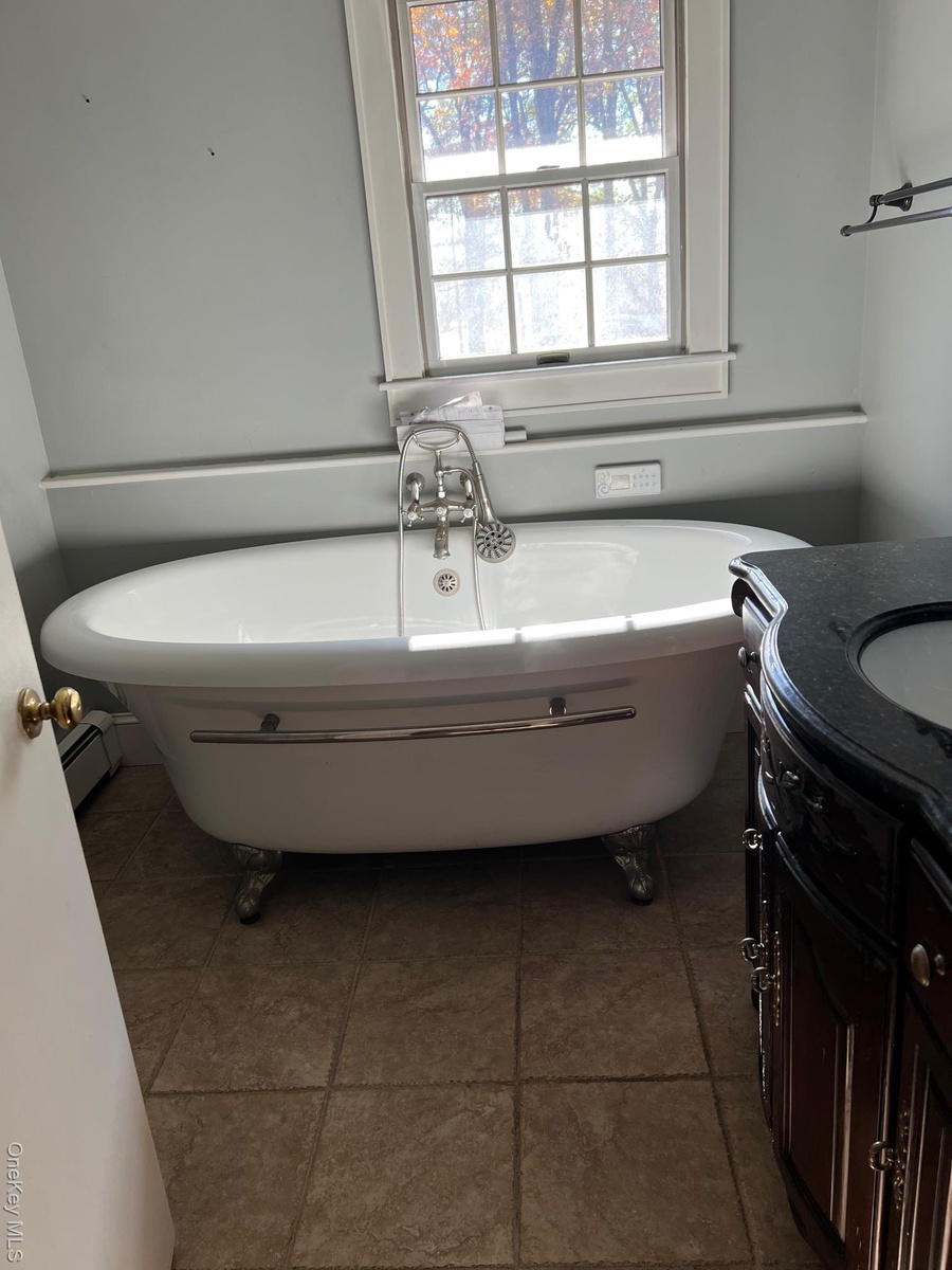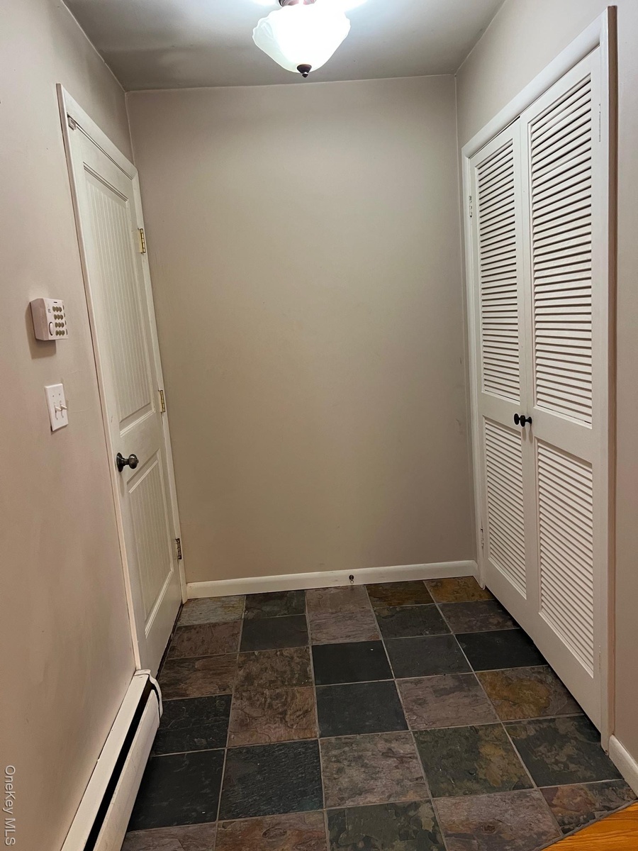 - Kitchen featuring high quality appliances, premium range hood, a baseboard radiator, and healthy amount of natural light