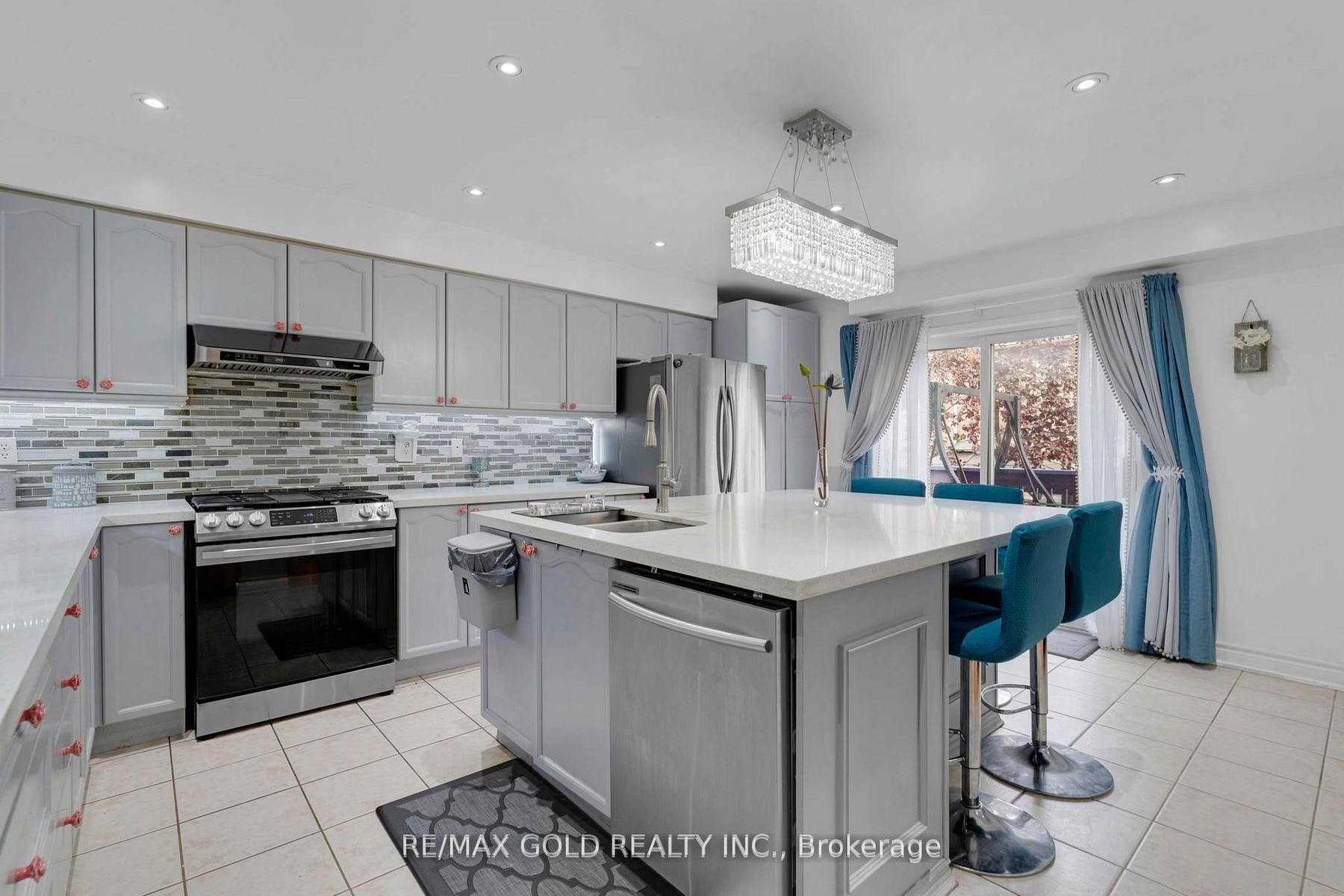 Welcome to this one-of-a-kind detached home in Fletcher's Meadow . With 4+1 bedrooms, 4 bathrooms, this property seamlessly blends comfort, style, and function. The heart of the home is a beautiful kitchen, featuring granite countertops, breakfast bar, stainless steel appliances, and ample storage - perfect for both everyday living and entertaining. The main floor also offers hardwood flooring, pot lights throughout, a spacious family room with a gas fireplace and soaring vaulted ceilings with skylights. Enjoy the convenience of main floor laundry with inside garage access .Upstairs, retreat to the primary bedroom complete with a walk-in closet and renovated ensuite, alongside Three additional spacious bedrooms sharing another updated media room at second floor .The finished basement provides even more versatility, with a large finished space with dry-bar and a 4th bedroom or flexible space for a home office or gym. Outside, the home continues to impress with recent updates: double car garage, driveway , - adding to the already beautiful curb appeal. The backyard is a private escape ideal for relaxing or entertaining. This rare offering combines thoughtful updates with timeless charm in a family-friendly neighborhood close to parks, schools, and amenities.