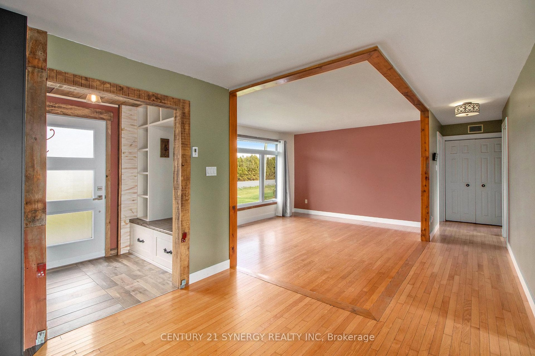 1 ACRE LOT Country Charm Meets In-Town Convenience! Discover the perfect blend of rural tranquility and urban accessibility with this beautifully maintained 3-bedroom, 2-bathroom detached bungalow, nestled on a spacious 1-acre lot in the heart of Casselman. Backing onto open farmland with no rear neighbours, this property offers breathtaking country views and a sense of privacy that's hard to find. Inside, the home features a functional main floor layout with a spacious primary bedroom and two additional well-sized rooms with custom built in closets, perfect for family, guests, or a home office. Hardwood and tile floors run throughout the main level, adding a clean, elegant touch. The heart of the home is the stylishly renovated kitchen (2018), complete with warm butcher block countertops and ample custom cabinetry ideal for home chefs and entertainers alike. A bright, updated 4-piece bathroom (2010) serves the main floor, while the fully finished basement includes a second large 4-piece bathroom with a double vanity, ideal for guests or a growing family. A cozy woodstove (2016) brings warmth and character to the lower level. Step outside to a beautifully landscaped backyard oasis featuring a 14 X 25 rough cut deck off the dining room, raised firepit, a productive vegetable garden, and plenty of open space to roam or relax. The oversized single garage (14' x 26') offers radiant floor heating & is perfect for parking, storage, or use as a workshop. Additional highlights Detached double door storage shed and the opportunity to build your own shop, ready for hydro with 2 4" conduit from the home to the shop area! Peaceful country living with easy access to local amenities, schools, and transportation. Don't miss this rare opportunity to own a slice of countryside comfort with all the modern features you need!