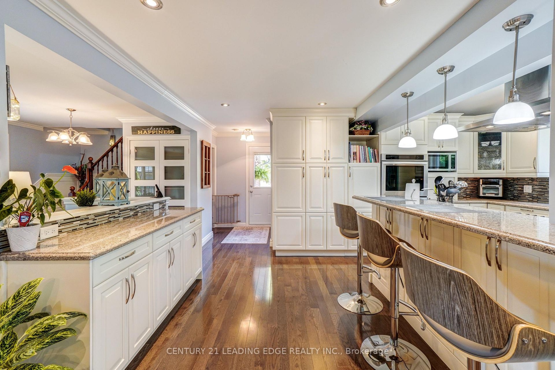 Welcome to your perfect family home in Pickering Village! This home is situated on a family safe court location with a premium lot with beautifully landscaped front and back patios and yards with in ground sprinkler systems (2017) This renovated four-bedroom, two-and-a-half-bath residence combines elegance and comfort. The home has had a main floor and basement foundation addition that gives you extra living space. Step inside to find beautiful hardwood floors that flow throughout the spacious open-concept living areas with a large front bay window. The large custom gourmet kitchen features sleek granite countertops, multiple pot lights and top-of-the-line built in stainless steel appliances, perfect for both everyday living and entertaining guests. Large windows fill the home with natural light, creating a warm and inviting atmosphere in every room. Upstairs, the generous 4 bedrooms provide plenty of space. Finished basement recently renovated (2015) with gas fireplace, wet bar with wine cooler and bar fridge, work-out area and a 3 piece bathroom. Outside, enjoy a landscaped backyard with multiple patio areas designed for both leisure and entertaining, ideal for family gatherings, summer barbecues, or simply unwinding after a long day. Large garden shed for storage or workshop with full electrical power. Walking distance to public and high schools & parks. With its thoughtful design and modern finishes, this home is move-in ready!