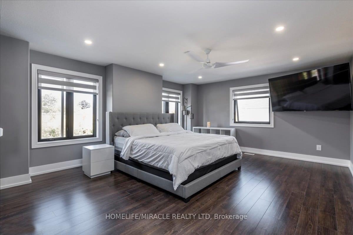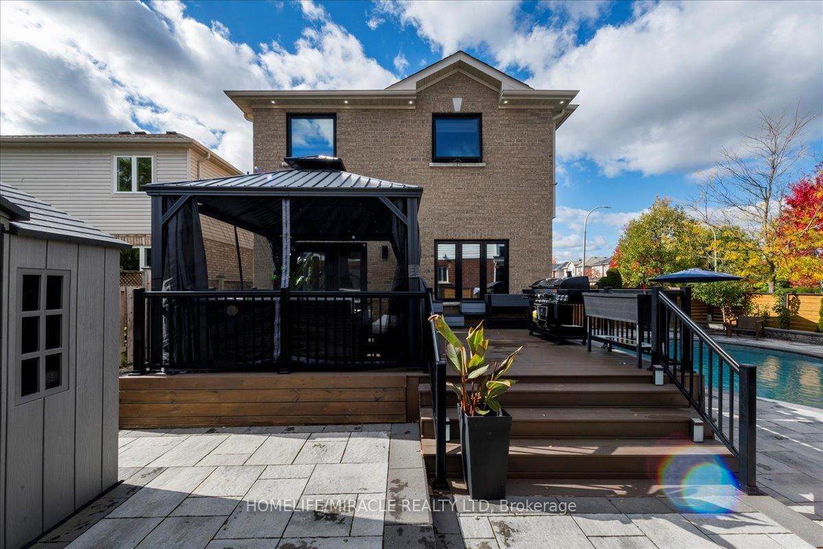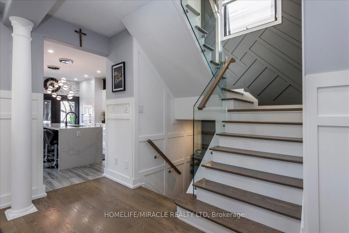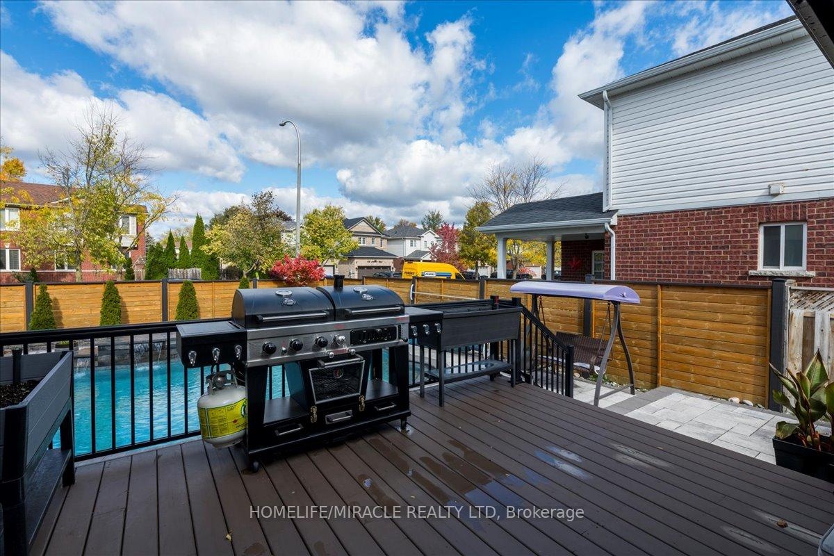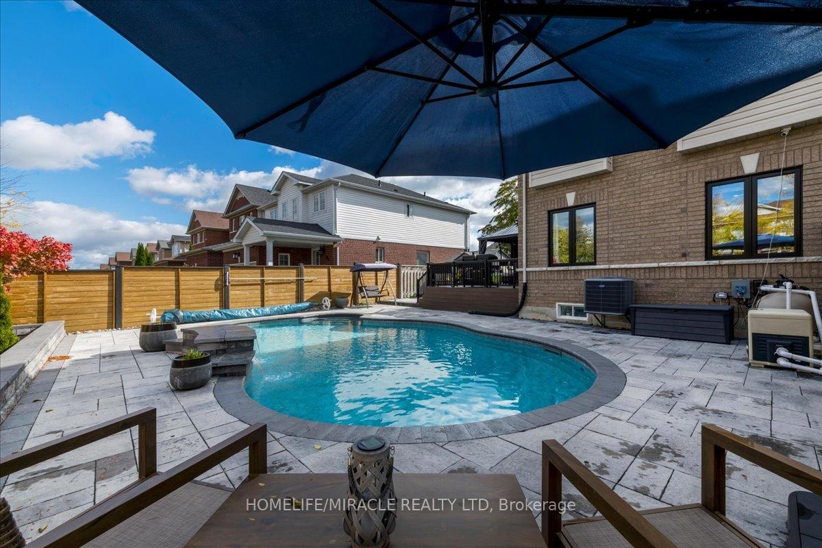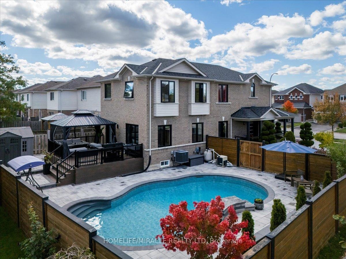 Immaculate home on a premium large corner lot featuring over $350,000 in upgrades. This stunning property offers 4 bedrooms and 3 bathrooms, plus a finished basement apartment with a separate entrance, bedroom, full kitchen, living area, and full bath. The main floor features open concept living with elegant finishes, hardwood flooring, and a chef's dream kitchen with an oversized island, extended cabinets, and high-end Samsung appliances throughout. An oak staircase with a glass railing leads to a beautiful second floor offering 4 large bedrooms. The primary suite includes a spacious walk-in closet with custom organizers and a spa-like ensuite. The primary bedroom overlooks the pool and fountain, creating a peaceful and inviting morning view. Exterior highlights include a double car garage, stamped concrete driveway and walkways, parking for up to 6 vehicles, and professional landscaping throughout. The backyard is an entertainer's dream, complete with interlock stone, a wood patio, and a large pool with a beautiful fountain. Located in a triple A location close to schools, retail shopping centres, the Honda plant, and more. This breathtaking home offers luxury, comfort, and exceptional curb appeal inside and out.