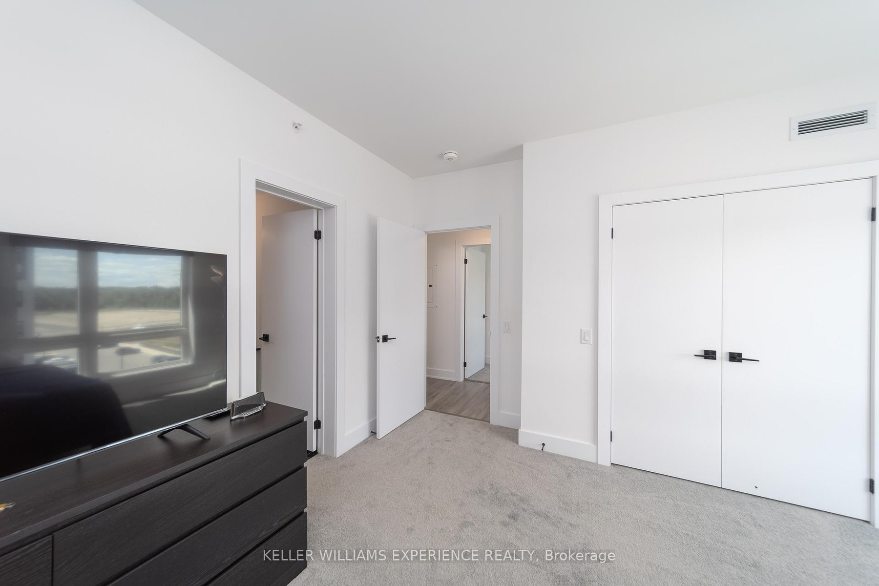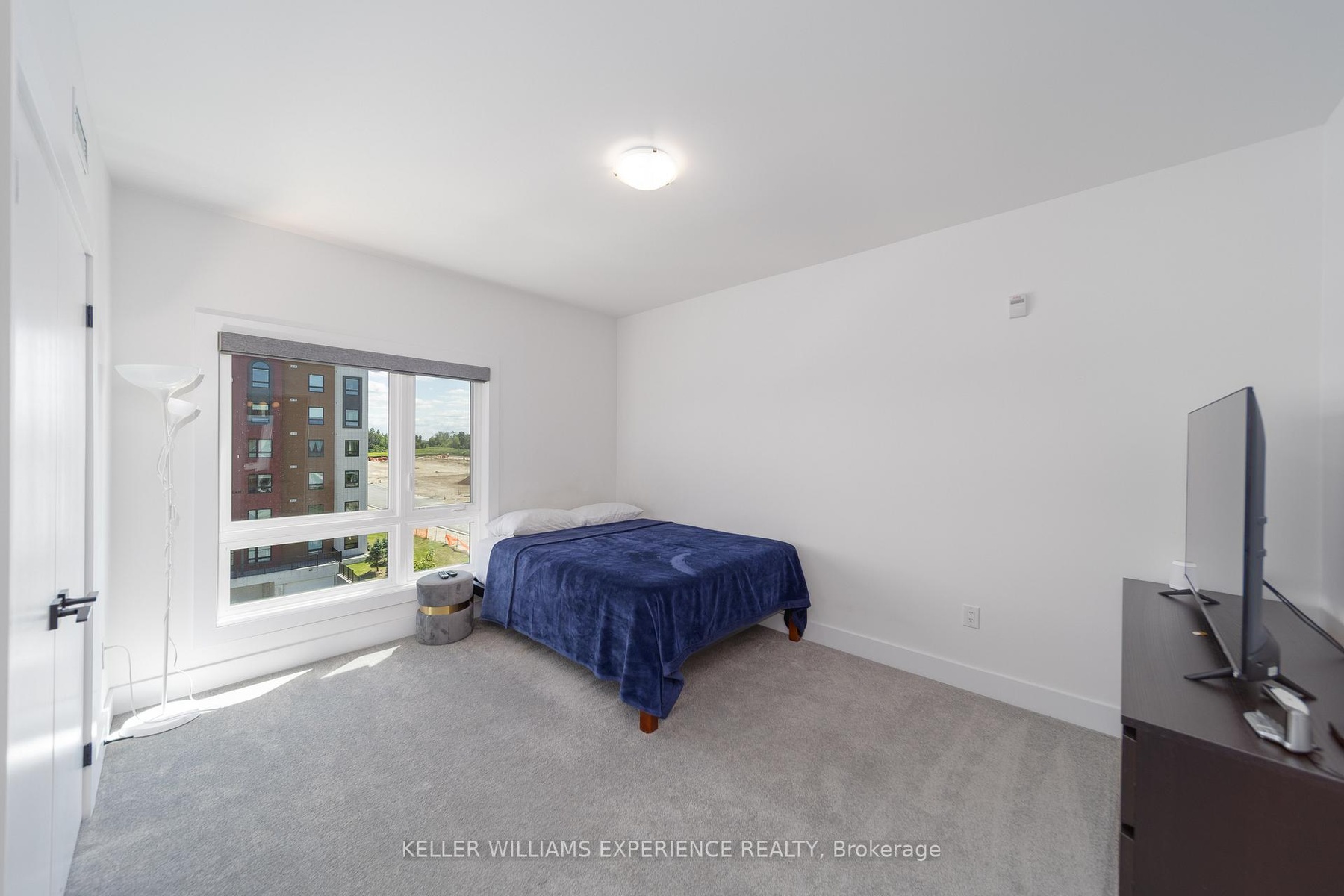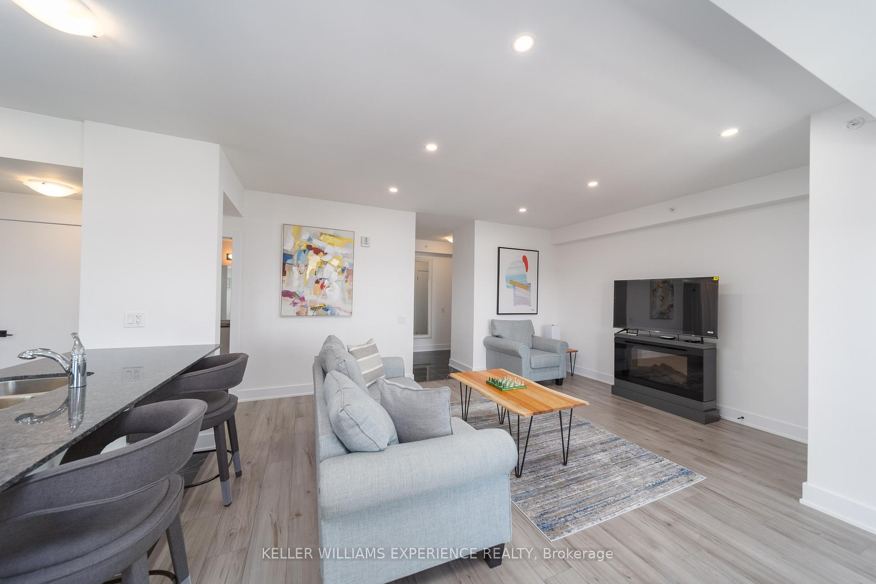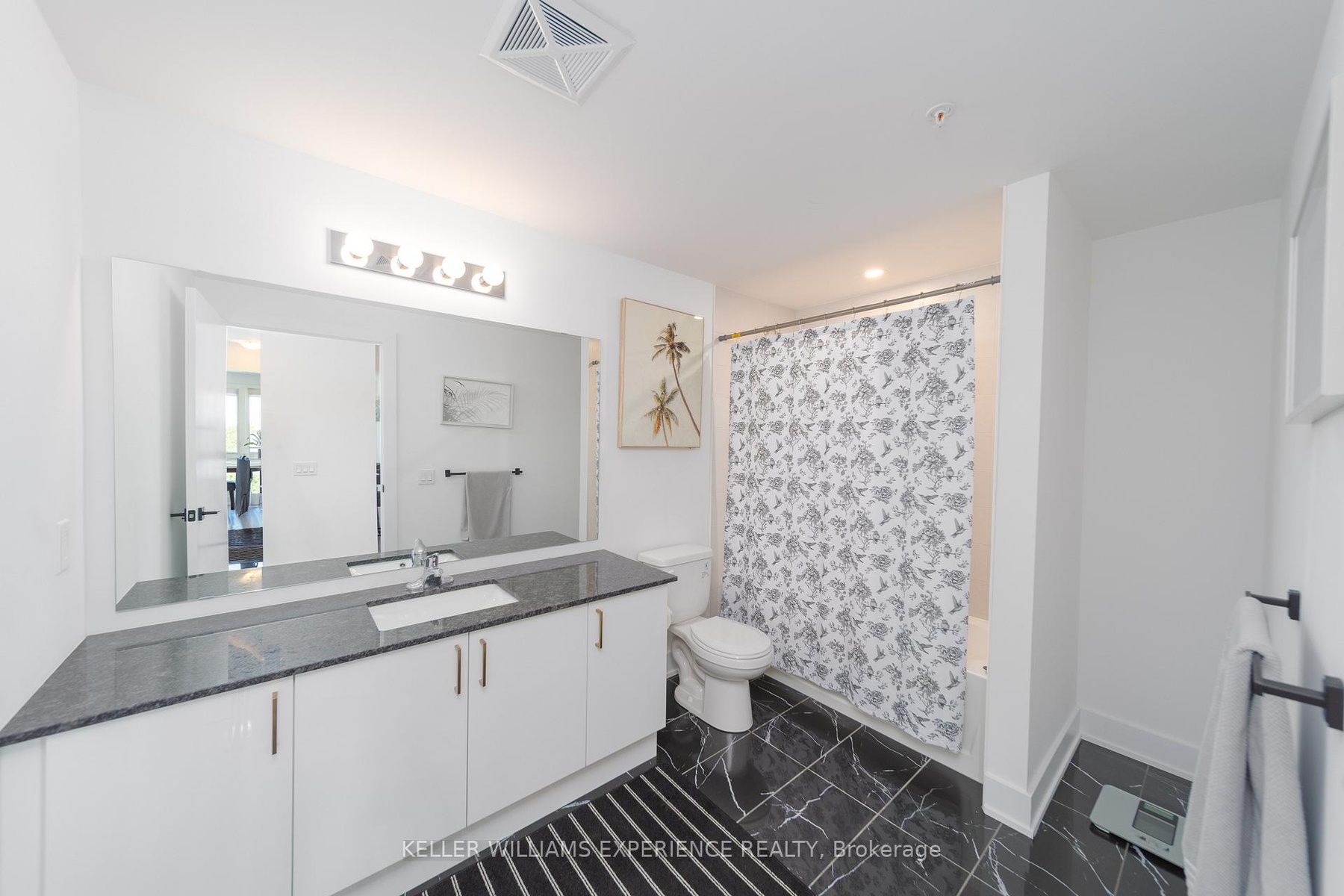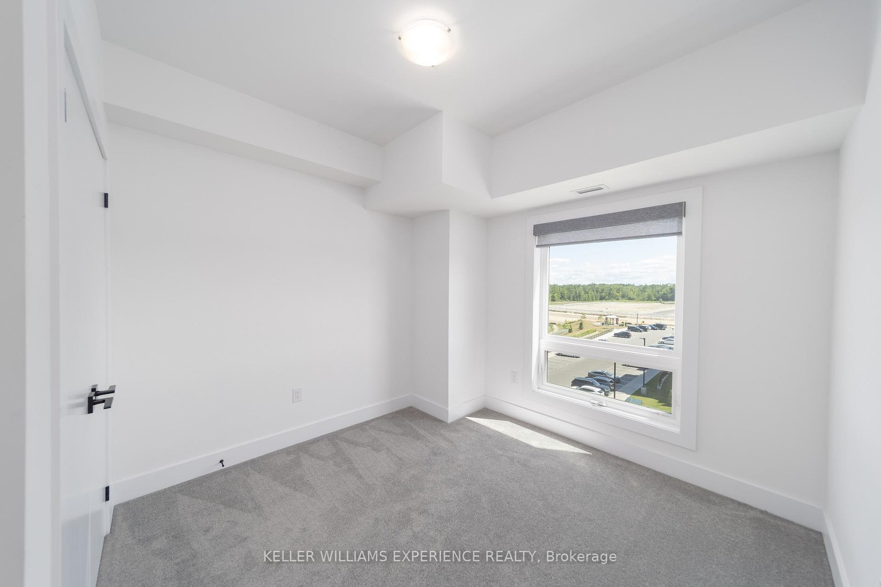 This stunning 3-bedroom, 2-bathroom corner unit offers 1,265 sq. ft. of modern living, with wraparound corner windows and a balcony facing southeast perfect for enjoying breathtaking sunrises every morning. Featuring $33,000 in upgrades, the home showcases an upgraded kitchen with stainless-steel appliances, under-cabinet lighting, pot lights, granite countertops, and a stylish tile backsplash. Porcelain tile flooring flows through the foyer, kitchen, and bathrooms, while the spacious living room opens to a balcony equipped with a gas barbeque hookup and overlooks lush green space. The primary suite boasts a walk-in closet and a private ensuite, complemented by custom blinds throughout. Accessible features, including wider door frames and hallways as well as accessible light switches, add both comfort and convenience. Ideally located just minutes from the South Barrie GO Station, restaurants, shopping, and more, this nearly new condo is still covered under Tarion Warranty