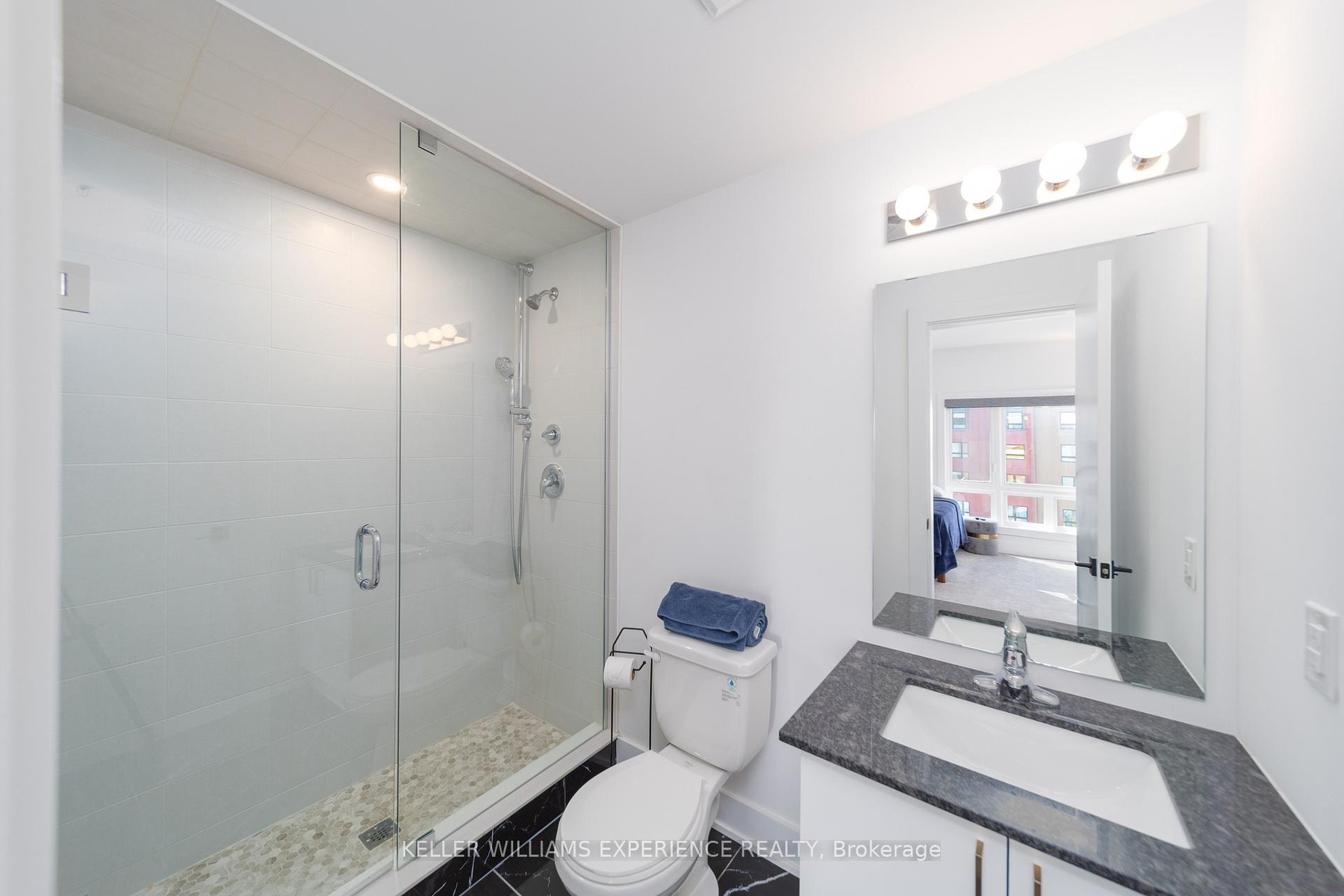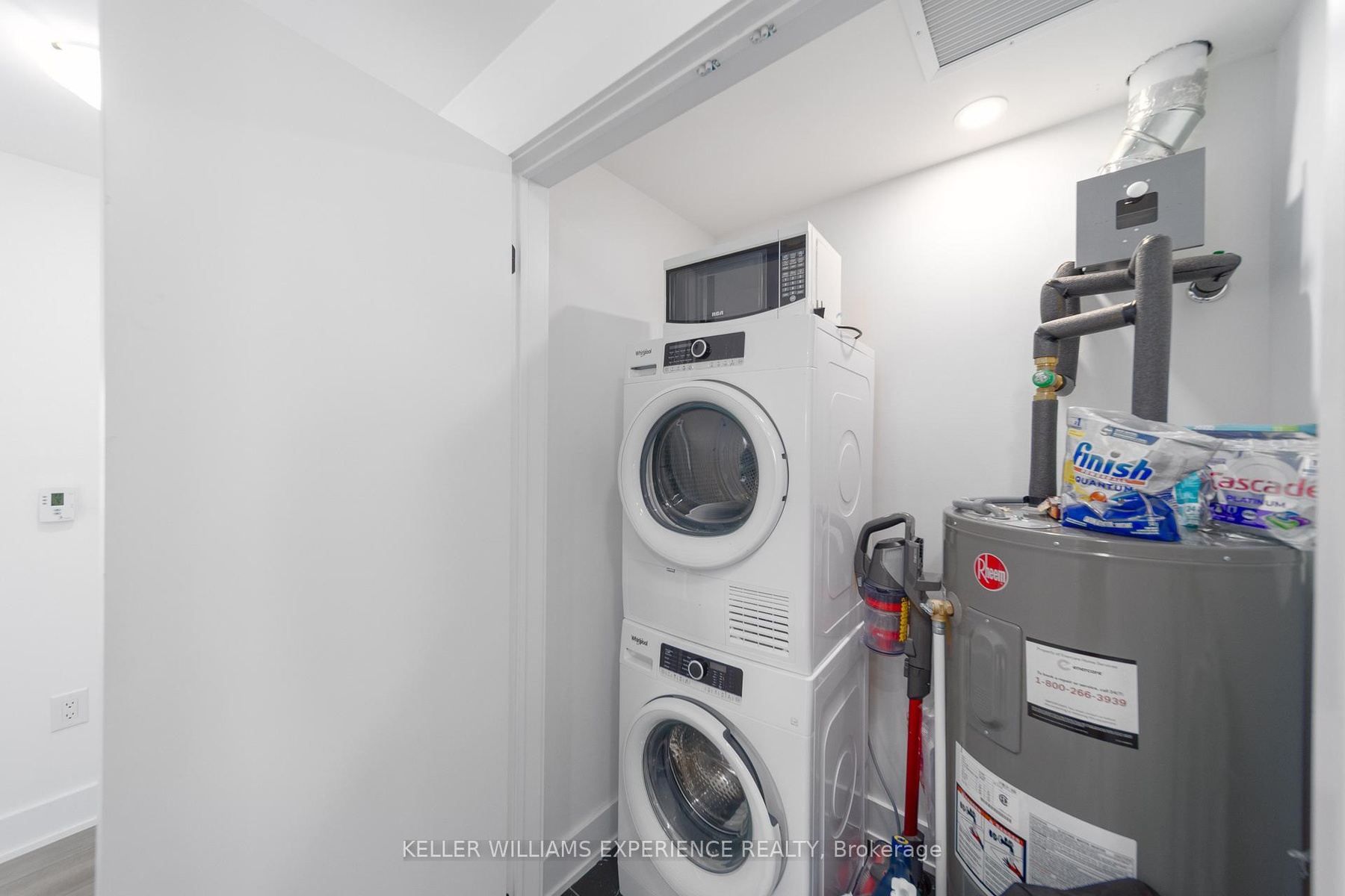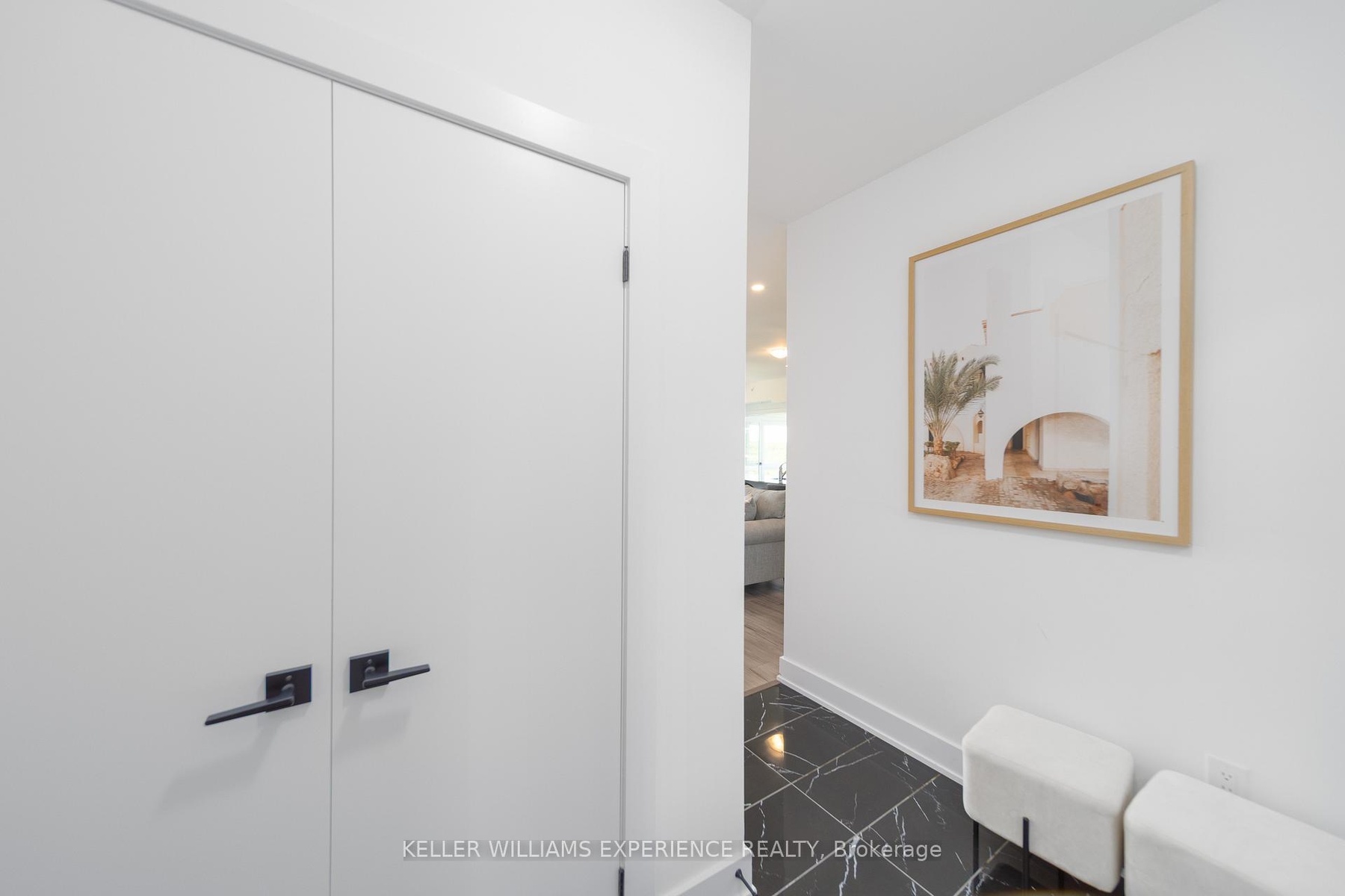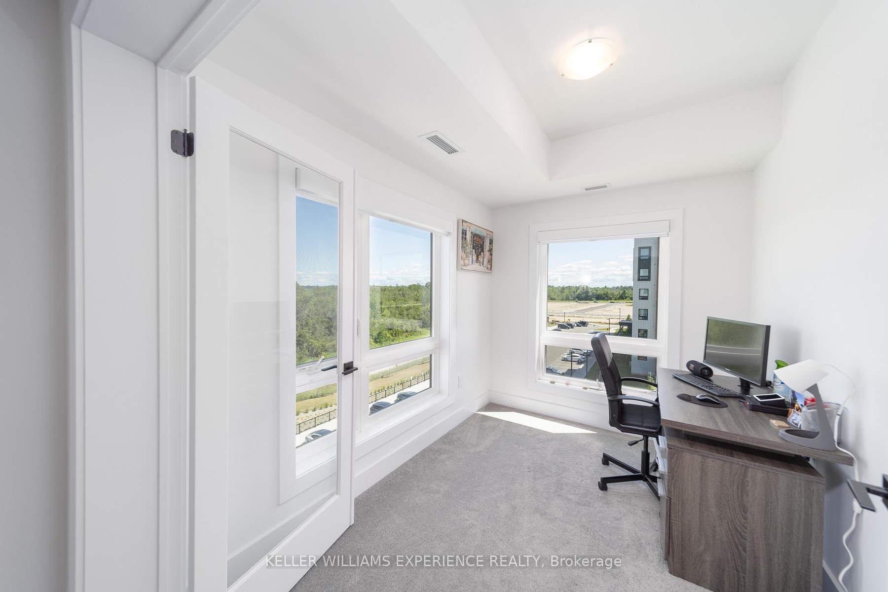 This stunning 3-bedroom, 2-bathroom corner unit offers 1,265 sq. ft. of modern living, with wraparound corner windows and a balcony facing southeast perfect for enjoying breathtaking sunrises every morning. Featuring $33,000 in upgrades, the home showcases an upgraded kitchen with stainless-steel appliances, under-cabinet lighting, pot lights, granite countertops, and a stylish tile backsplash. Porcelain tile flooring flows through the foyer, kitchen, and bathrooms, while the spacious living room opens to a balcony equipped with a gas barbeque hookup and overlooks lush green space. The primary suite boasts a walk-in closet and a private ensuite, complemented by custom blinds throughout. Accessible features, including wider door frames and hallways as well as accessible light switches, add both comfort and convenience. Ideally located just minutes from the South Barrie GO Station, restaurants, shopping, and more, this nearly new condo is still covered under Tarion Warranty