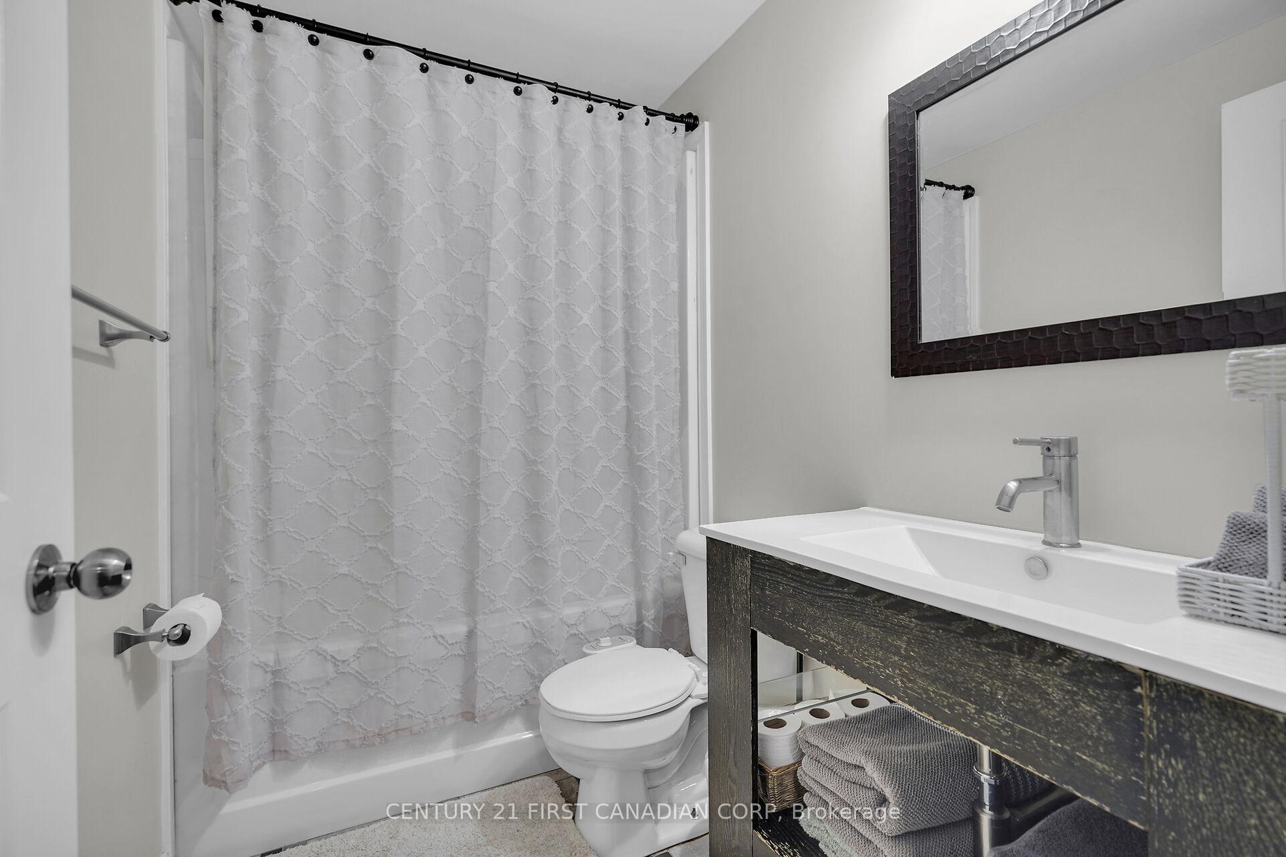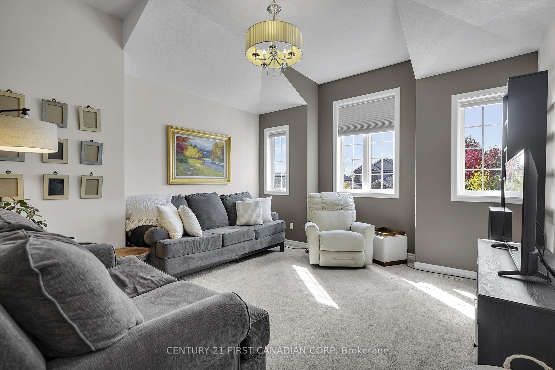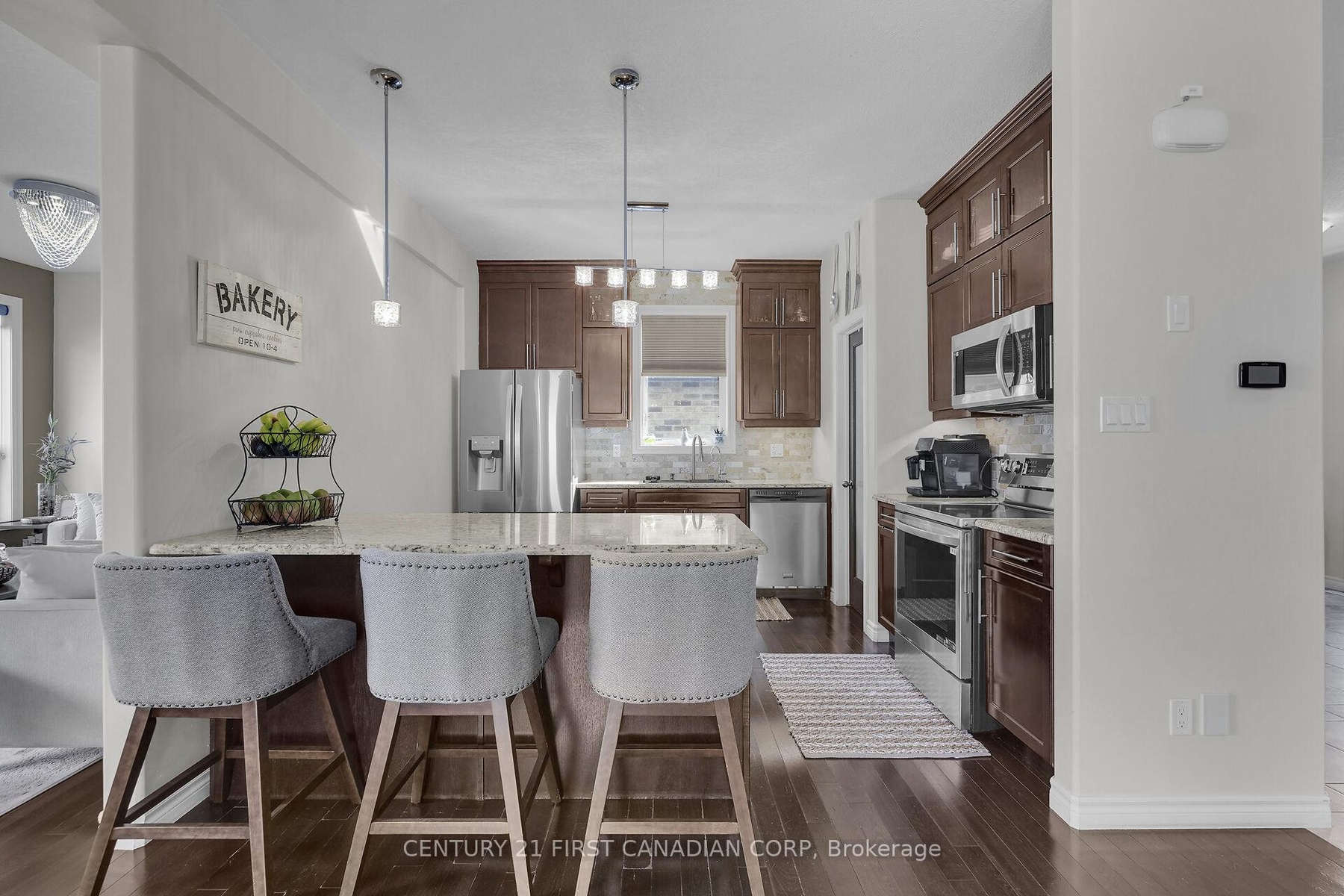Welcome to this beautiful family home in the highly sought-after Northwest London Neighbourhood. Offering approximately 2,000 Sq ft above grade plus a finished basement, this well maintained home was originally a model home and showcases quality finishes throughout. The open concept main floor features a spacious living room with hard wood flooring, a gas fireplace and a bright dining room. The kitchen boasts granite countertops, backsplash, a functional pantry and ample cabinetry. Upstairs, you will find a sun-filled family room, ideal for relaxing or as a versatile additional living space. Just a few steps up are three comfortable bedrooms, including a primary suite with a 5- piece ensuite and a walk-in closet with built-ins. A convenient second level laundry room completes this floor. The finished basement expands your living space with a recreation room, two additional bedrooms and a 3-piece bathroom, perfect for guests or teens. Step outside to enjoy the oversized high deck overlooking a beautifully recently landscaped backyard (2025) ideal for outdoor gatherings. Recent updates include Three new split units for added cooling and heating comfort in the family room, primary bedroom and the third bedroom (2025). The concrete drive way has been extended to become a three car parking space (2019). New Fridge with warranty (2023). New Stove with warranty (2025). New gas line for an option of a Gas Stove (2025). New Kitchen sink (2024). Carpet in the second level was replaced in (2022). New Stucco exterior (2024).This home is ideally located close to schools, parks, restaurants and shopping centers. Don't miss your chance to view this exceptional property that is the perfect place to call home.