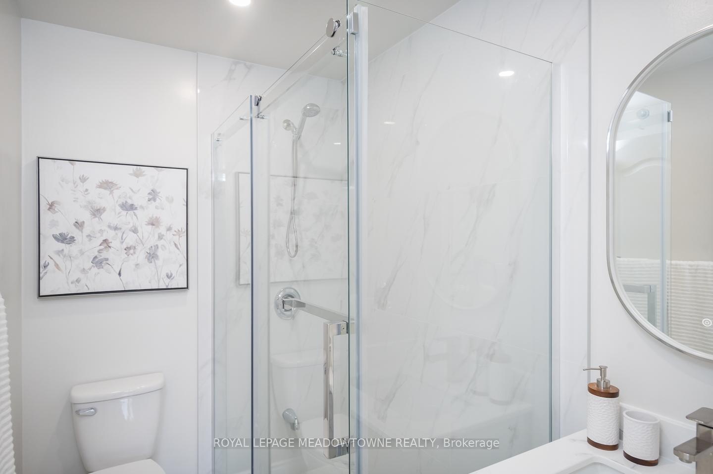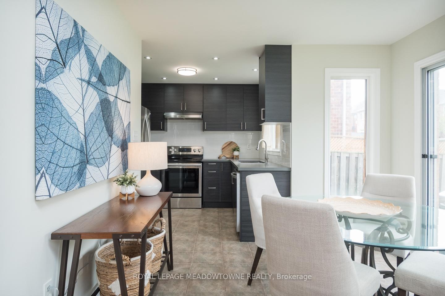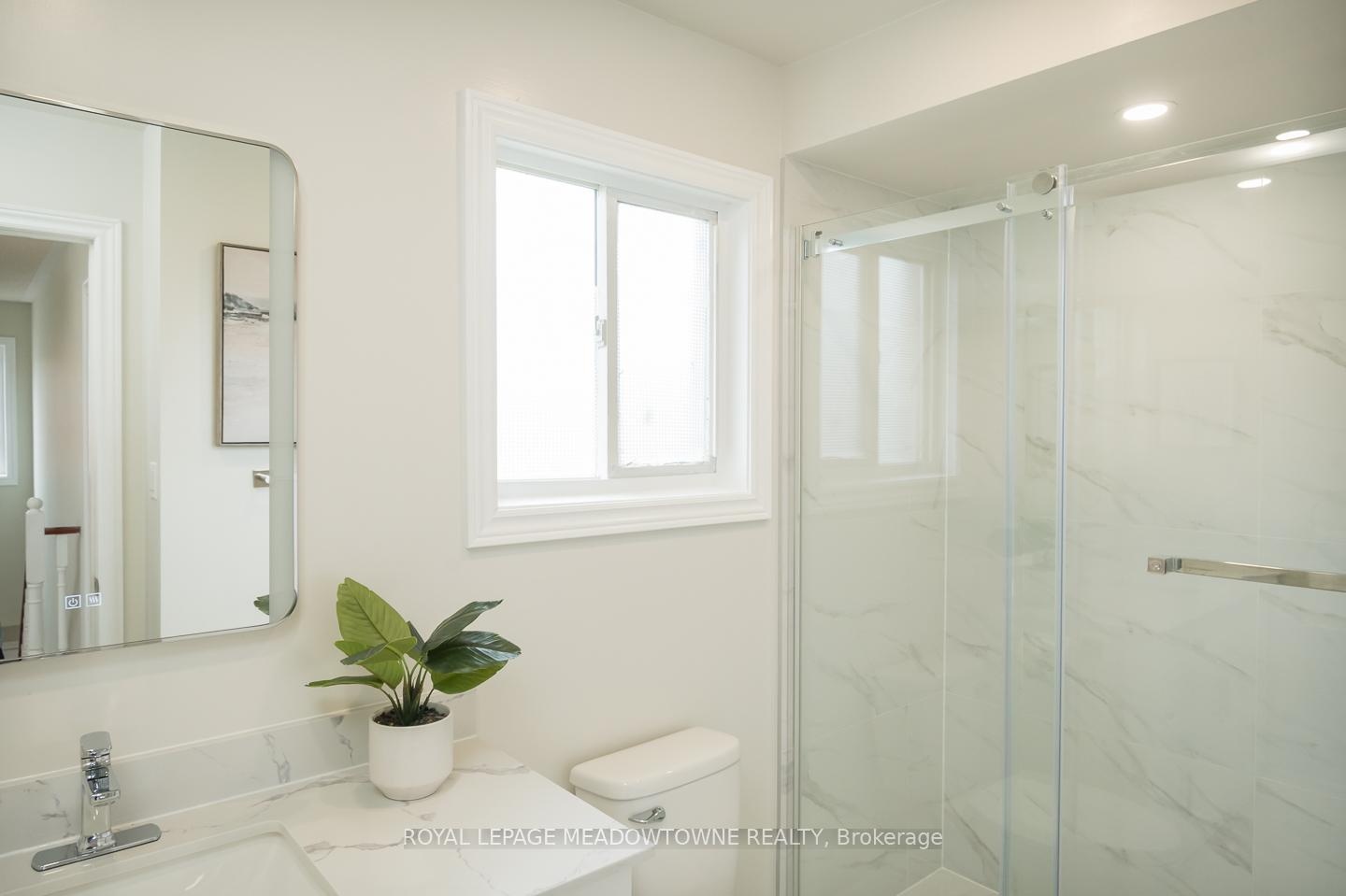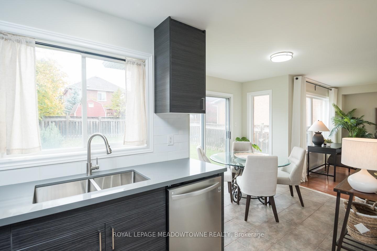 Welcome to this beautifully updated 3-bedroom, 4-bathroom home in Milton's highly sought-after Dempsey neighbourhood-a perfect blend of comfort, style, and convenience. Ideally located within walking distance to parks, schools, and amenities, and offering quick access to the 401, 407, and GO Station, this home is a commuter's dream. Inside, you'll find a bright, recently renovated eat-in kitchen featuring quartz countertops, tile backsplash, and stainless steel appliances, with direct access to a fully fenced, spacious backyard-perfect for relaxing or entertaining. The open-concept living and dining area showcases hardwood flooring, upgraded lighting, a gas fireplace, and a neutral palette throughout. Upstairs offers three generous bedrooms, including a primary suite with a brand-new 3pc ensuite (2025), and a large updated main bath (2025). The professionally painted interior (2025) and finished basement (2025) add even more value, with an open rec room, full 3pc bath (2025), laundry, and sump pump. With parking for three and interior garage access, this move-in-ready home truly has it all. Roof 2020, Furnace 2020