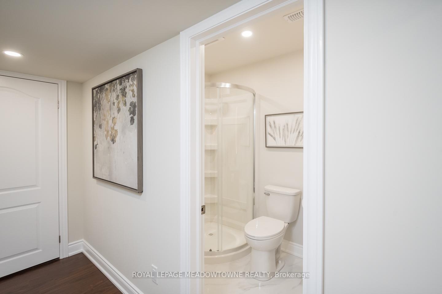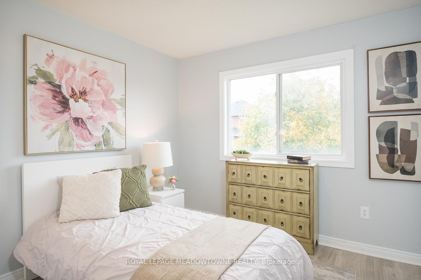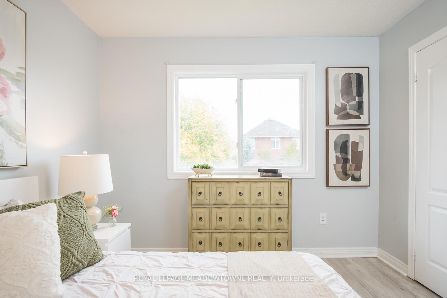Welcome to this beautifully updated 3-bedroom, 4-bathroom home in Milton's highly sought-after Dempsey neighbourhood-a perfect blend of comfort, style, and convenience. Ideally located within walking distance to parks, schools, and amenities, and offering quick access to the 401, 407, and GO Station, this home is a commuter's dream. Inside, you'll find a bright, recently renovated eat-in kitchen featuring quartz countertops, tile backsplash, and stainless steel appliances, with direct access to a fully fenced, spacious backyard-perfect for relaxing or entertaining. The open-concept living and dining area showcases hardwood flooring, upgraded lighting, a gas fireplace, and a neutral palette throughout. Upstairs offers three generous bedrooms, including a primary suite with a brand-new 3pc ensuite (2025), and a large updated main bath (2025). The professionally painted interior (2025) and finished basement (2025) add even more value, with an open rec room, full 3pc bath (2025), laundry, and sump pump. With parking for three and interior garage access, this move-in-ready home truly has it all. Roof 2020, Furnace 2020