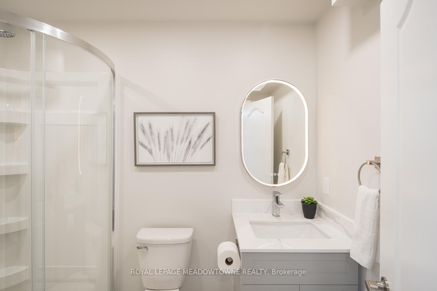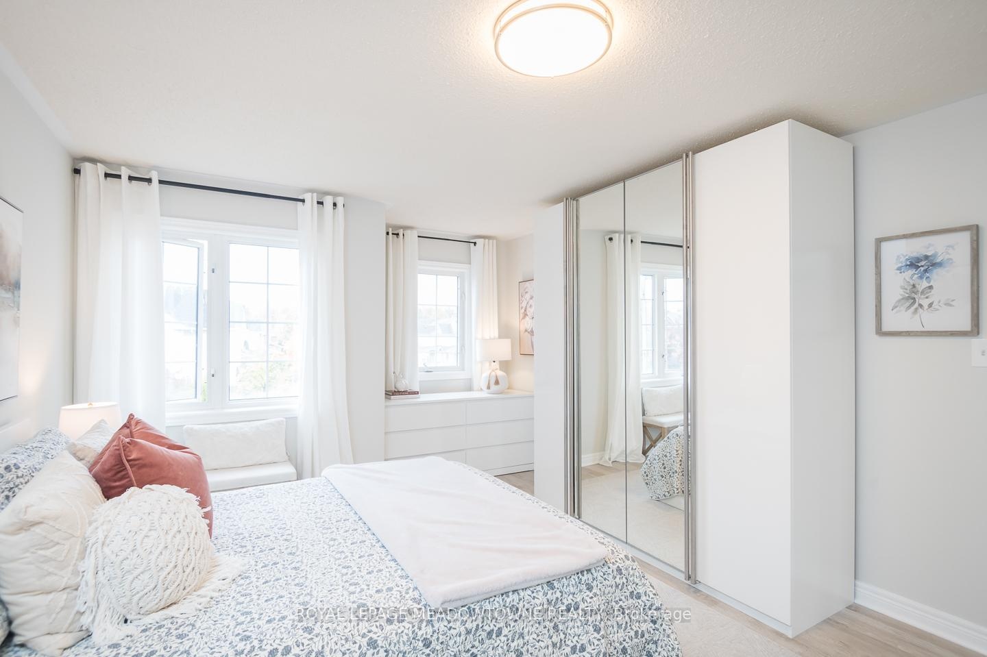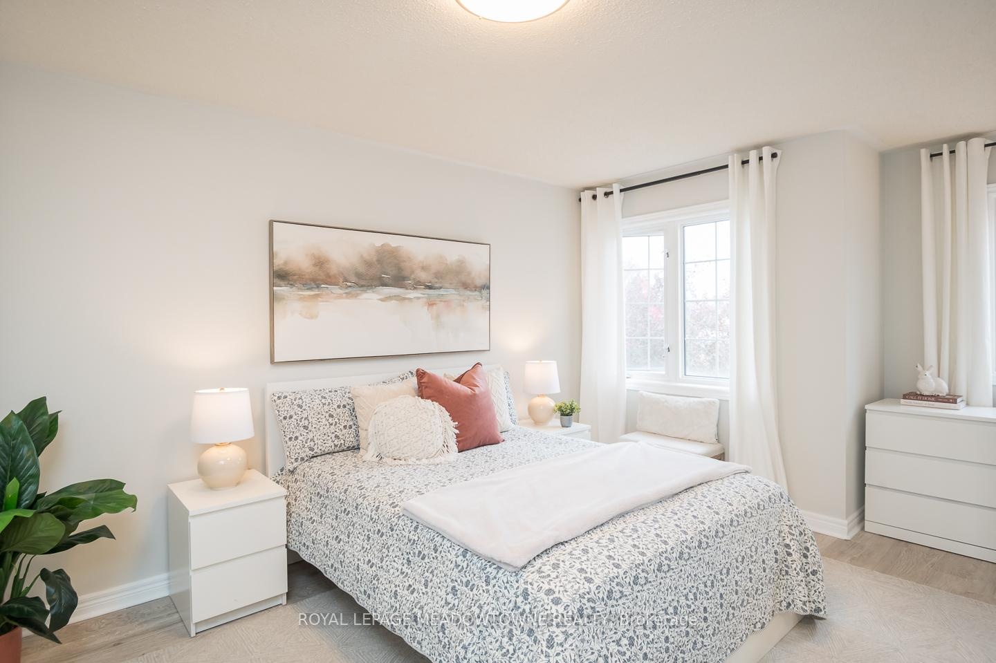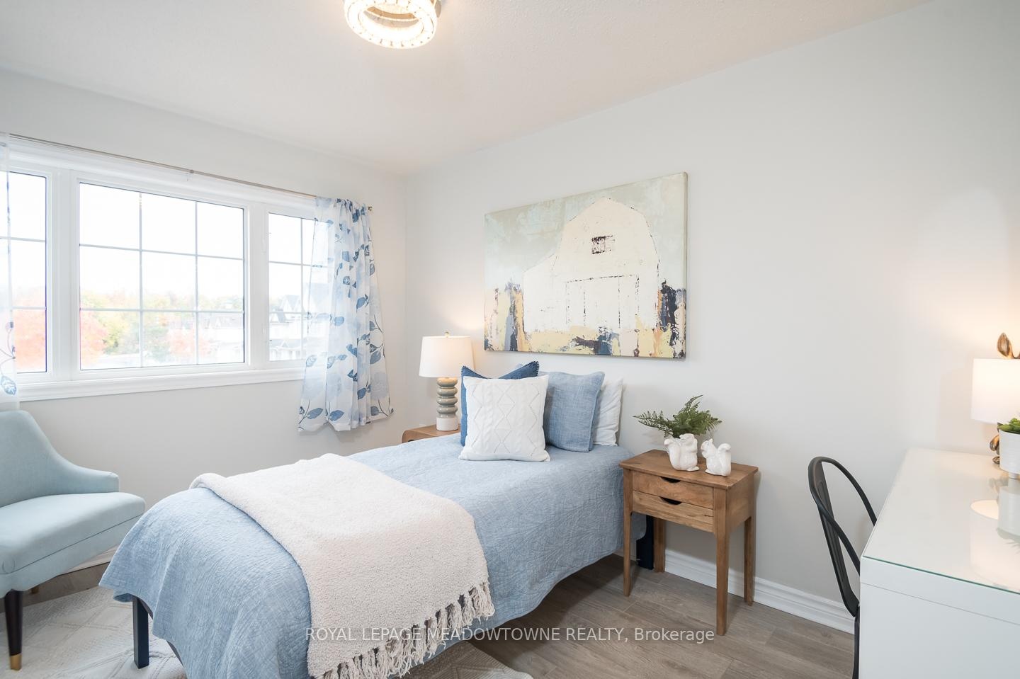 Welcome to this beautifully updated 3-bedroom, 4-bathroom home in Milton's highly sought-after Dempsey neighbourhood-a perfect blend of comfort, style, and convenience. Ideally located within walking distance to parks, schools, and amenities, and offering quick access to the 401, 407, and GO Station, this home is a commuter's dream. Inside, you'll find a bright, recently renovated eat-in kitchen featuring quartz countertops, tile backsplash, and stainless steel appliances, with direct access to a fully fenced, spacious backyard-perfect for relaxing or entertaining. The open-concept living and dining area showcases hardwood flooring, upgraded lighting, a gas fireplace, and a neutral palette throughout. Upstairs offers three generous bedrooms, including a primary suite with a brand-new 3pc ensuite (2025), and a large updated main bath (2025). The professionally painted interior (2025) and finished basement (2025) add even more value, with an open rec room, full 3pc bath (2025), laundry, and sump pump. With parking for three and interior garage access, this move-in-ready home truly has it all. Roof 2020, Furnace 2020