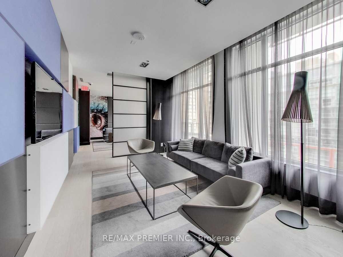 Sought-After High End Condo Building On Richmond St. This Bright and Large Spacious 2 Bdrm+ Study Unit Features: Hardwood Floors Throughout, 9' Floor To Ceilings Windows, Integrated High-End Kitchen Appliances & Caesar Stone Counters, Large Balcony & A Nice View. Amazing Location W/ Walking Distance To Shopping, Financial & Entertainment District, Ttc, Subway & Much More. Ready To Move In! Recently upgraded the entire unit with new flooring, color and lots to mention.
