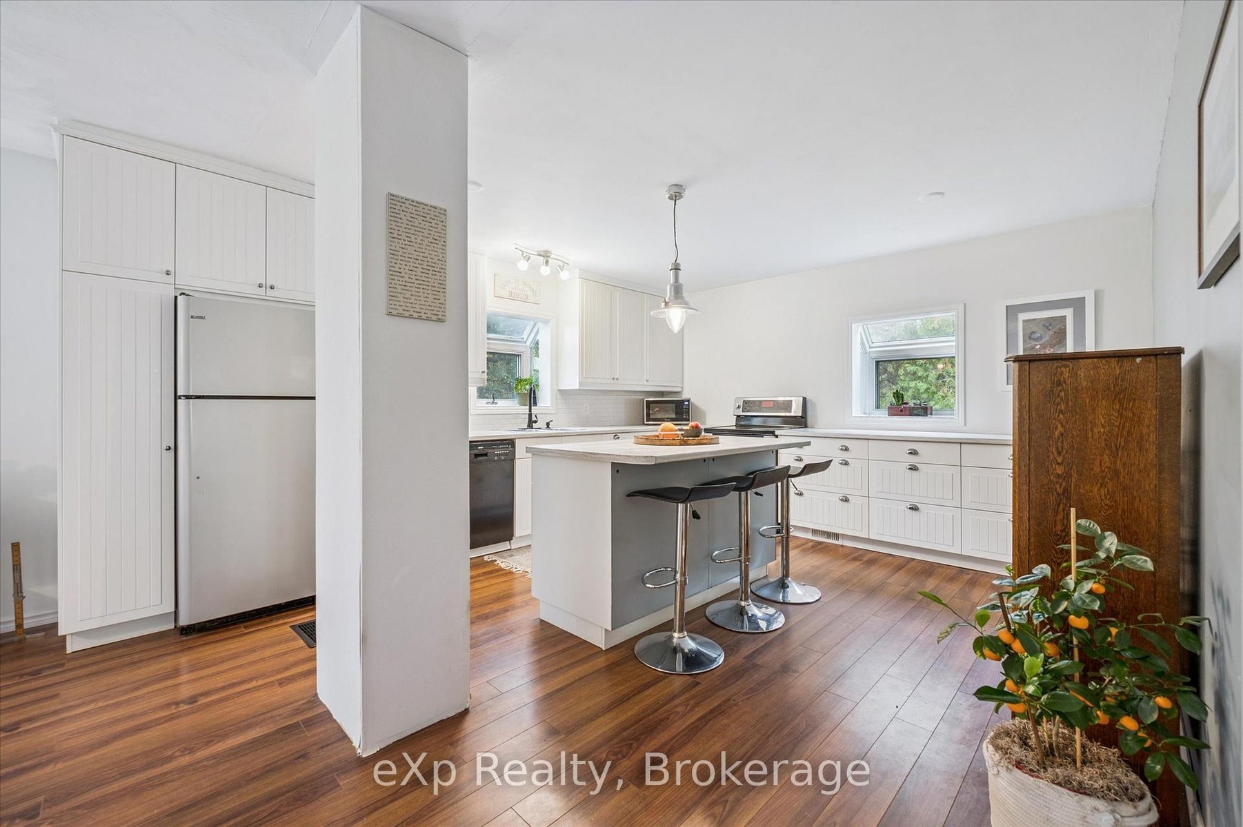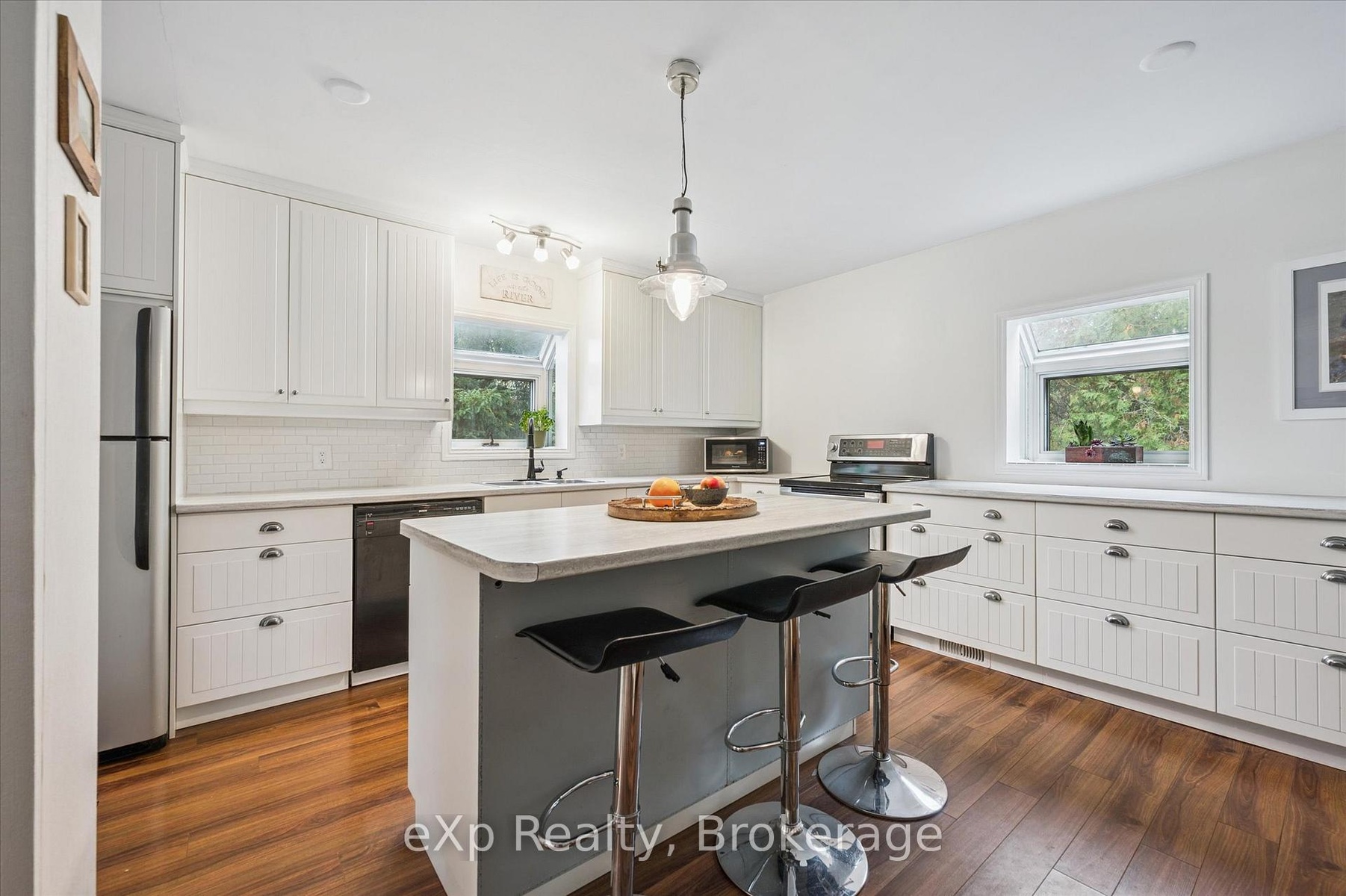 Welcome to 460 Geddes Street, Elora. Tucked along the Irvine River, this charming bungalow offers a warm, cottage-like feel just steps from the gorge and walking distance to Elora's downtown shops and restaurants. Featuring 3 spacious bedrooms up, 1 down, and 2 full baths, it's ideal for families or downsizers alike. The bright, open layout includes a large kitchen island, cozy wood-burning fireplace, and walkout to a terraced backyard overlooking the river valley. Updates include a new gas furnace and hot water tank, new garage door, and newer sliding doors.
