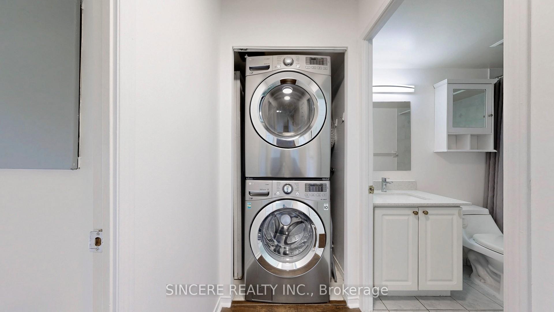 *Just Freshly Re-painted *919 Square Feet (as per MPAC Residential Floor Area Report) + 2 Split Large Bedrooms (Quiet & Enjoyment) + 2 @ 4-Pc Full Baths + 1 Parking + 1 Locker *Large Balcony + East Exposure *Direct Access To Subway *Laminate Floors Thru-Out (except Kitchen/Baths/Laundry, Ceramic Floor) *W/O To Balcony From Good Size Living Room (combined with Dining) *Famous School Zone *Visitor Parking *24 Hours Security