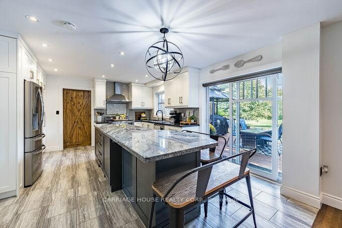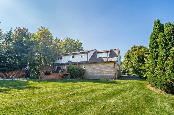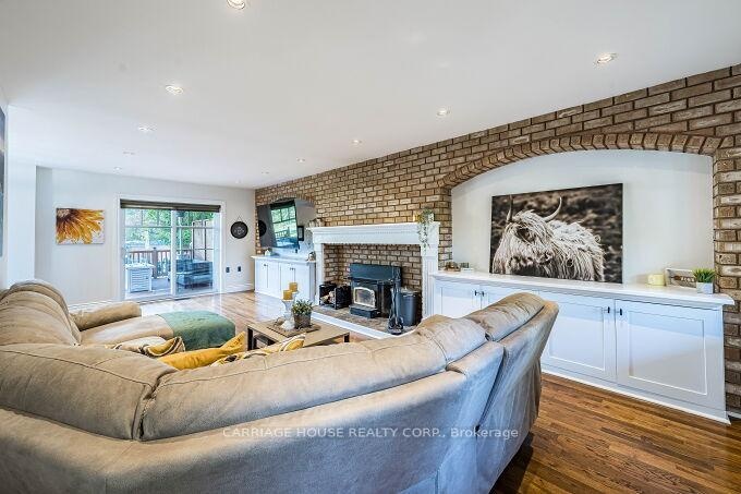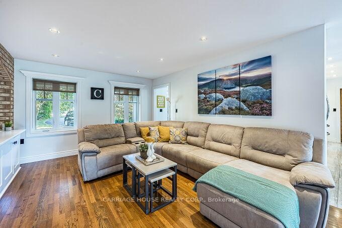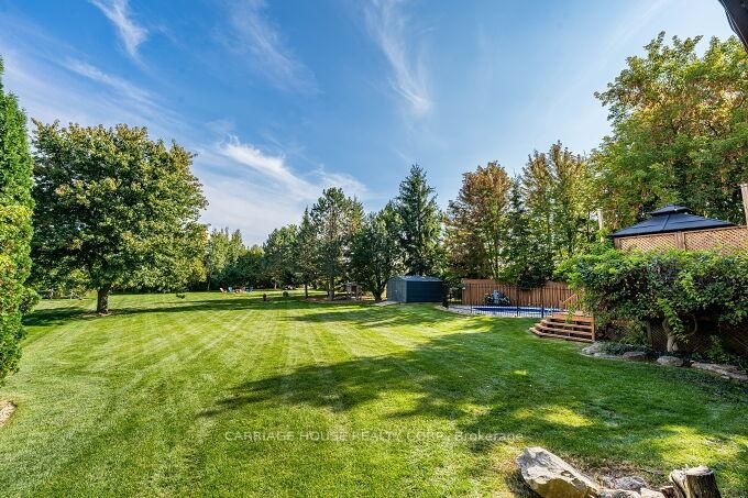 Presenting an exquisite Cape Cod-style estate, fully updated and sited on a coveted one-acre parcel just minutes from the prestigious Glen Williams Hamlet. A dramatic 40-foot covered front porch provides an elegant introduction to this home of distinguished craftsmanship and refined design. The interior showcases an open-concept gourmet kitchen with granite surfaces, expansive cabinetry, and a fluid connection to the family room-complete with a wood-burning fireplace and bespoke built-ins. Four generous bedrooms include a primary suite appointed with a four-piece ensuite, dual closets, and an electric fireplace enhancing its ambiance. The professionally finished lower level offers a substantial recreation zone ideal for high-end entertaining. Externally, the exceptional grounds feature a 30'12' deck, an inground pool, a dedicated dog run, and a sculpted fire-pit environment. A seamless fusion of timeless architecture and high-spec upgrades (EcoFlow septic system included) positions this property at the pinnacle of luxury family living.