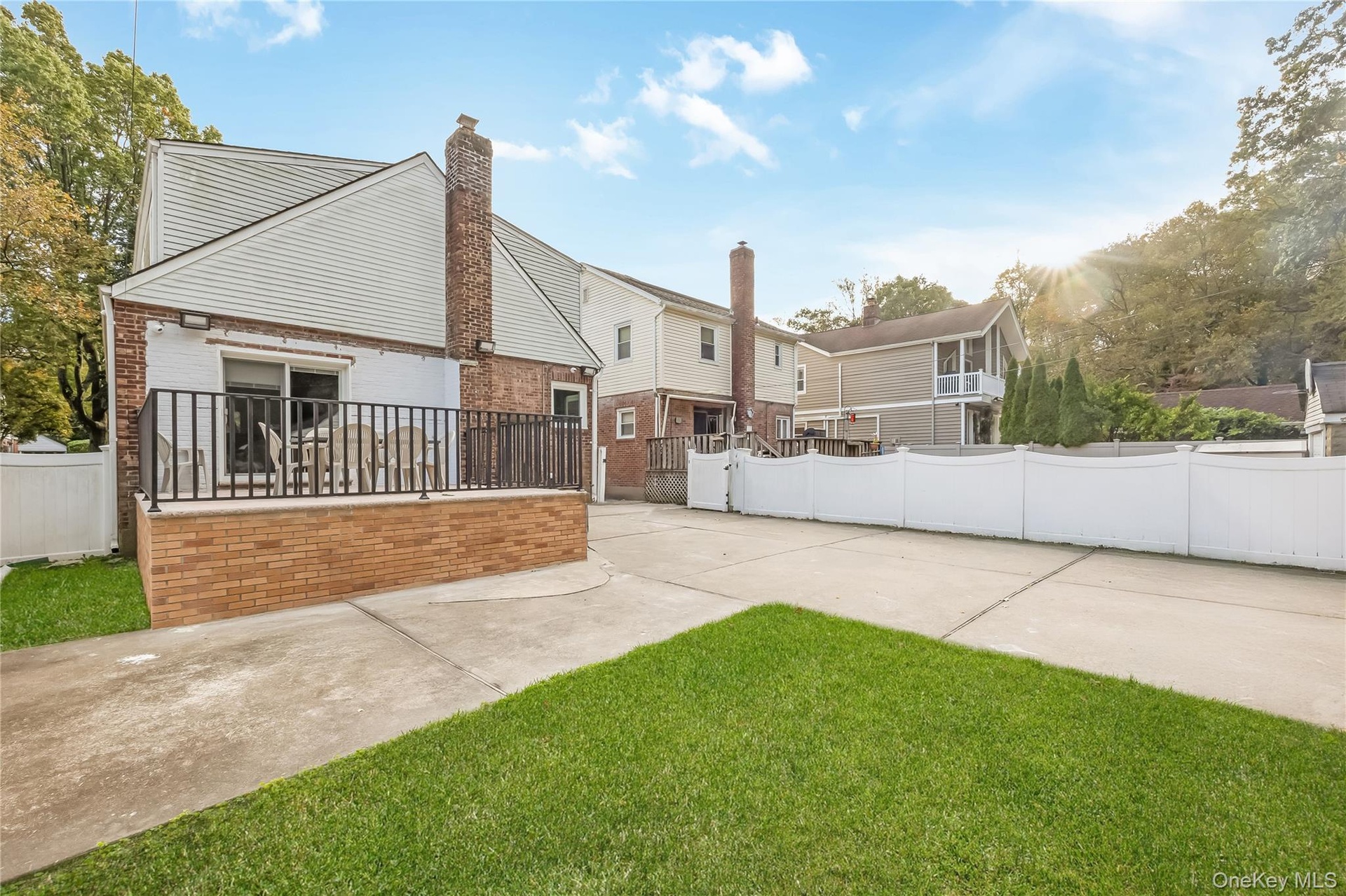 - Back of property featuring brick siding and a patio area