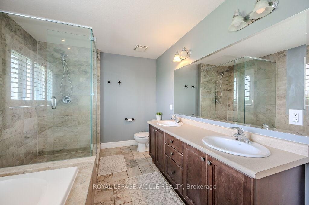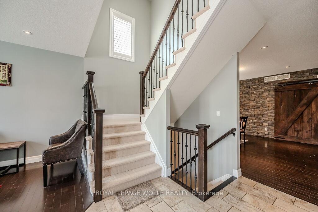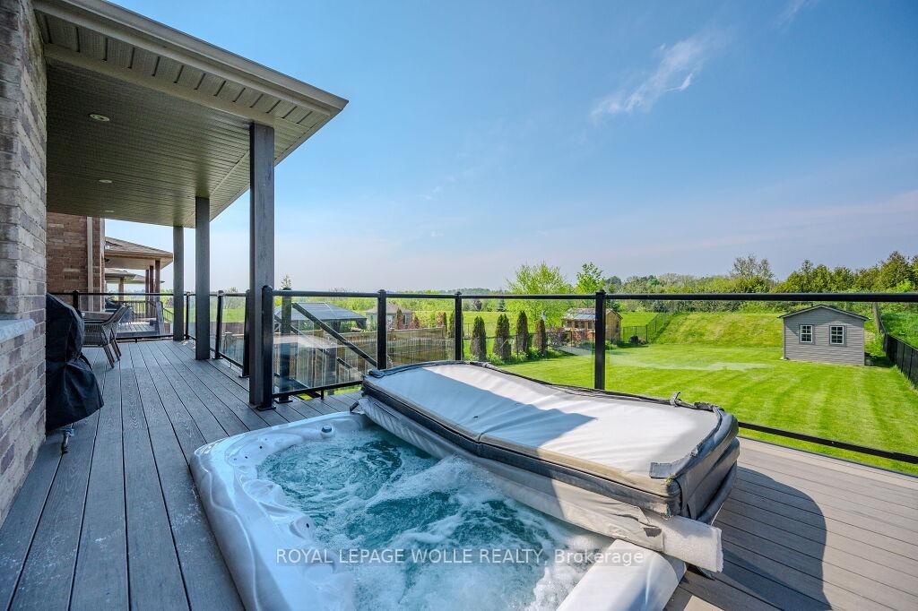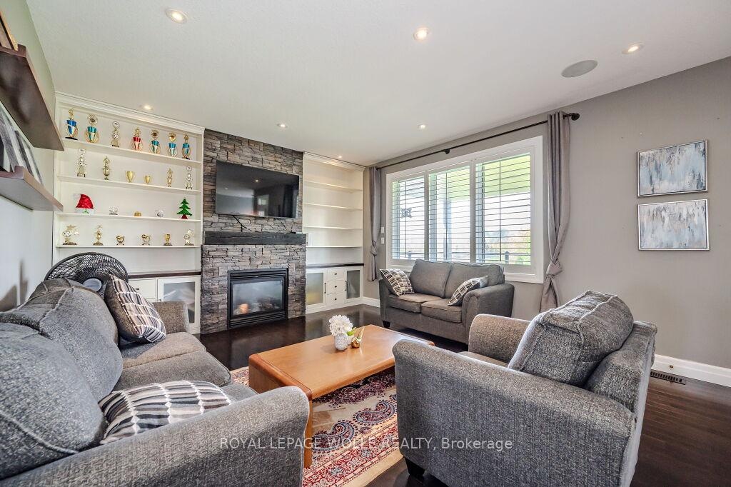 Stunning 5-Bedroom Retreat on Rare 267' Deep Lot! Discover your perfect sanctuary in this breathtaking 5-bedroom, 4-bathroom home, nestled on a premium 267-foot deep, fully fenced lot backing onto a serene conservation area for ultimate privacy. This residence radiates curb appeal with its striking exterior and pristine landscaping. Step inside to find luxurious finishes, including a warm gas fireplace, elegant stone walls, soaring ceilings, pot lights, rustic barn wood accents, and a surround sound system in the fully finished basement. The chef's kitchen dazzles with abundant cabinetry and counter space, seamlessly flowing into the open-concept dining and living areas. A custom mudroom offers stylish storage solutions. The bright lookout basement, illuminated by large windows, is perfect for relaxation or entertaining. Outdoors, a full-width covered deck with a hot tub creates an ideal setting for year-round enjoyment. Located steps from Breslau P.S., Hwy 7, the expressway, and Hwy 401, this home blends tranquility, luxury, and convenience. Don't miss your chance to own this extraordinary forever home!