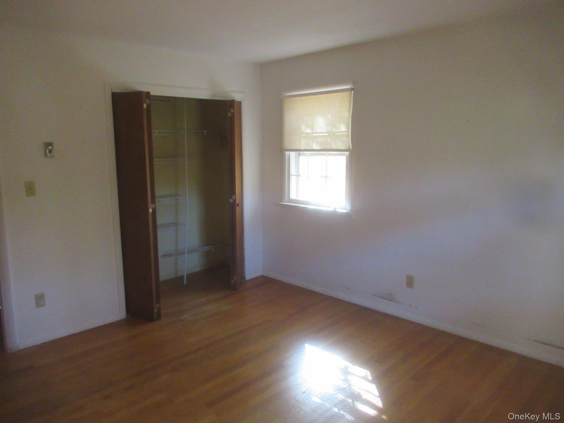 - Unfurnished bedroom featuring wood finished floors and a closet