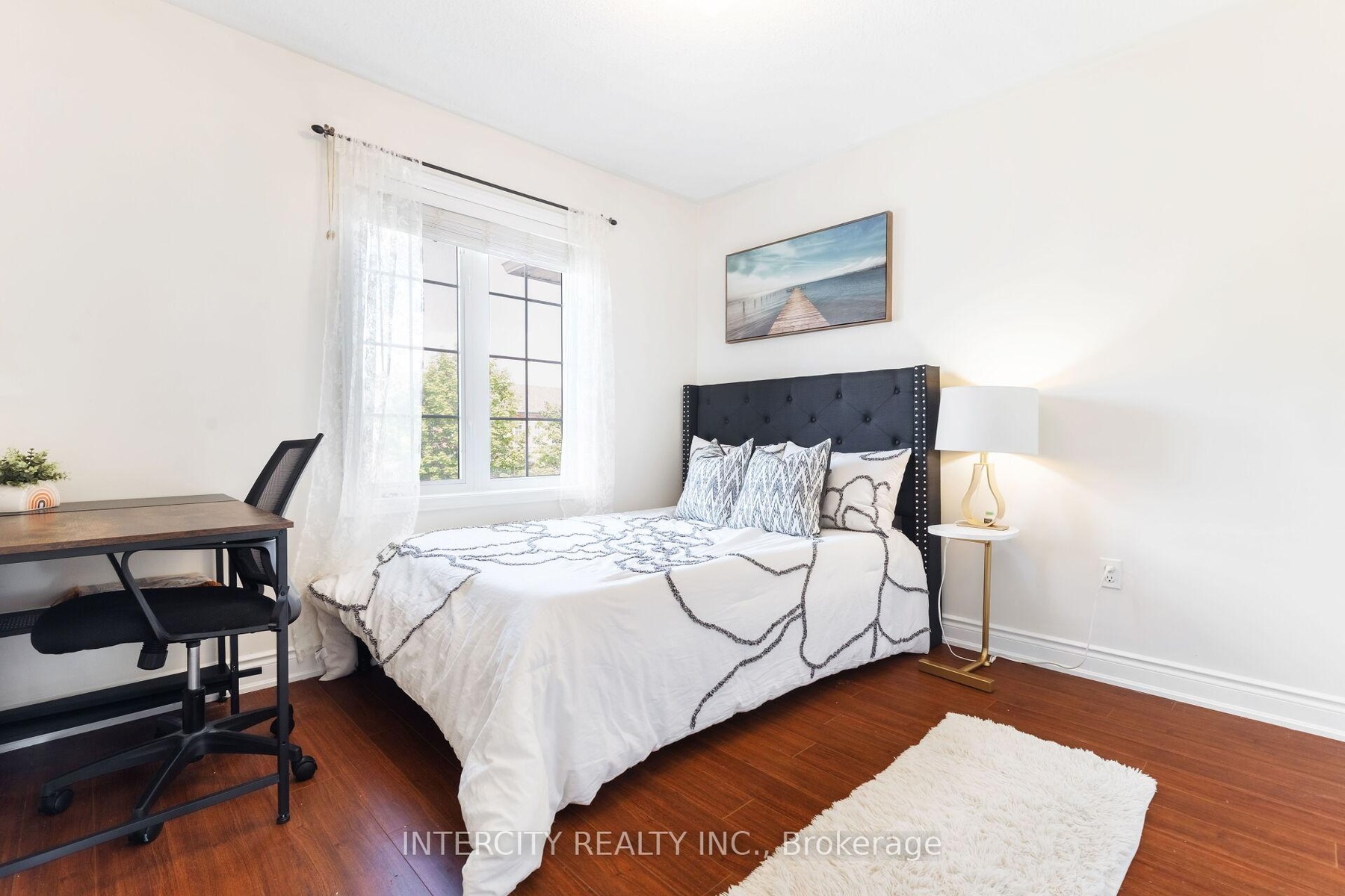 Welcome to 18 Snowshoe Lane!This Gorgeous freehold end-unit townhome, offering the feel of a semi-detached, sits proudly on a premium pie-shaped lot in a high-demand neighbourhood. Boasting approximately 2,600 sq. ft. of total living space, Separate living/Dining & Family Room, this 3+2 bedroom, 4-bath home is thoughtfully designed for comfort, style, and investment potential. Step inside to a bright, carpet-free interior featuring an elegant oak staircase and an upgraded kitchen perfect for family living and entertaining. The second-floor laundry adds everyday convenience. The primary bedroom features a walk-in closet and a luxurious 5-piece ensuite, while two additional spacious bedrooms offer plenty of natural light. The finished basement apartment with a separate entrance and laundry provides an ideal income opportunity or in-law suite setup. Enjoy a spacious, private backyard, perfect for relaxing or hosting gatherings. Located minutes from shopping plazas, parks, schools, highways, and public transit, this family-friendly community offers everything you need within reach. This is the turn-key home you've been waiting for - perfect for families, investors, or anyone seeking style, space, and functionality.