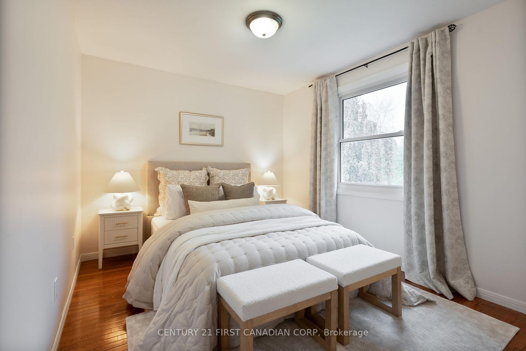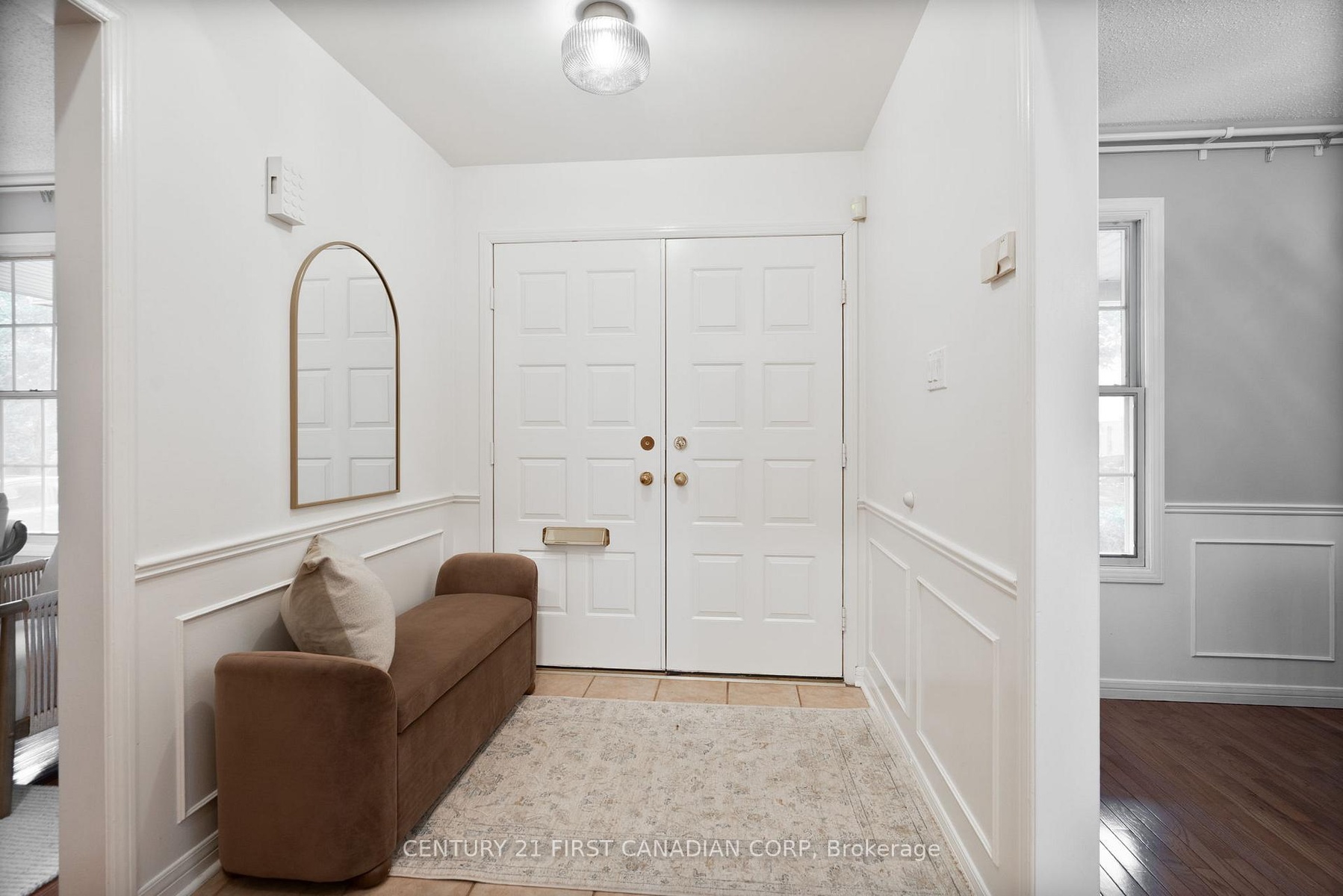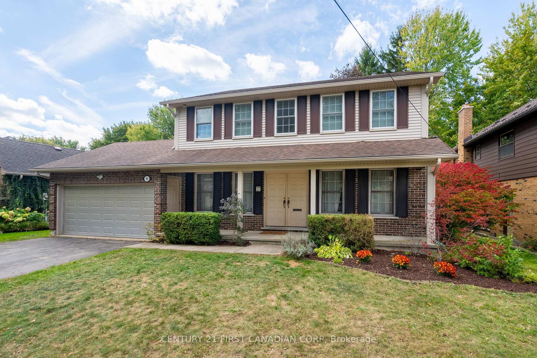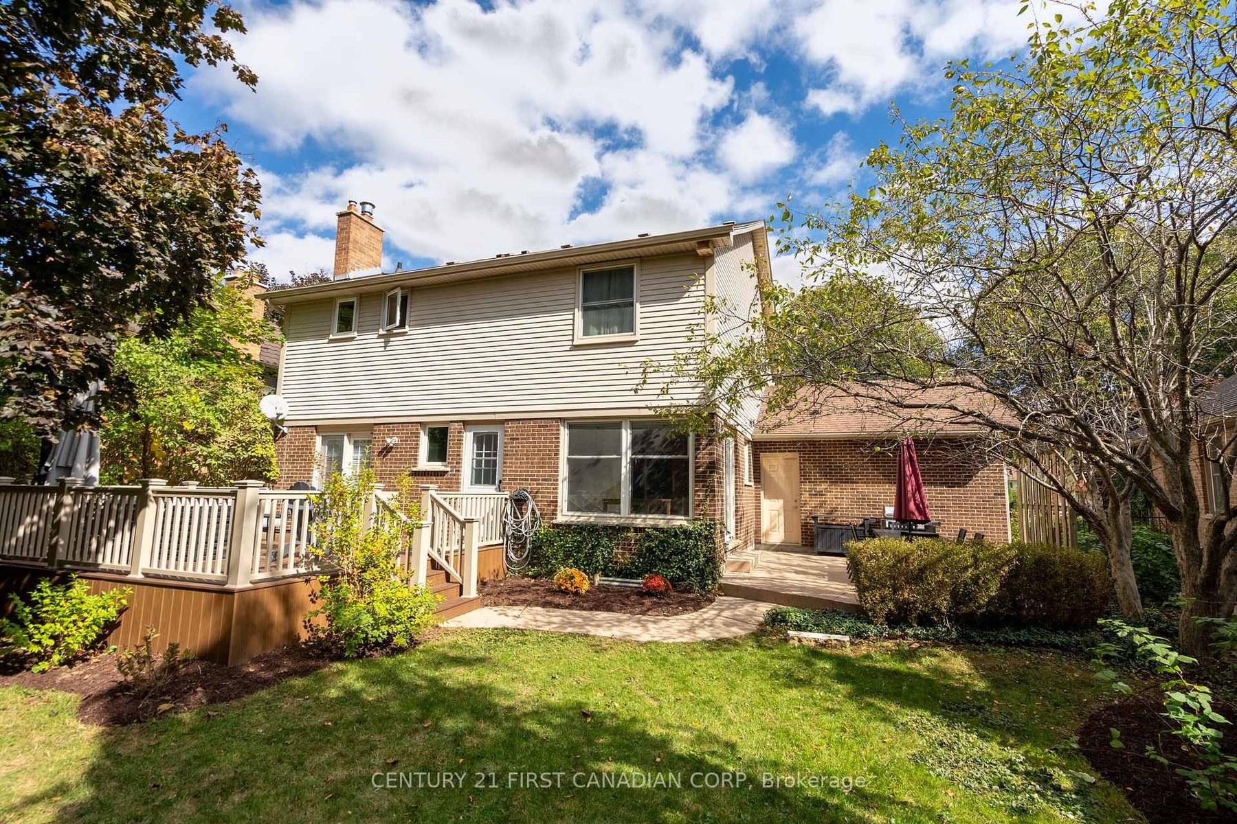 Welcome to this stunning and exceptionally spacious 2-storey home, perfectly positioned on an extraordinary, rare lot backing onto Hastings Park. From the moment you step into the grand foyer, you'll feel like you've just levelled up-captivated by the scale, balance, and unmistakable craftsmanship throughout. The main floor showcases gleaming hardwood floors flowing through the living and formal dining rooms, while the bright, inviting eat-in kitchen offers a picturesque park view worthy of a screenshot. Step through the patio doors to your private backyard retreat-a fairway of serenity where the only hazards are deciding between coffee on the deck or an evening round on the grill. The warm, welcoming family room features a fireplace and walkout to a brand new composite deck and a completely private serene backyard. A convenient main floor laundry with custom cabinetry and a stylish 2-piece powder room adds everyday practicality-because even in the game of real life, organization is key. Upstairs, the generous primary suite offers his and her closets and a private ensuite-your own version of full hit points after a long day. Three additional bedrooms and a 4-piece bath complete the level, providing comfort and versatility for family, guests, or your next home office setup. The lower level extends your living space with a large rec room and a bonus room that's as flexible as your skill tree-ideal for a gym, studio, office or additional bedroom. Step outside to a beautifully landscaped backyard with a deck and patio, where you can unwind or host friends with direct access to the peaceful trails of Hastings Park. Whether you're chasing birdies, memories, or just another perfect evening, this property delivers. Ideally located close to top-rated schools (Stoneybrook), Masonville Mall, and all amenities, this home strikes the perfect balance between modern living & subtle nostalgia-combining size, comfort, and a touch of edge in one of the area's most desirable settings.