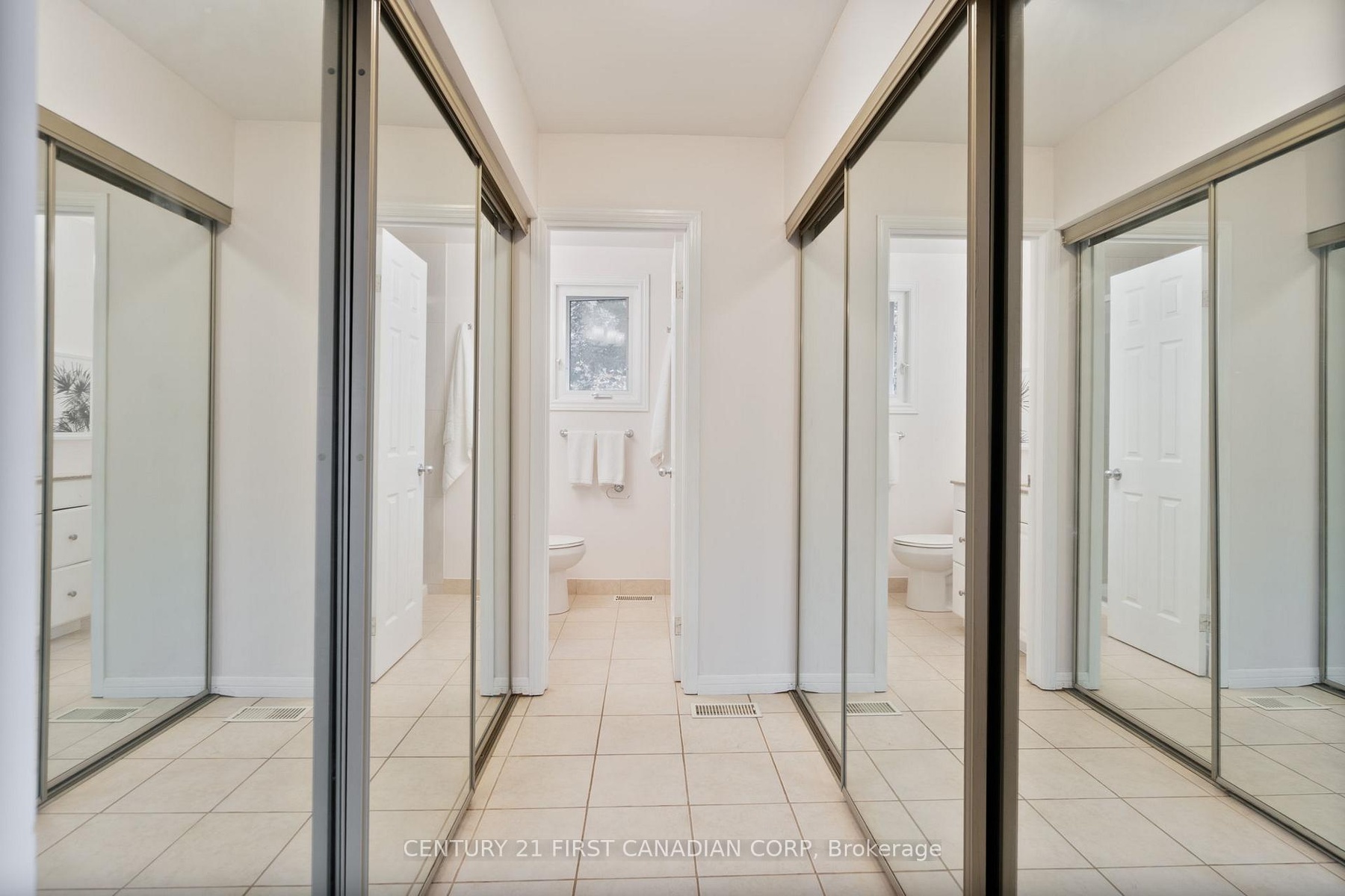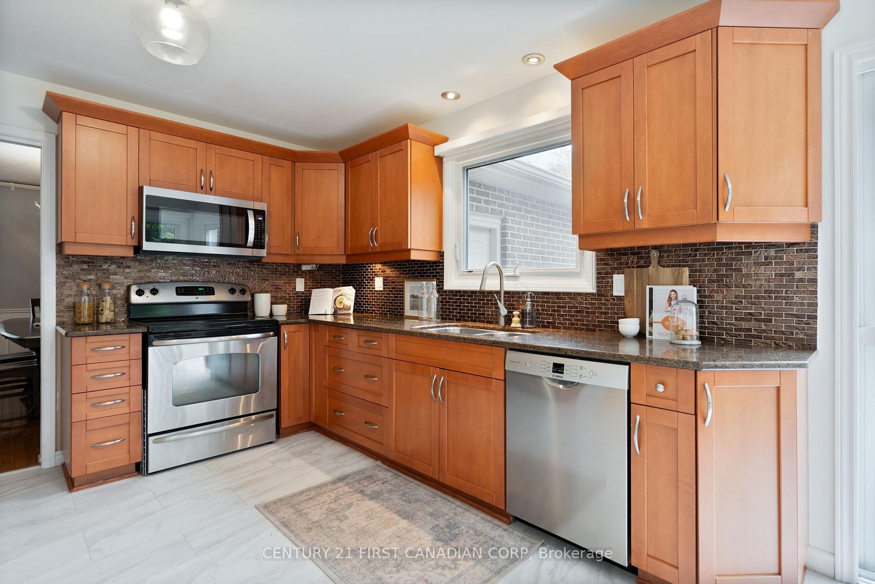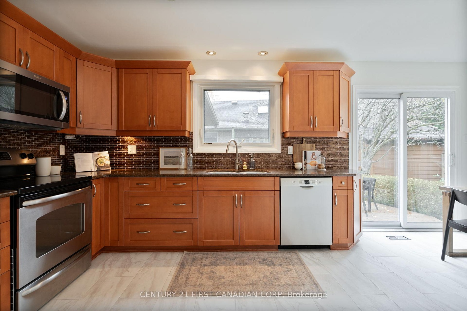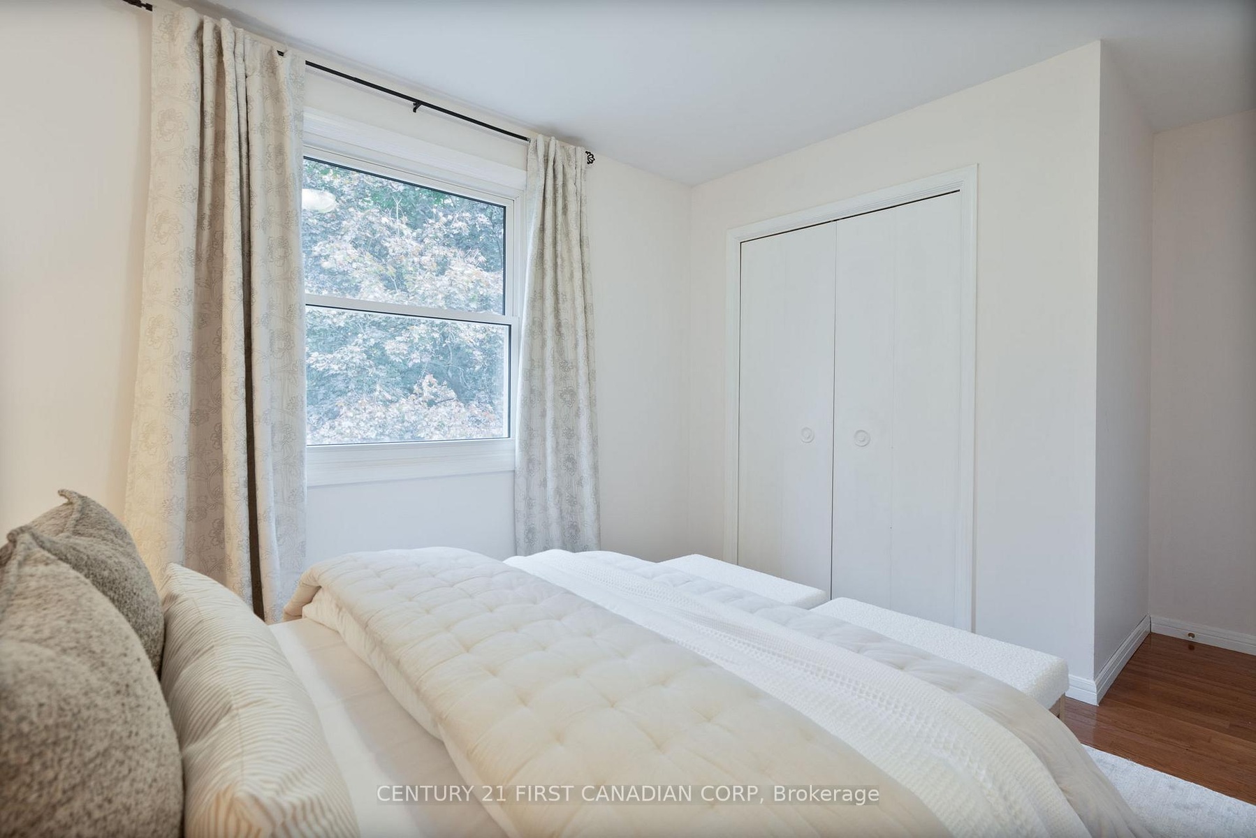 Welcome to this stunning and exceptionally spacious 2-storey home, perfectly positioned on an extraordinary, rare lot backing onto Hastings Park. From the moment you step into the grand foyer, you'll feel like you've just levelled up-captivated by the scale, balance, and unmistakable craftsmanship throughout. The main floor showcases gleaming hardwood floors flowing through the living and formal dining rooms, while the bright, inviting eat-in kitchen offers a picturesque park view worthy of a screenshot. Step through the patio doors to your private backyard retreat-a fairway of serenity where the only hazards are deciding between coffee on the deck or an evening round on the grill. The warm, welcoming family room features a fireplace and walkout to a brand new composite deck and a completely private serene backyard. A convenient main floor laundry with custom cabinetry and a stylish 2-piece powder room adds everyday practicality-because even in the game of real life, organization is key. Upstairs, the generous primary suite offers his and her closets and a private ensuite-your own version of full hit points after a long day. Three additional bedrooms and a 4-piece bath complete the level, providing comfort and versatility for family, guests, or your next home office setup. The lower level extends your living space with a large rec room and a bonus room that's as flexible as your skill tree-ideal for a gym, studio, office or additional bedroom. Step outside to a beautifully landscaped backyard with a deck and patio, where you can unwind or host friends with direct access to the peaceful trails of Hastings Park. Whether you're chasing birdies, memories, or just another perfect evening, this property delivers. Ideally located close to top-rated schools (Stoneybrook), Masonville Mall, and all amenities, this home strikes the perfect balance between modern living & subtle nostalgia-combining size, comfort, and a touch of edge in one of the area's most desirable settings.