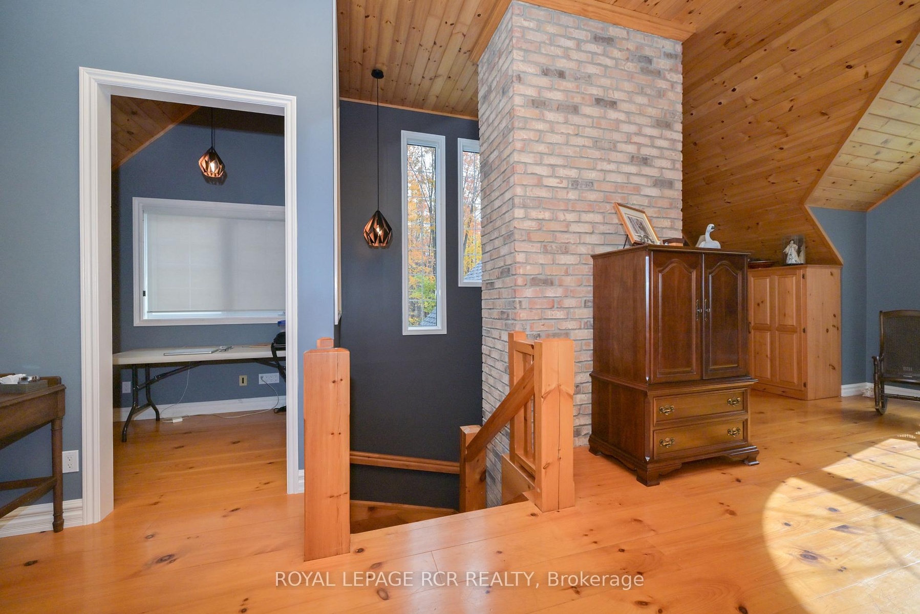 ABSOLUTE PRIVACY & SECLUSION IN A WOODED 11 ACRE SETTING. BEAUTIFULLY LAID OUT FOR A COUPLE OR SMALL FAMILY. TERRIFIC GETAWAY BUT ALSO PROVIDES A SPACIOUS SETTING TO ENTERTAIN FAMILY & FRIENDS IN THE GREAT ROOM WITH SOARING 18' VAULTED CEILING, W/OS TO DECK OR COVERED PORCH FOR BBQS OR PRIVATE PARTY IN THE YARD. CHEF'S KITCHEN HAS CENTRE ISLAND W STOVE & BAR SINK, TONS OF CABINETS & COUNTERSPACE, DOUBLE PANTRIES. GORGEOUS CRAFTED & MILLED WOODWORK OF MAPLE & PINE THROUGHOUT-CABINETS, FLOORS, CEILINGS. GRAND VAULTED FOYER WELCOMES WITH ACCESS TO MUDROOM & GARAGE, W/O TO 2 FENCED AREAS, 2ND STAIRSCASE TO BASEMENT. MAIN FLOOR BEDROOM & BATHROOM FOR GUESTS OR FAMILY. UPSTAIRS, VIA THE OPEN WIDE PLANK PINE STAIRCASE TO THE TRUE PRIMARY SUITE: 12 FEET IN HEIGHT WITH PEAKED CEILING OVER WINDOWS AT EACH END, VAULTED BALCONY OVERLOOKING THE 18' HIGH 2 STORY GREAT ROOM, DOUBLE CLOSETS & A TON OF SPACE FOR READING, SEWING OR ENJOYING VIDEO EQUIPMENT. SMALL OFFICE SPACE (OR NEWBORN ROOM?) ALONG WITH ENSUITE BATHROOM FEATURING EXTRA LARGE W/I SHOWER & CLAWFOOT TUB. BASEMENT IS UNFINISHED BUT VERY SUITABLE TO CREATE BEDROOMS & A FAMILY ROOM. THERE IS A R/I BATHROOM ALREADY & POTENTIAL FOR A SEPARATE ENTRANCE. WHEN BUILT, WOOD FROM THE LAND WAS HARVESTED & SWAPPED OUT AT A MILL & NEW DRY WOOD MILLED TO FASHION THE CABINETRY, STAIRS & CEILINGS HERE. INTERESTING ITEMS THRUOUT, SUCH AS SOME BRICK BACKDROPS, SLATE FLOOR DETAIL, SOARING BRICK FP. FLANKED BY HALF MOON WINDOWS. SOME IDEAS: TWO LARGE DOG RUNS FOR PET OWNERS OR PERHAPS CREATE A DAYCARE WITH OUTDOOR FENCED AREA FOR THE CHILDREN. THE MAIN FLOOR MUDROOM (IN BETWEEN THE FOYER & THE GARAGE) HAS A VANITY SINK BUT MAYBE A DOG BATH? OR CHANGE TO A LAUNDRY ROOM OR MAIN FLOOR OFFICE. HOMES IN THE WOODS CAN BE DARK INSIDE, BUT WITH THE EXTRA LARGE WINDOWS, MANY WITH TRANSOMS, SOME PALLADIAN OR HALF MOON - THE LIGHT SHINES IN. CREATE YOUR OWN TRAILS THROUGH THE WOODS FOR HIKING OR SNOWSHOEING. SEE FEATURE SHEET FOR MORE.