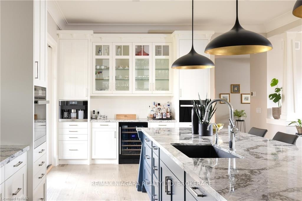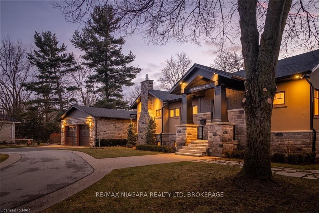 Discover the epitome of luxury living in this impeccable open-concept bungalow. 2019 custom build, sitting on an expansive tree-lined lot - 32 Breckenridge Blvd evokes the tranquility of Muskoka. With a total finished area of 4200 sqft, this residence showcases master craftsmanship while balancing contemporary aesthetics & comfort. From the moment you step onto the driveway attention to detail in this young home is evident. The open-concept design seizes an awe factor with a picturesque view of the ravine. A neutral palette accented by pops of colour emphasizes custom millwork as seen with the cheerful bench in the entryway. Capturing the fundamentals of single-level living is the notable floor plan. A bespoke kitchen is a dream for entertaining with high-end appliances selected for their style & performance to fulfil the chef's needs; two wall ovens with one using steam, pro series gas range, filler faucet, wine fridge, & built-in coffee station for ultimate comfort. An expansive island seats the whole family & serves as the hub of activity. Leading to a private covered patio featuring a chalet-worthy outdoor FP, gas hookup & entertainment area. The main level also has a formal dining rm with breathtaking feature windows & coffered/tray ceiling, as well as a living room with a gas FP flanked with built-in display shelves. An inviting powder rm & dreamy laundry encompass beautiful finishes with extra touches to make this often-forgotten area particularly special. The primary bdrm has a walk-through dressing hall that leads to an incredible ensuite- that's simply luxurious. The lower level feels anything but, with oversized windows positioned to brighten the space. Two additional bdrms, a massive recreational room & a full bath complete this level. Escape to this surprising central location & leave the hustle & bustle of the city behind. Top Public/Private Schools, Parks, Trails, easy highway access with a beach, marina, & so much more nearby! Luxury Certified