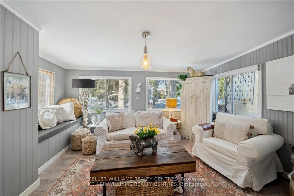 Welcome to this stunning Ranch Style Bungalow, renovated top to bottom home, Located in the vibrant adult community of Sandy Cove Acres. This 2 bedroom, 1 bath model is move in ready and offers a bright open concept floor plan with spacious principal rooms. a quiet, Cozy gas fireplace in the living room and an economical heat pump to keep your home warm and cool in the summer. Stunning kitchen with walk out to deck, overlooking ravine with stream. Sandy Cove Acres is a lifestyle community close to Lake Simcoe, Innisfil Beach Park, there are many groups and activities to participate in, along with 2 heated outdoor pools, community halls, games room, fitness centre, outdoor shuffleboard and pickle ball courts. dreams can come true in this exceptionally well appointed home located just steps from Lake Simcoe.