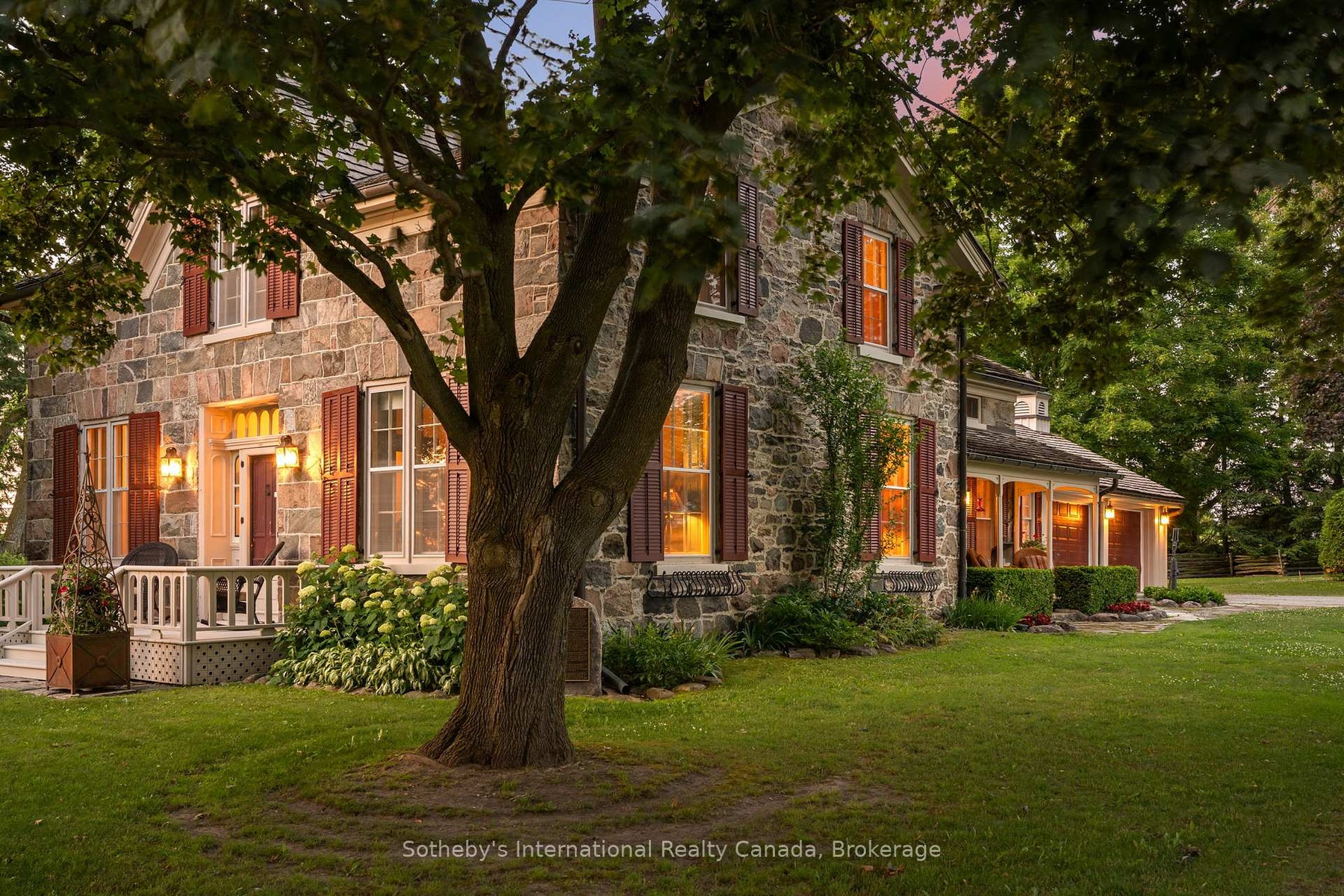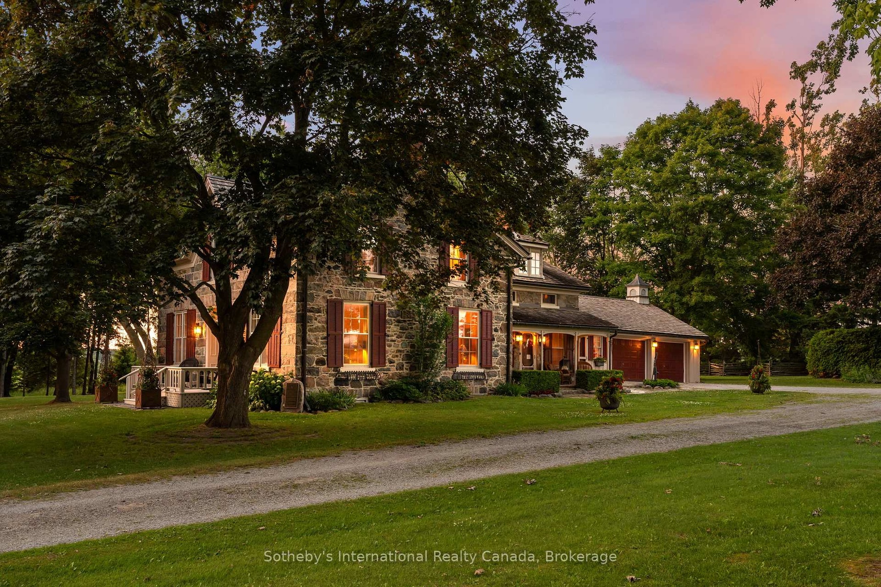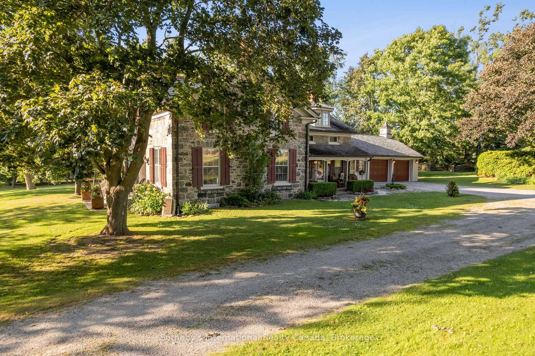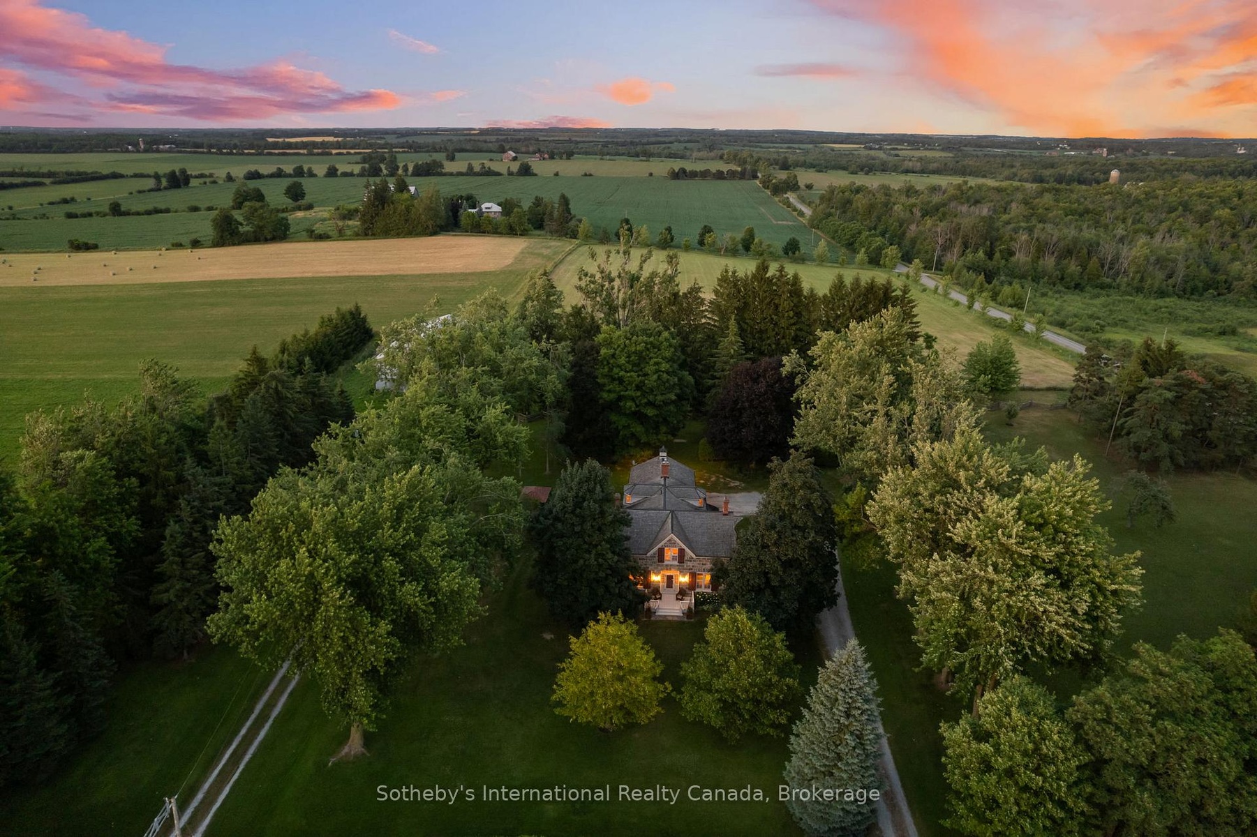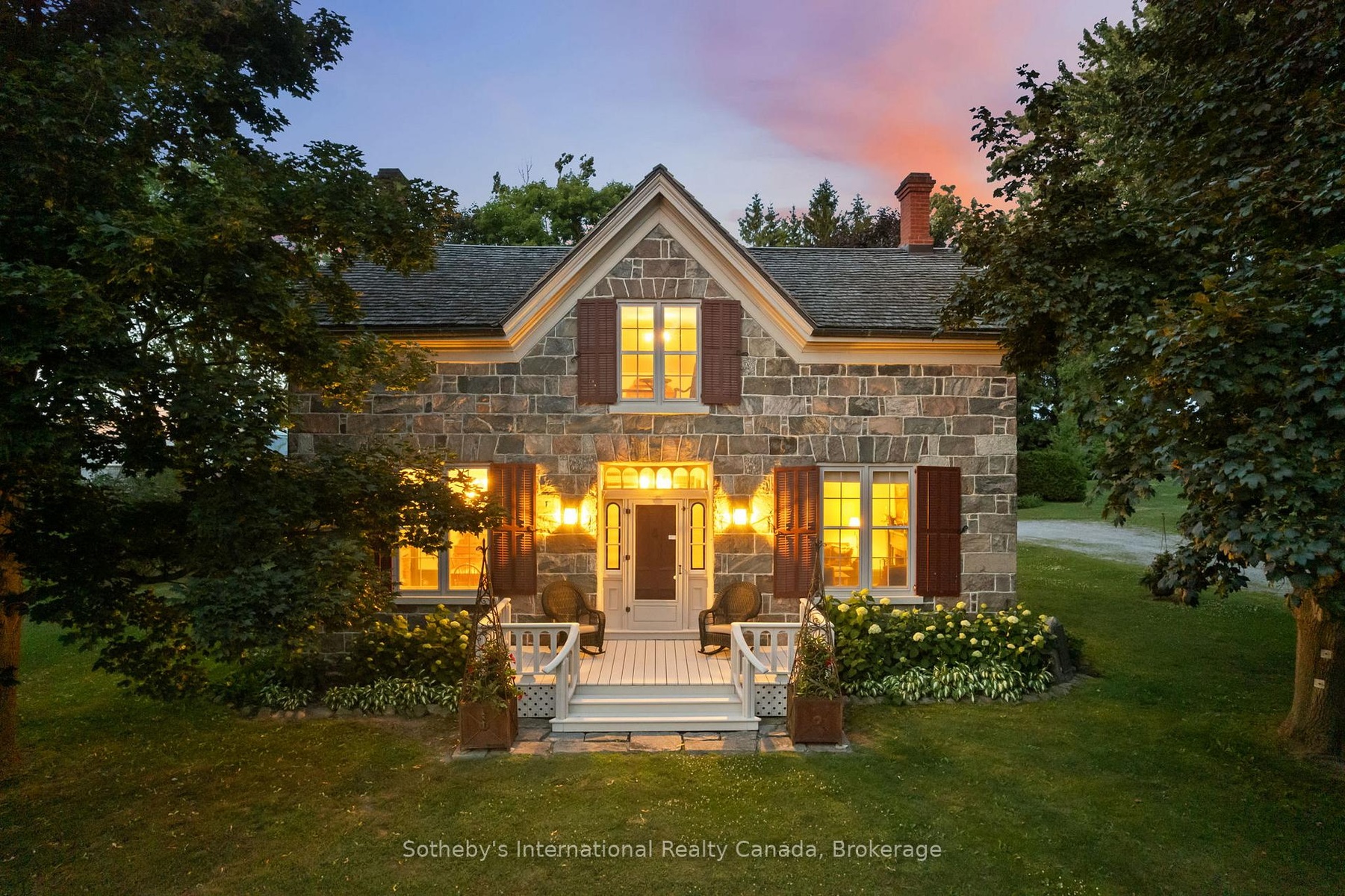 Welcome to Stonecroft Farm a rare and storied estate where history, architecture, and natural beauty converge in timeless harmony. Built in 1861 by the master stonemasons who crafted the Rideau Canal, this exquisite Ashlar Stone farmhouse is a living work of art. The home's restoration was the final project of renowned Canadian heritage architect Peter John Stokes, who thoughtfully reimagined the chimneys, Scotts Bay dormers, front porch, and crown mouldings to honour its origins with enduring elegance. Set on just over 50 acres of rolling countryside with 39 acres currently under cultivation, Stonecroft offers both income potential and rural serenity. Just minutes to the charming communities of Sunderland and Uxbridge, you're close to amenities while tucked into a world of your own. With 4+1 bedrooms and 2 bathrooms, the residence exudes character and peace. The dormered upper bedroom, once two rooms, is flooded with natural light and treetop views. Each window frames breathtaking scenes, fruit trees, lush hedges, and uninterrupted vistas. The handcrafted black walnut staircase railing, sourced from a tree once rooted on the land, is just one of many bespoke details that speak to the soul of the home. Surrounded by 12-foot privacy hedges and expansive gardens, this is a retreat for those who crave stillness, tradition, and natural wonder. Have morning coffee on the side porch, as the seasons shift and wildlife stirs, is nothing short of a gift. Stonecroft has borne witness to a legacy of memories: children born within its walls, brides descending the grand staircase, winter sleigh rides, and carefree summers chasing kites through fields. With original millwork, a classic cedar shake roof, copper eaves & downspouts, wide-plank wooden floors, and ingenious storage spaces throughout, this heritage home offers not just space but a sense of provenance. Stonecroft doesn't just hold memories it welcomes you into its lineage. A home where you don't just live, you belong.