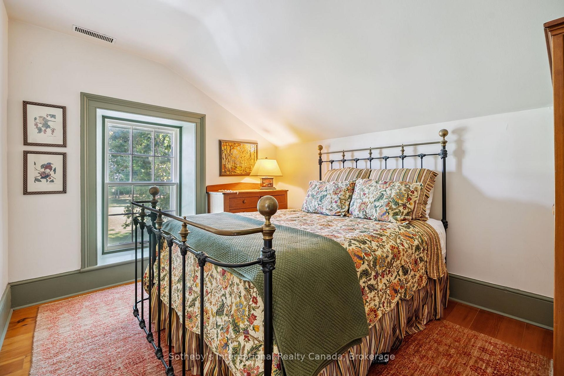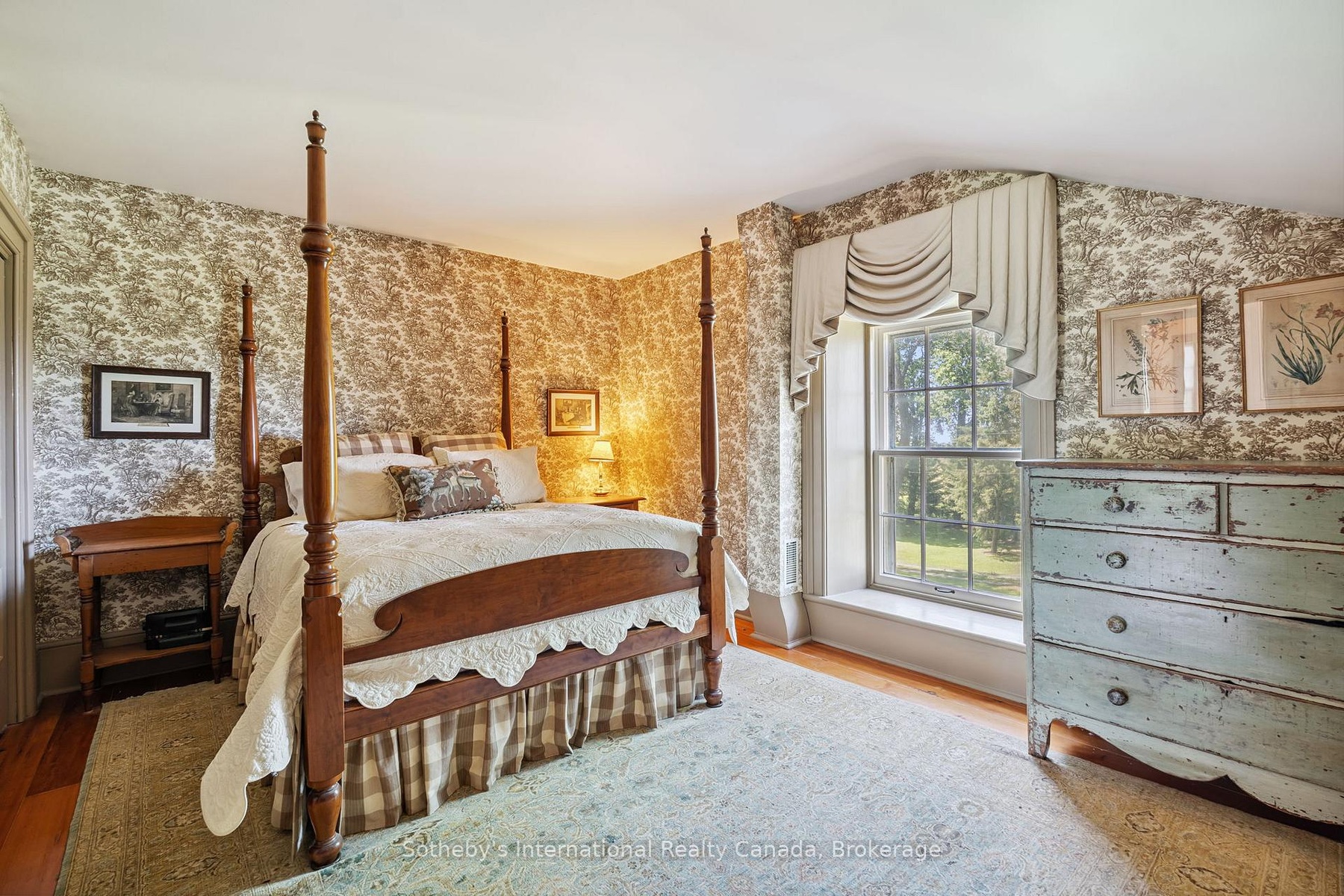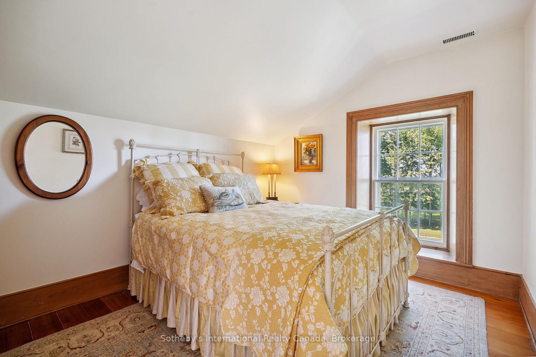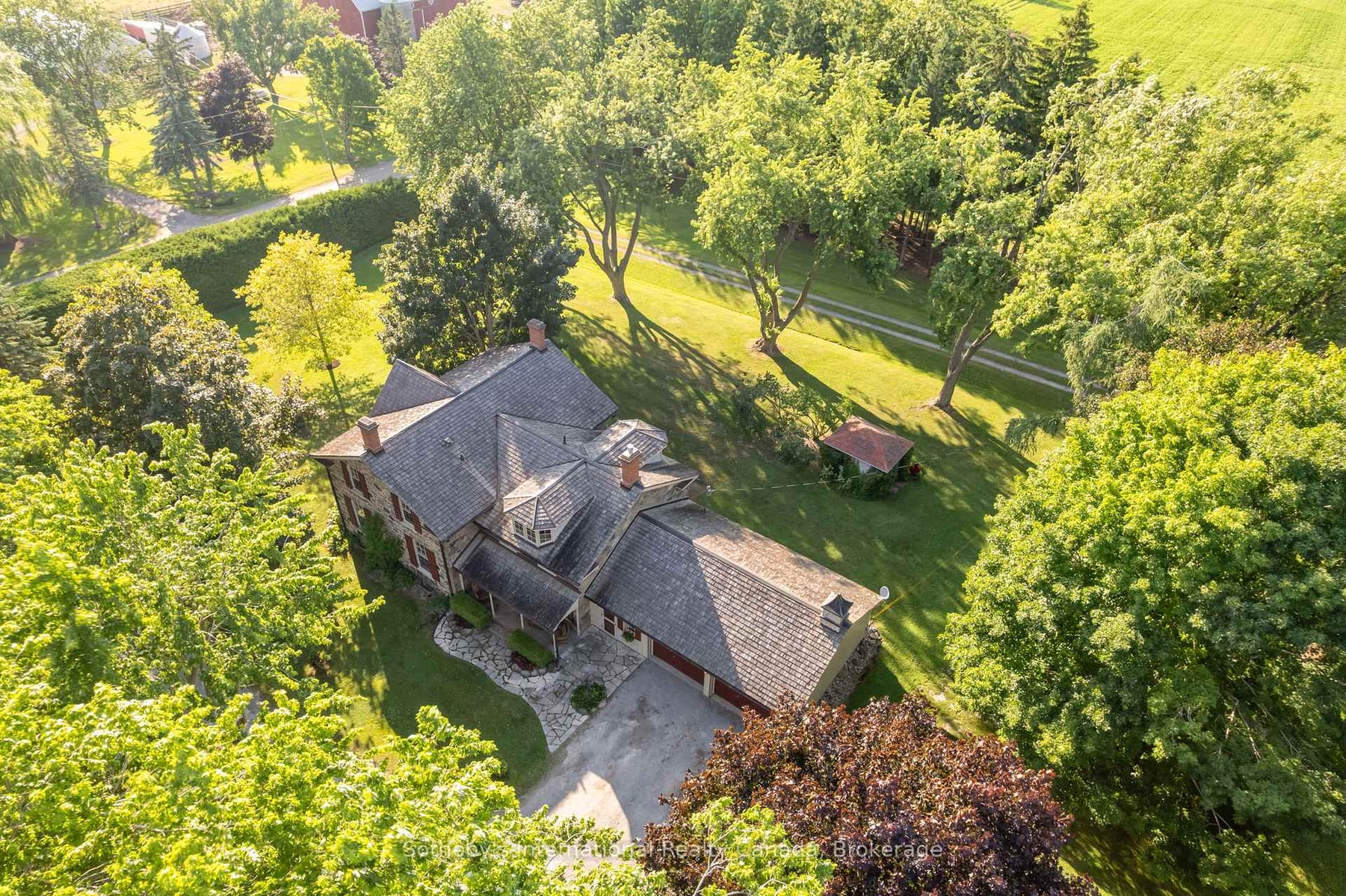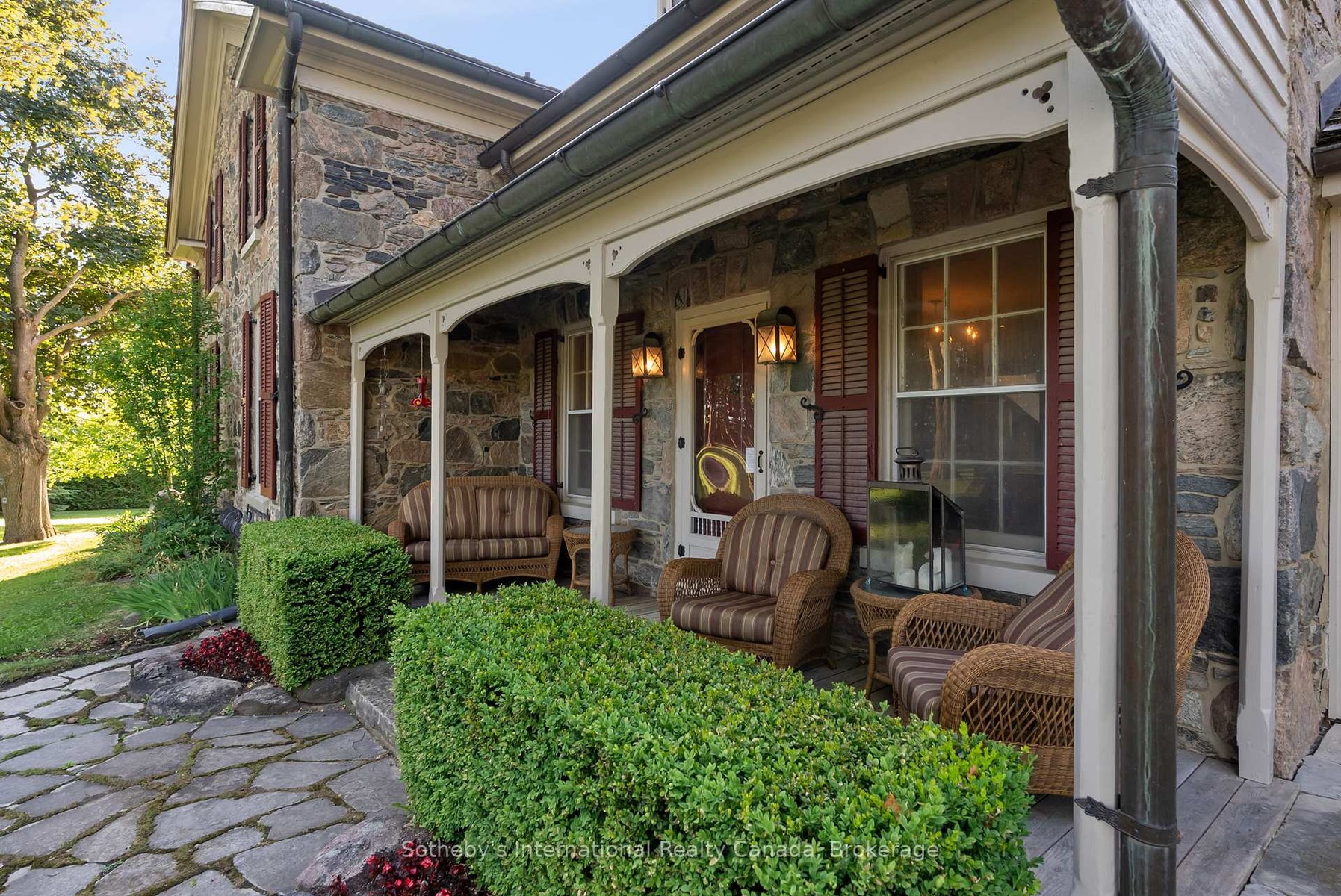 Welcome to Stonecroft Farm a rare and storied estate where history, architecture, and natural beauty converge in timeless harmony. Built in 1861 by the master stonemasons who crafted the Rideau Canal, this exquisite Ashlar Stone farmhouse is a living work of art. The home's restoration was the final project of renowned Canadian heritage architect Peter John Stokes, who thoughtfully reimagined the chimneys, Scotts Bay dormers, front porch, and crown mouldings to honour its origins with enduring elegance. Set on just over 50 acres of rolling countryside with 39 acres currently under cultivation, Stonecroft offers both income potential and rural serenity. Just minutes to the charming communities of Sunderland and Uxbridge, you're close to amenities while tucked into a world of your own. With 4+1 bedrooms and 2 bathrooms, the residence exudes character and peace. The dormered upper bedroom, once two rooms, is flooded with natural light and treetop views. Each window frames breathtaking scenes, fruit trees, lush hedges, and uninterrupted vistas. The handcrafted black walnut staircase railing, sourced from a tree once rooted on the land, is just one of many bespoke details that speak to the soul of the home. Surrounded by 12-foot privacy hedges and expansive gardens, this is a retreat for those who crave stillness, tradition, and natural wonder. Have morning coffee on the side porch, as the seasons shift and wildlife stirs, is nothing short of a gift. Stonecroft has borne witness to a legacy of memories: children born within its walls, brides descending the grand staircase, winter sleigh rides, and carefree summers chasing kites through fields. With original millwork, a classic cedar shake roof, copper eaves & downspouts, wide-plank wooden floors, and ingenious storage spaces throughout, this heritage home offers not just space but a sense of provenance. Stonecroft doesn't just hold memories it welcomes you into its lineage. A home where you don't just live, you belong.