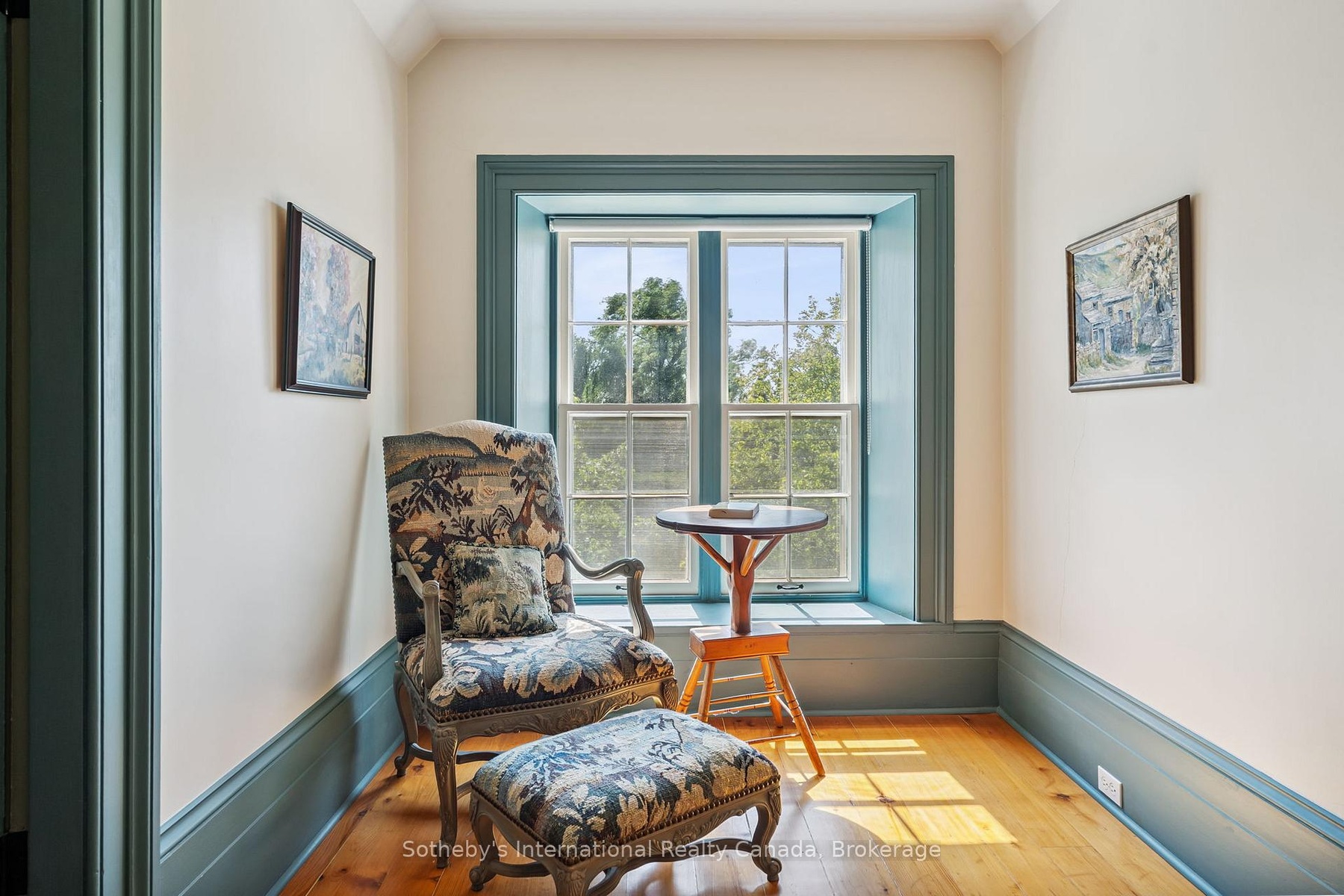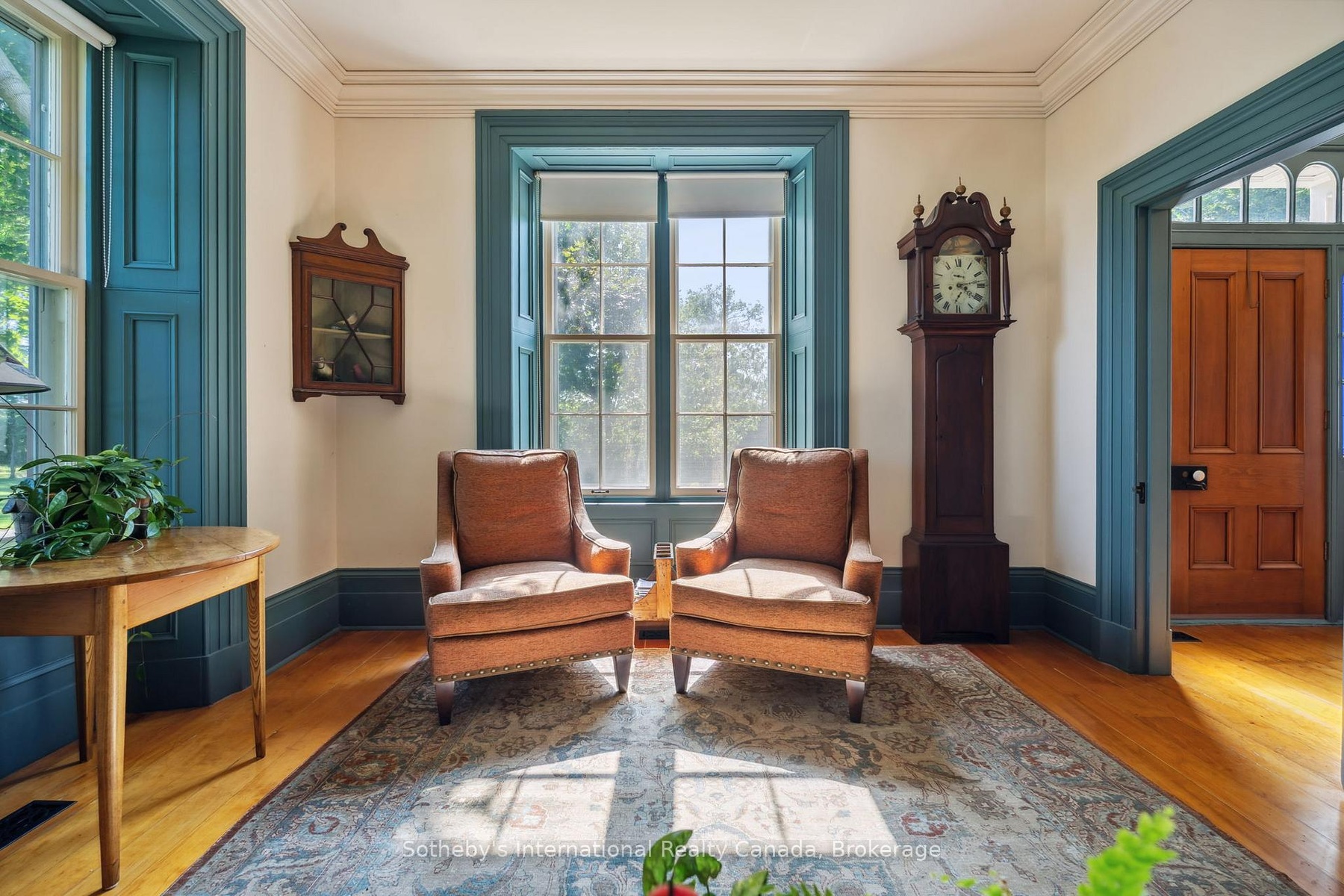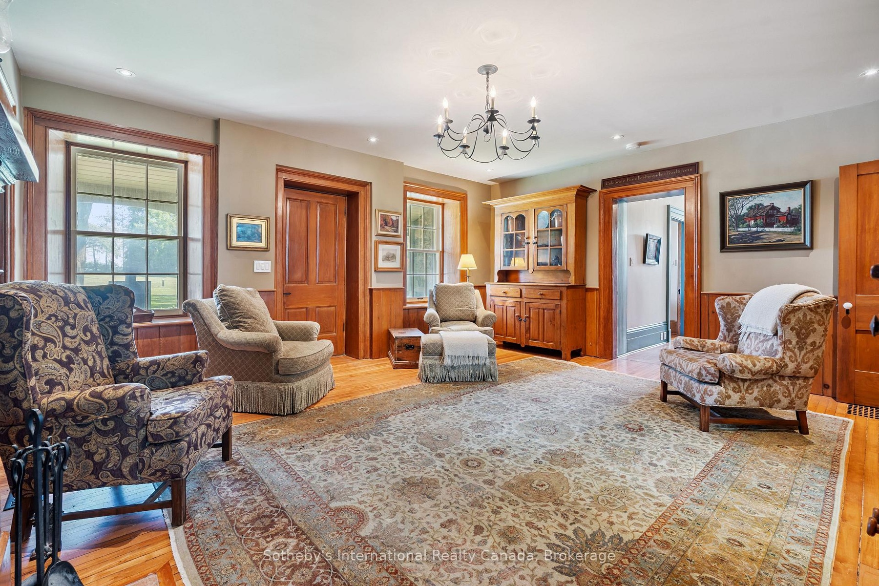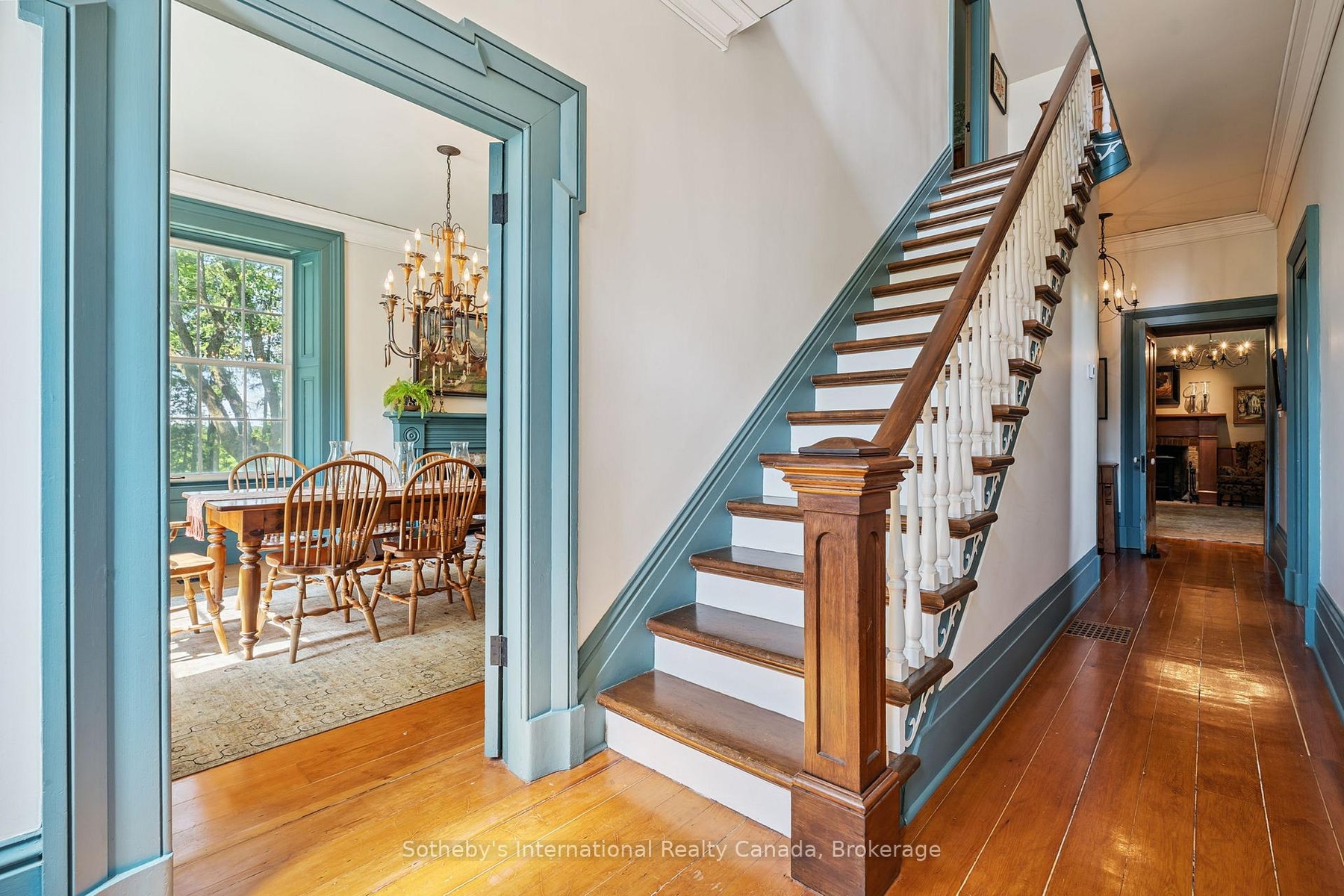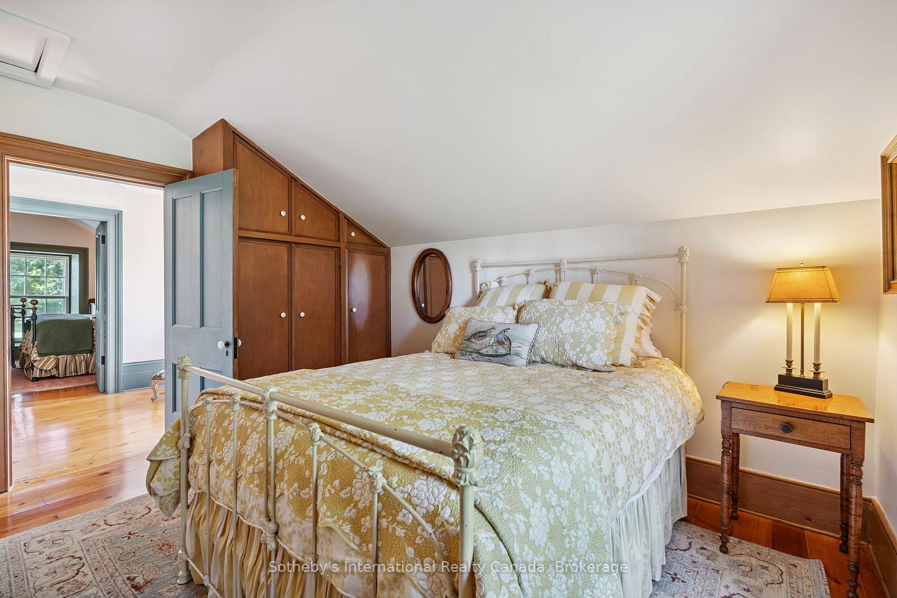 Welcome to Stonecroft Farm a rare and storied estate where history, architecture, and natural beauty converge in timeless harmony. Built in 1861 by the master stonemasons who crafted the Rideau Canal, this exquisite Ashlar Stone farmhouse is a living work of art. The home's restoration was the final project of renowned Canadian heritage architect Peter John Stokes, who thoughtfully reimagined the chimneys, Scotts Bay dormers, front porch, and crown mouldings to honour its origins with enduring elegance. Set on just over 50 acres of rolling countryside with 39 acres currently under cultivation, Stonecroft offers both income potential and rural serenity. Just minutes to the charming communities of Sunderland and Uxbridge, you're close to amenities while tucked into a world of your own. With 4+1 bedrooms and 2 bathrooms, the residence exudes character and peace. The dormered upper bedroom, once two rooms, is flooded with natural light and treetop views. Each window frames breathtaking scenes, fruit trees, lush hedges, and uninterrupted vistas. The handcrafted black walnut staircase railing, sourced from a tree once rooted on the land, is just one of many bespoke details that speak to the soul of the home. Surrounded by 12-foot privacy hedges and expansive gardens, this is a retreat for those who crave stillness, tradition, and natural wonder. Have morning coffee on the side porch, as the seasons shift and wildlife stirs, is nothing short of a gift. Stonecroft has borne witness to a legacy of memories: children born within its walls, brides descending the grand staircase, winter sleigh rides, and carefree summers chasing kites through fields. With original millwork, a classic cedar shake roof, copper eaves & downspouts, wide-plank wooden floors, and ingenious storage spaces throughout, this heritage home offers not just space but a sense of provenance. Stonecroft doesn't just hold memories it welcomes you into its lineage. A home where you don't just live, you belong.