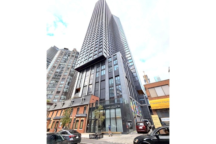 ** Excellent Downtown Toronto Location! ** Brand New Luxury Condo at 8 Wellesley West Bright And Spacious 713 sq. Ft. Southwest Corner Unit featuring 2 Bedrooms And 2 Bathrooms With Floor-to-Ceiling Windows And Laminate Flooring Throughout. Features An Open-Concept Living Space Flooded With Natural Light. Modern Kitchen With Quartz Countertops, Backsplash, And Built-in Appliances. Primary Bedroom Includes A 4-piece Ensuite; Second Bedroom Also Has A 4-piece Bath. Amenities: 24-hour Concierge, Gym, Yoga Studio, BBQ Area, Outdoor Patio/Garden. Steps To: Subway, Yonge Street, U of T, Toronto Metropolitan University (Ryerson), Yorkville Shopping, and the Financial District. // Must see! The perfect choice for students and professionals. //