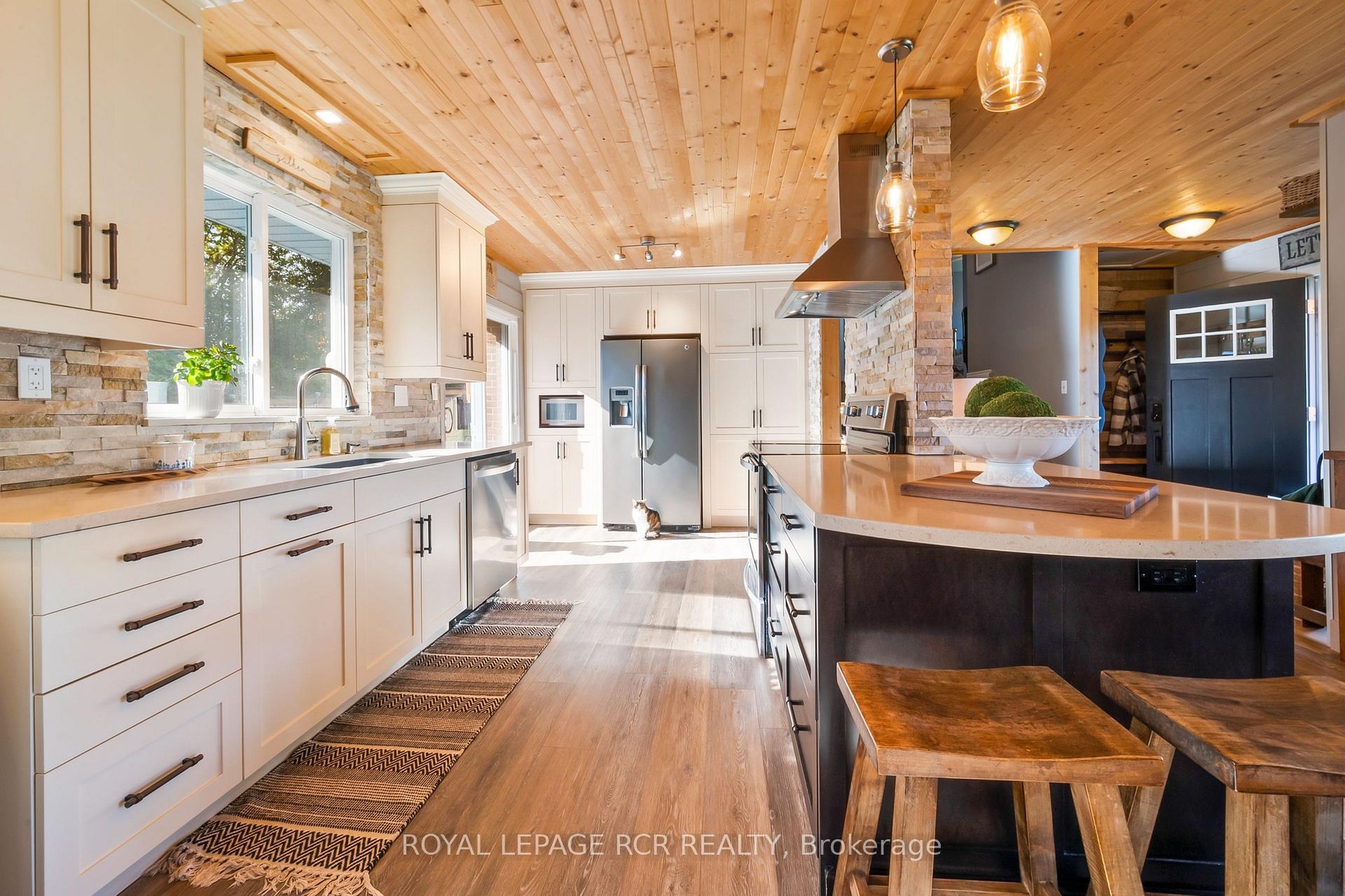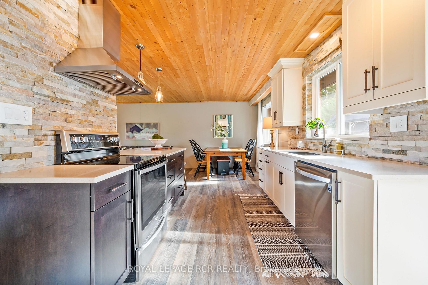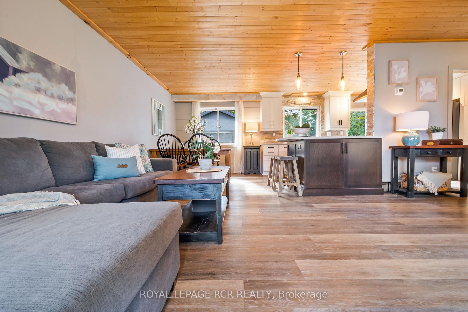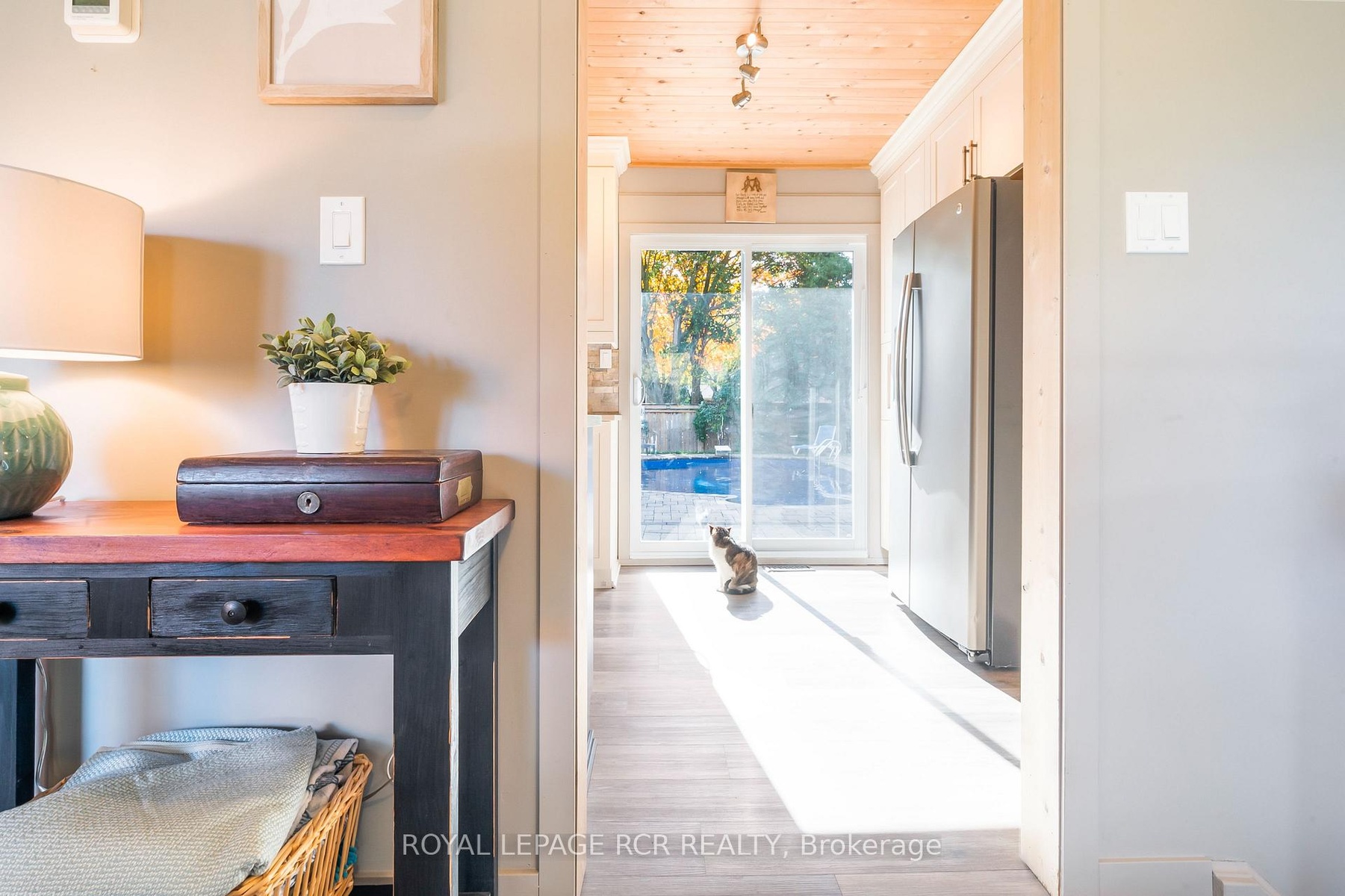 Brimming w/ warmth and thoughtful updates, this multi-level home has been beautifully reimagined for modern family living. Nestled on a mature, tree-lined street in one of Orangeville's friendliest neighbourhoods, it's a place where comfort, style, and connection come together seamlessly. Inside, the open-concept main floor welcomes you w/ a sense of ease and belonging. A striking wood-clad ceiling and wide-plank floors set a warm, natural tone, while the light-filled living, dining, and kitchen areas flow together effortlessly. The kitchen is a true heart-of-the-home space, featuring quartz countertops, a large island perfect for morning chats or after-school snacks, and beautiful stone accents that bring rustic charm to its modern design. Sunlight pours through oversized windows, creating a bright, uplifting atmosphere that's ideal for both quiet moments and lively gatherings. Upstairs, 3 comfortable bedrooms with hardwood floors and generous windows offer restful retreats for every member of the family, all served by a 5 pc bath. The finished lower level expands the living space w/ a cozy sitting area or home office, a fourth bedroom, and an additional 3 pc bath, ideal for guests or family members craving a little more privacy. Down one more level, the finished basement offers a welcoming recreation room made for movie marathons, game nights, and relaxed family time. Step outside and feel the joy of having your own backyard retreat. The inground pool sparkles at the centre of it all, framed by a stone patio perfect for lounging or hosting summer barbecues. A pergola-covered sitting area invites long, lazy afternoons outdoors, while the cabana shed adds both convenient storage and a sheltered entertaining space, perfect for poolside snacks, laughter, and making lasting memories. With its inviting atmosphere, family-friendly layout, and backyard designed for connection and relaxation, this is a home where every day feels like a getaway.