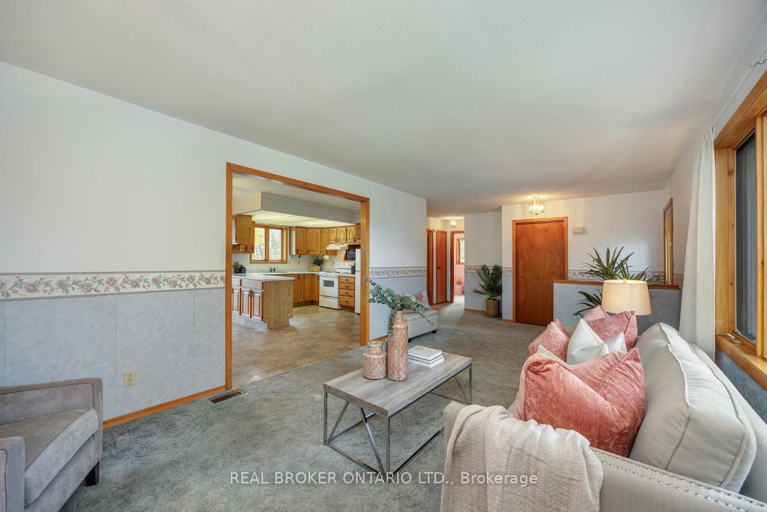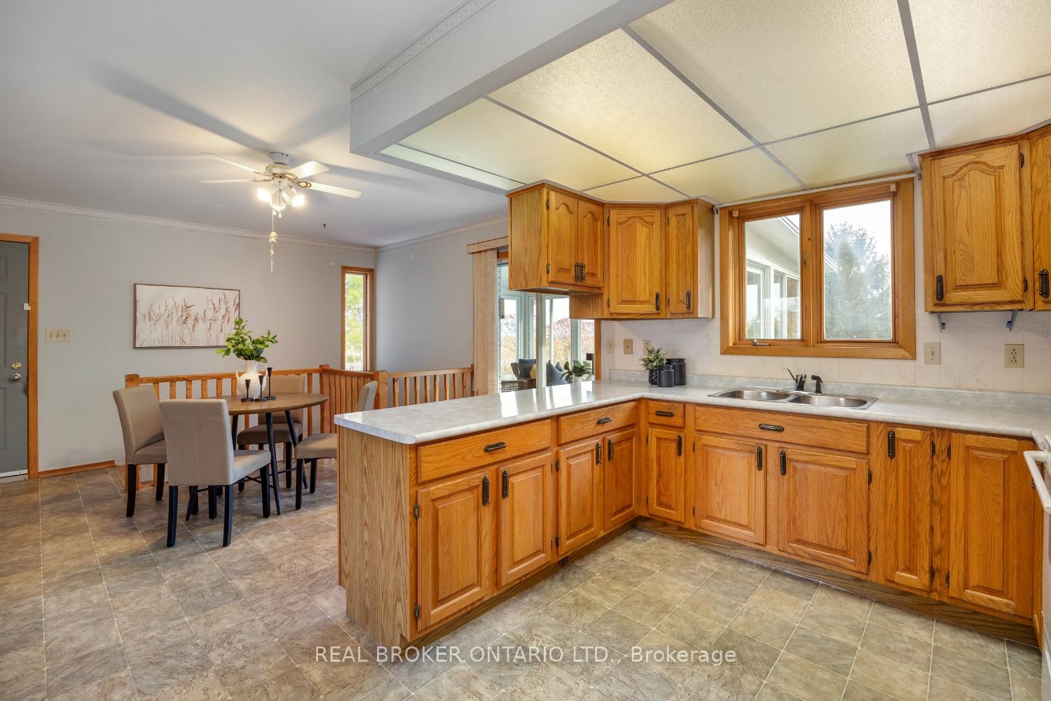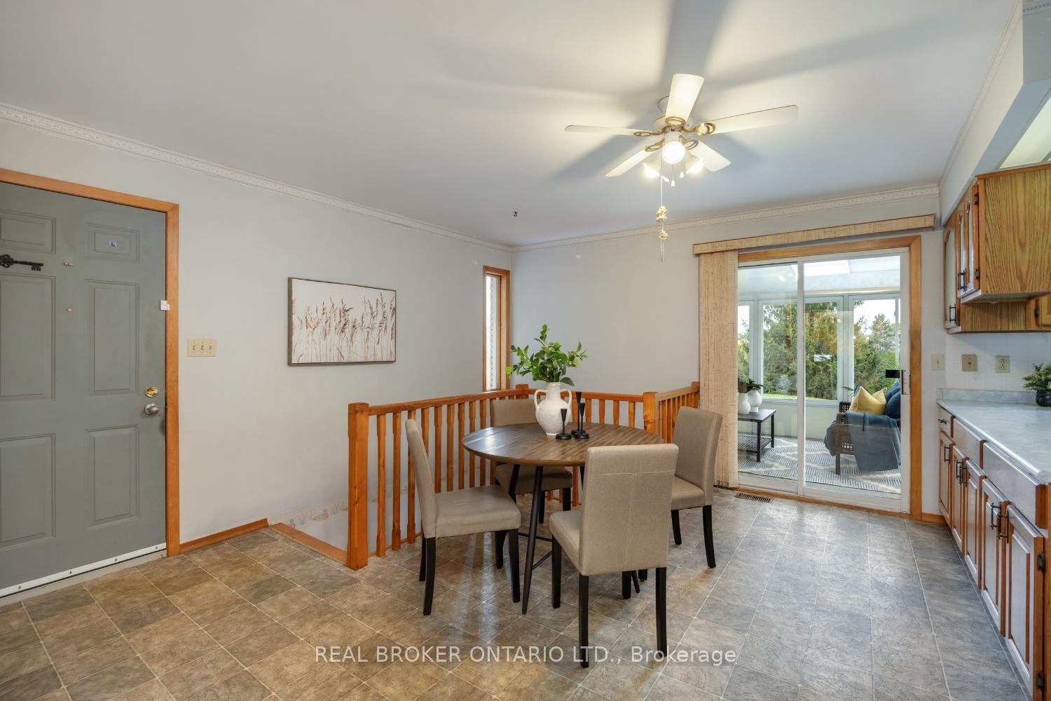 Set back from the road and surrounded by mature trees, in the sought after community of Enniskillen, this inviting bungalow sits on approximately 2 acres, offering the peaceful charm of country living with the convenience of nearby amenities. A long driveway provides ample parking and leads to a 1.5-car garage with interior access. The covered front porch offers the perfect spot to sit back and enjoy the sounds of nature. Inside, a bright and spacious living room welcomes you with a large picture window that fills the space with natural light. The open-concept kitchen and dining room make everyday living easy, featuring a window over the sink with views of the property and a walk-out from the dining room to the 3-season sunroom, a cozy space to relax, read, or take in the view of the changing seasons. Two bedrooms are located on the main floor, including a primary with his-and-hers closets. A 4-piece bathroom completes the main floor. The partially finished basement adds additional living space with a large rec room featuring above-grade windows and a woodstove for those cool evenings. There's also a laundry area combined with a 3-piece bath. A huge storage room provides endless possibilities for customization. Whether you're looking to update, expand, or simply enjoy the quiet setting, this home offers an incredible opportunity to create your dream country retreat. Just minutes from the Eniskillen General Store and with easy access to Hwy 407 and 115, this property perfectly blends rural serenity with everyday convenience.